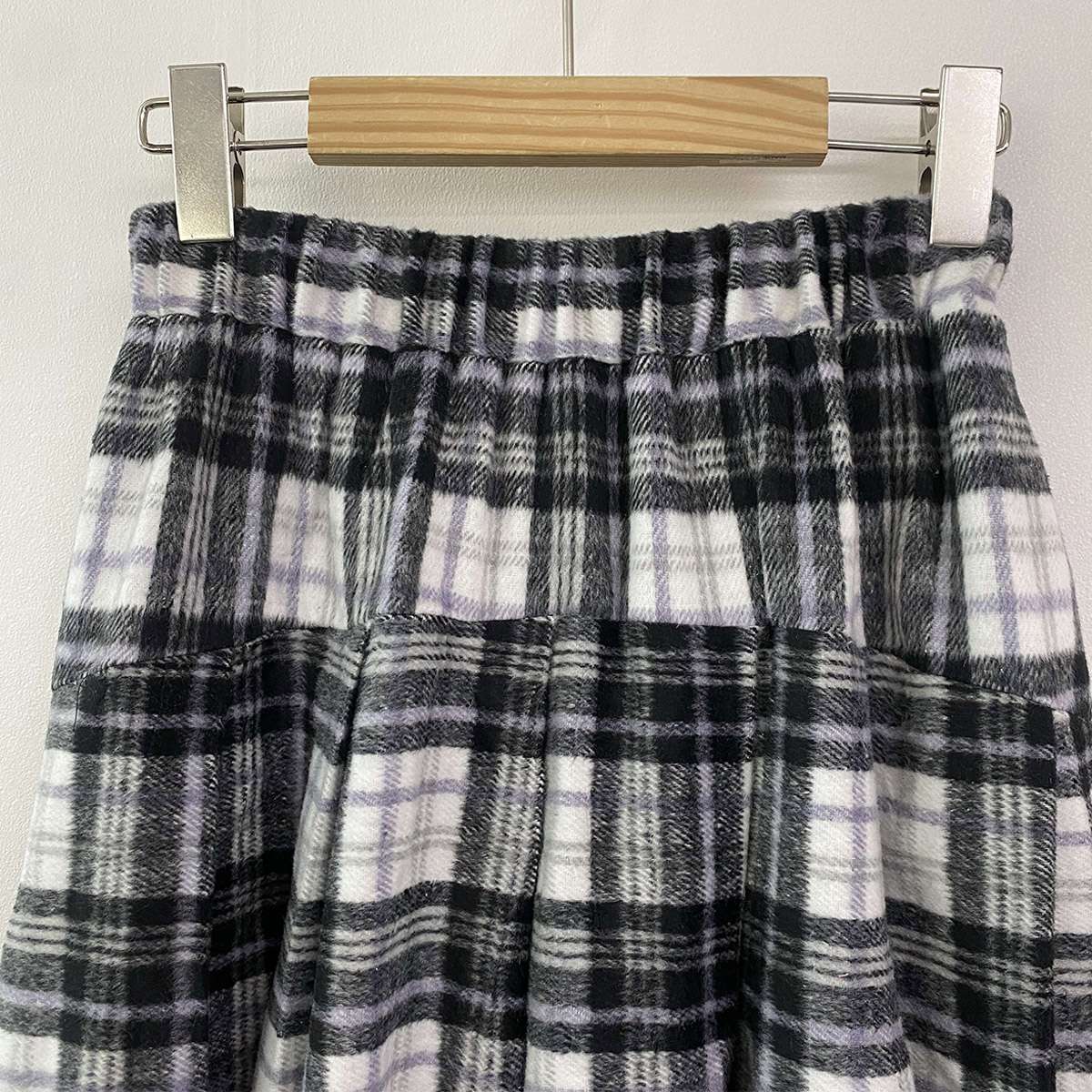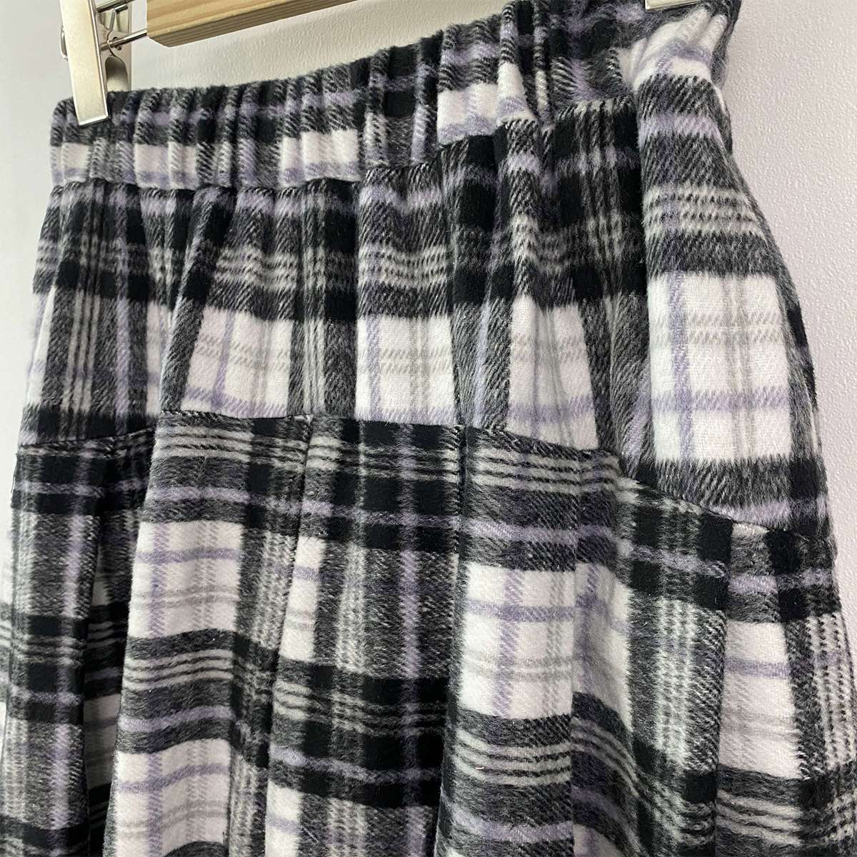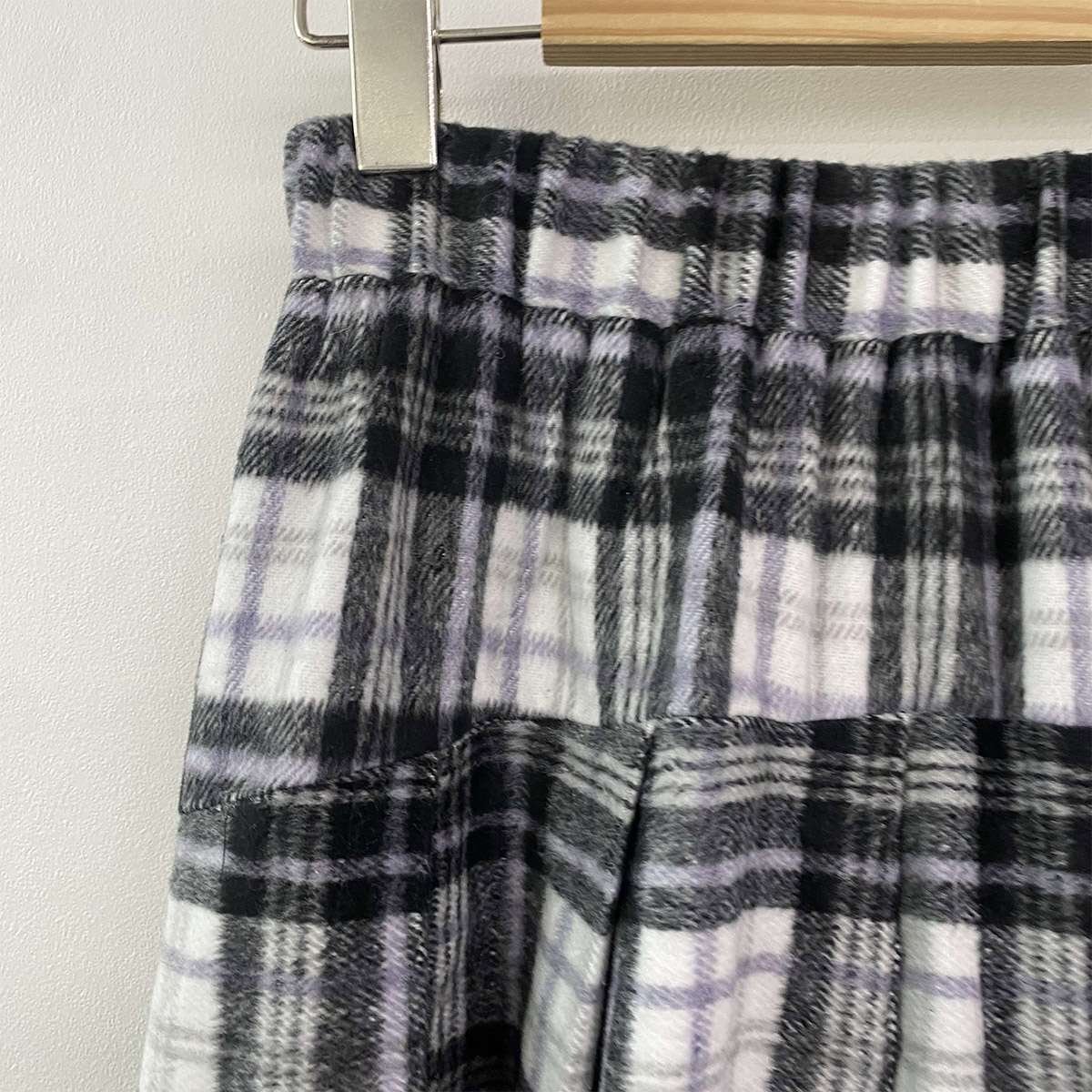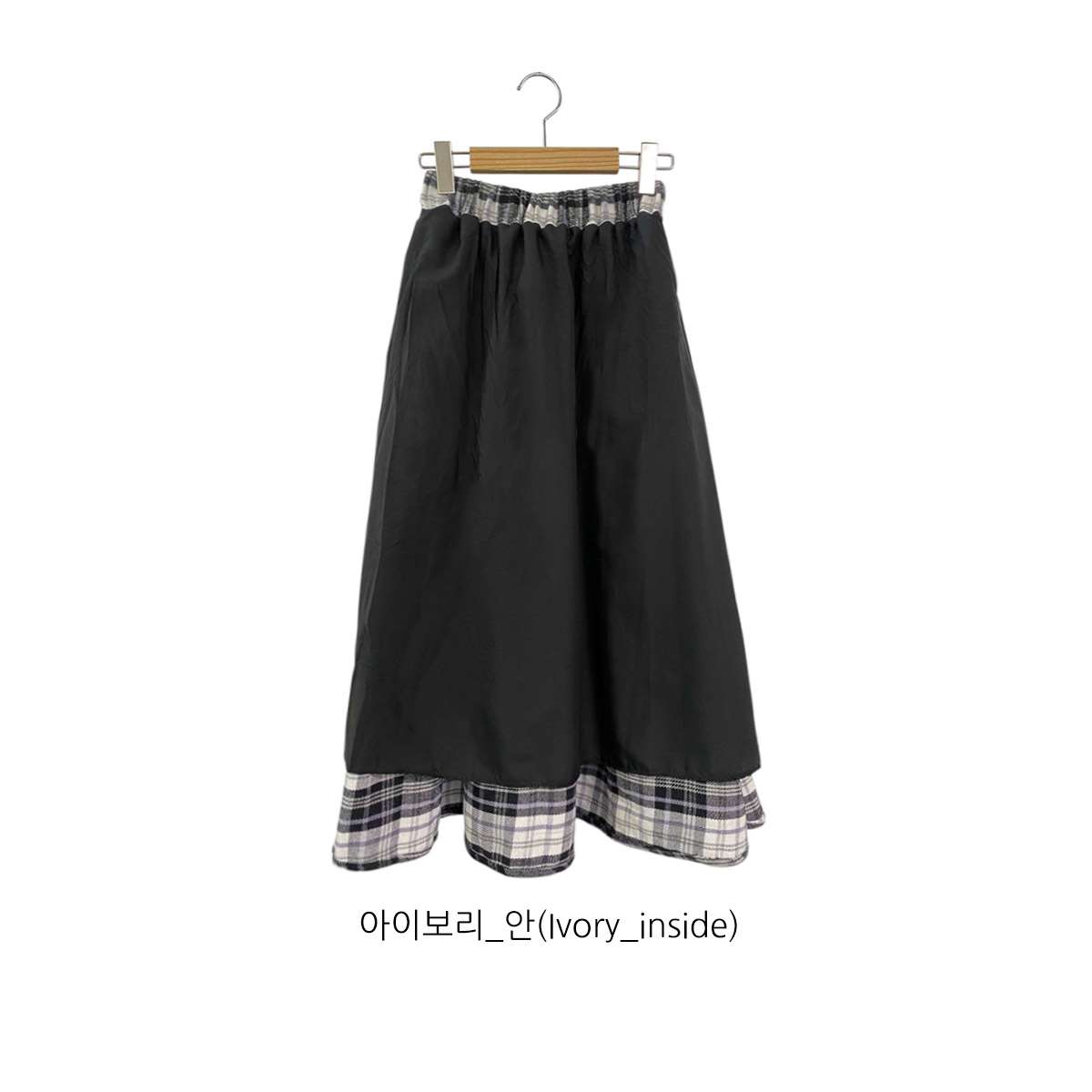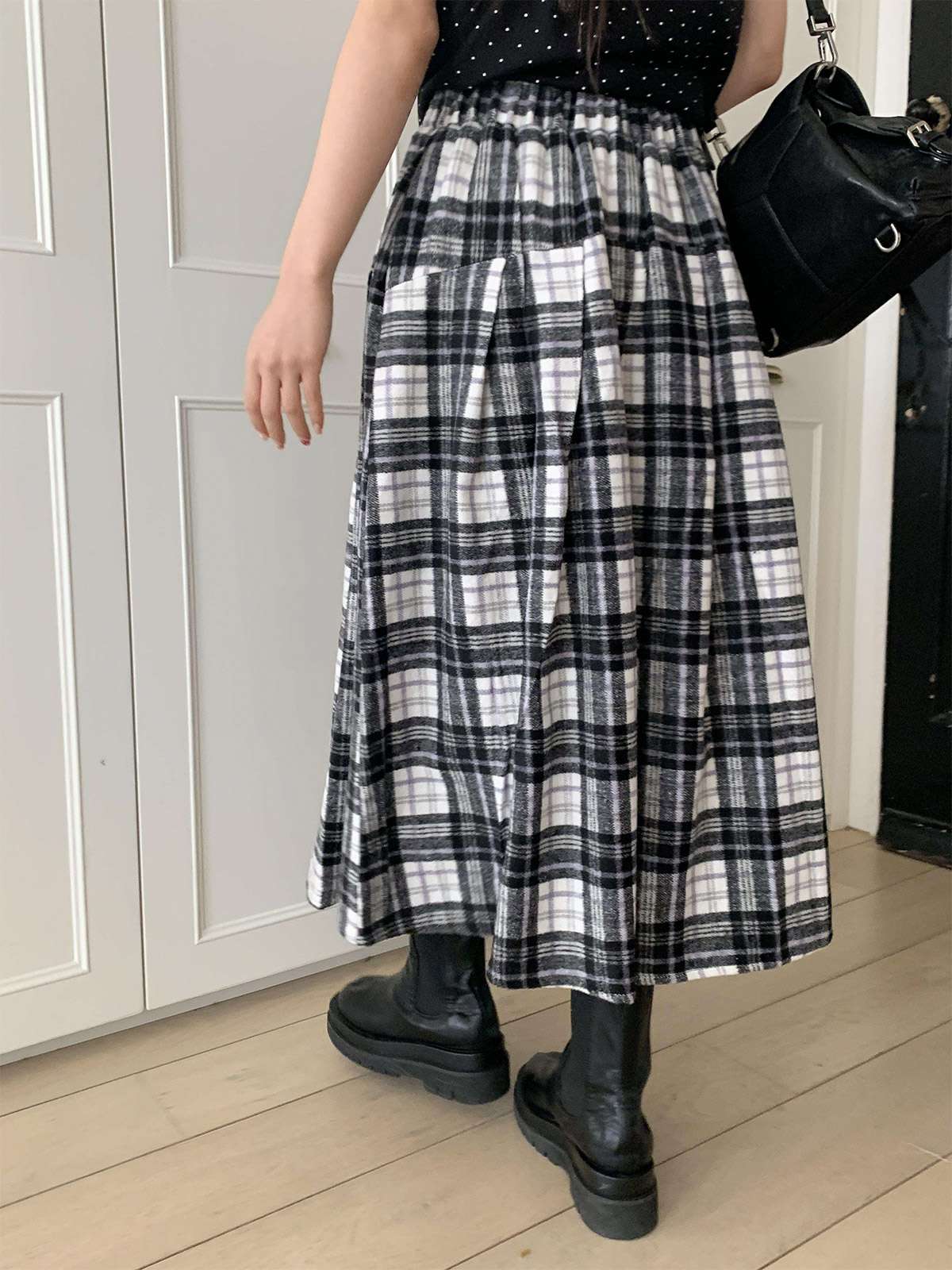 웜한 모직 소재로 겨울부터 봄 시즌까지 포근하게 착용되는 체크 롱 스커트로