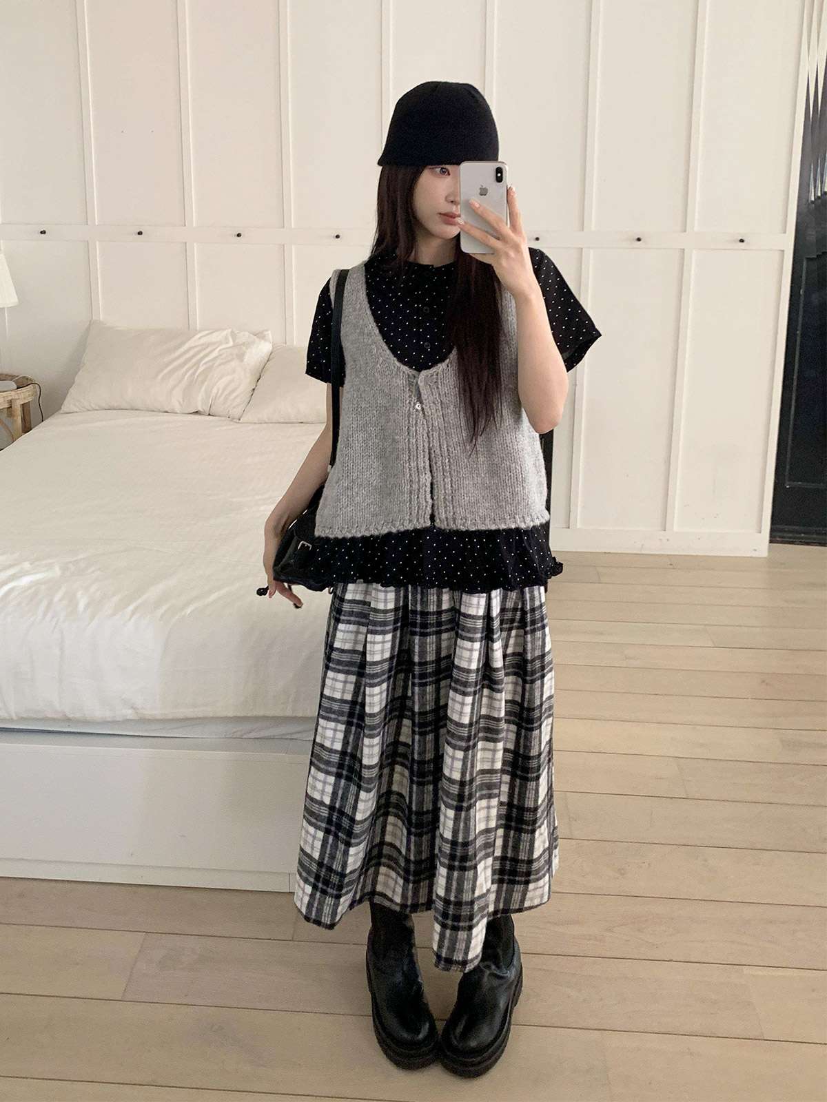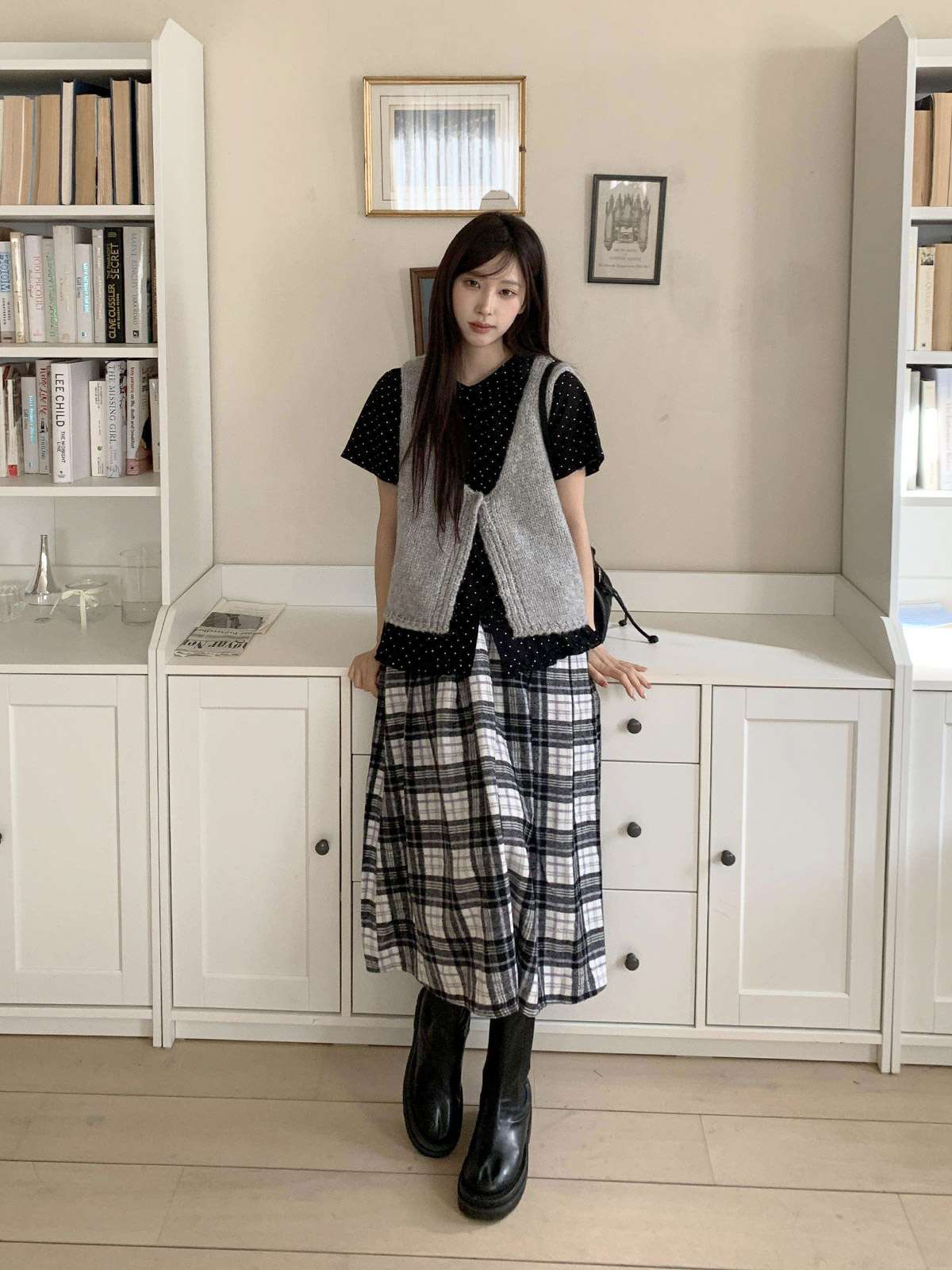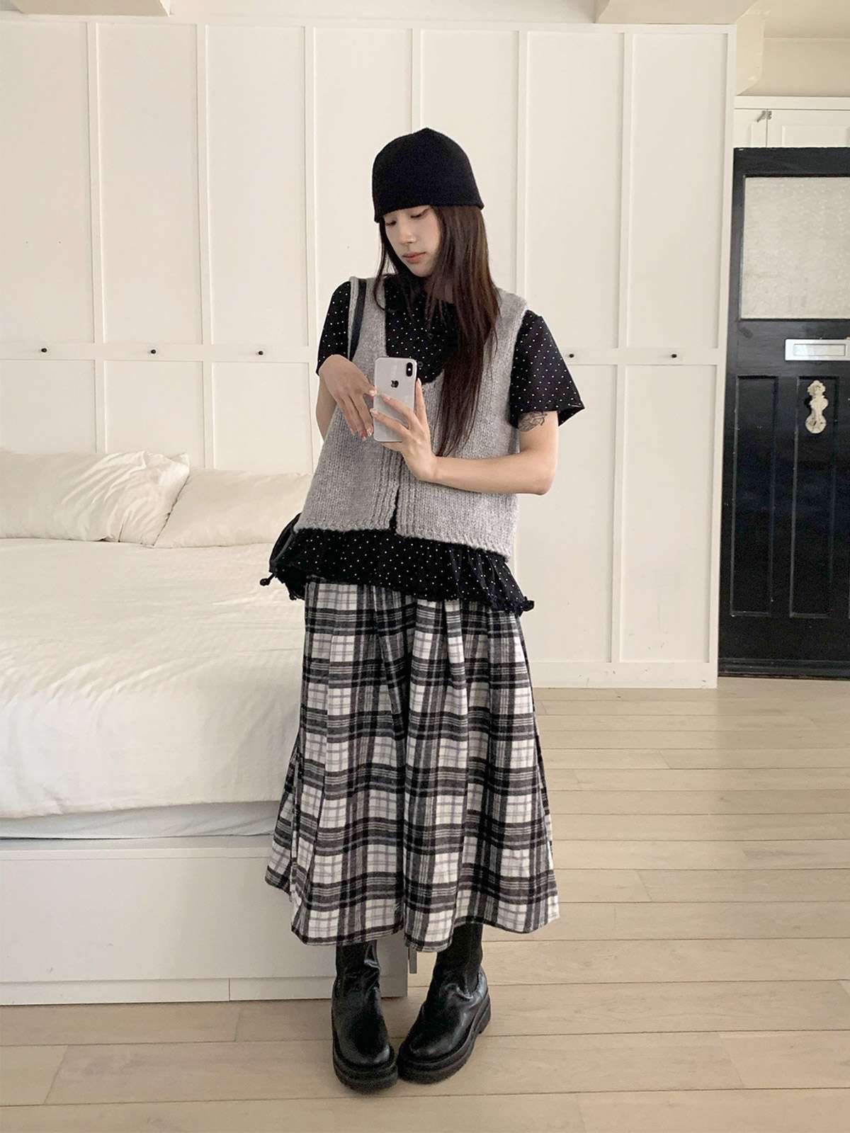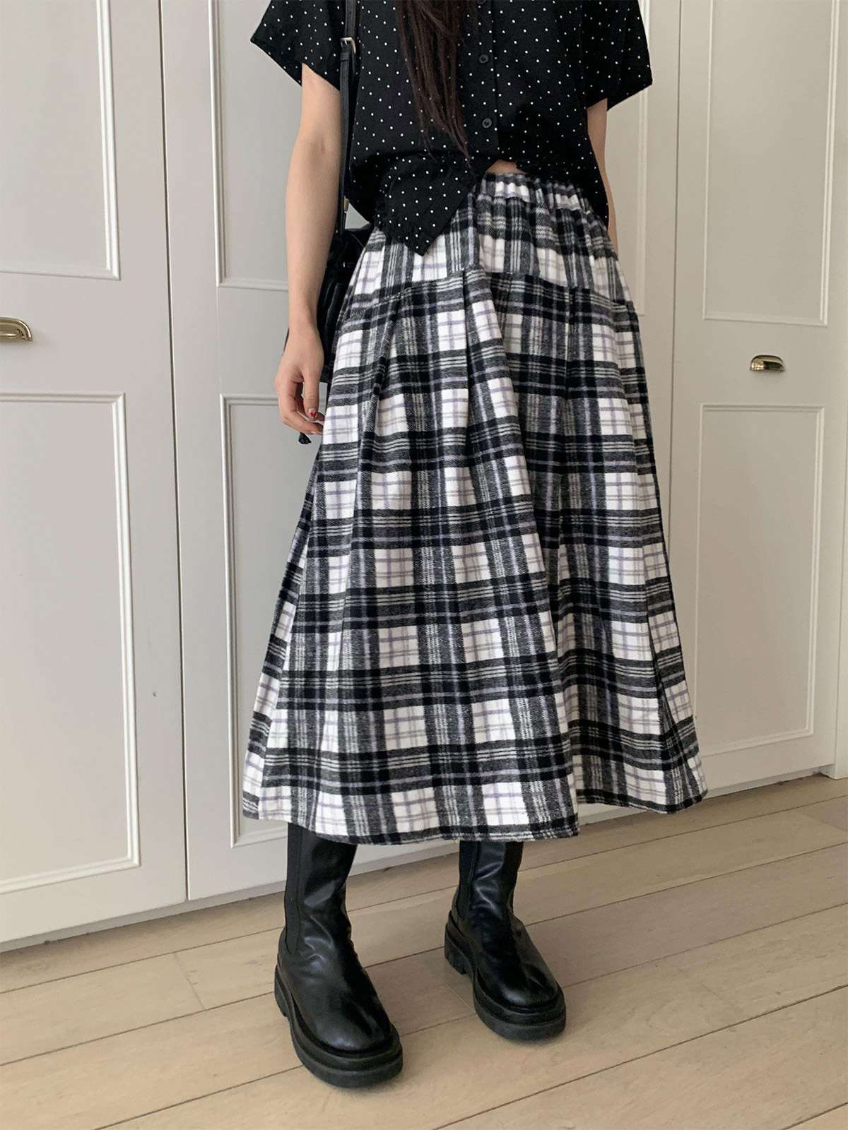 데일리룩으로 모리걸 스타일로도 잘어울리는 롱 체크 스커트