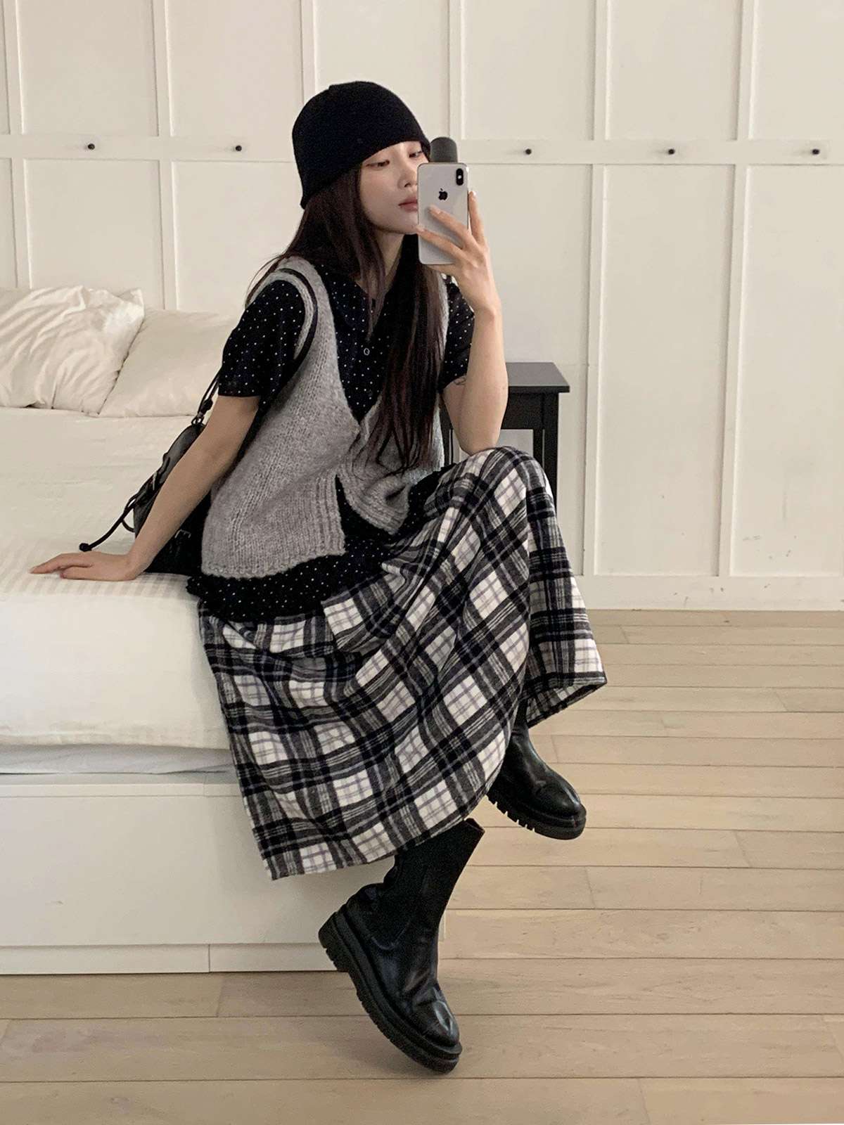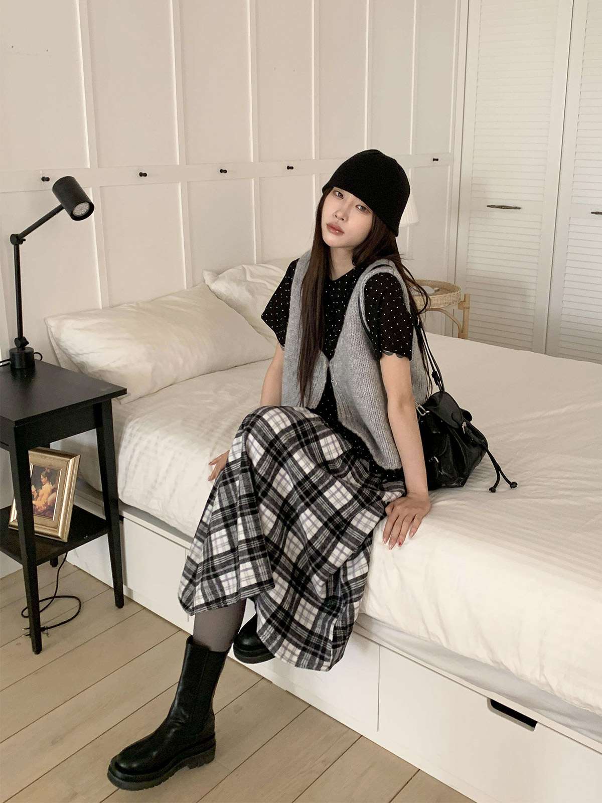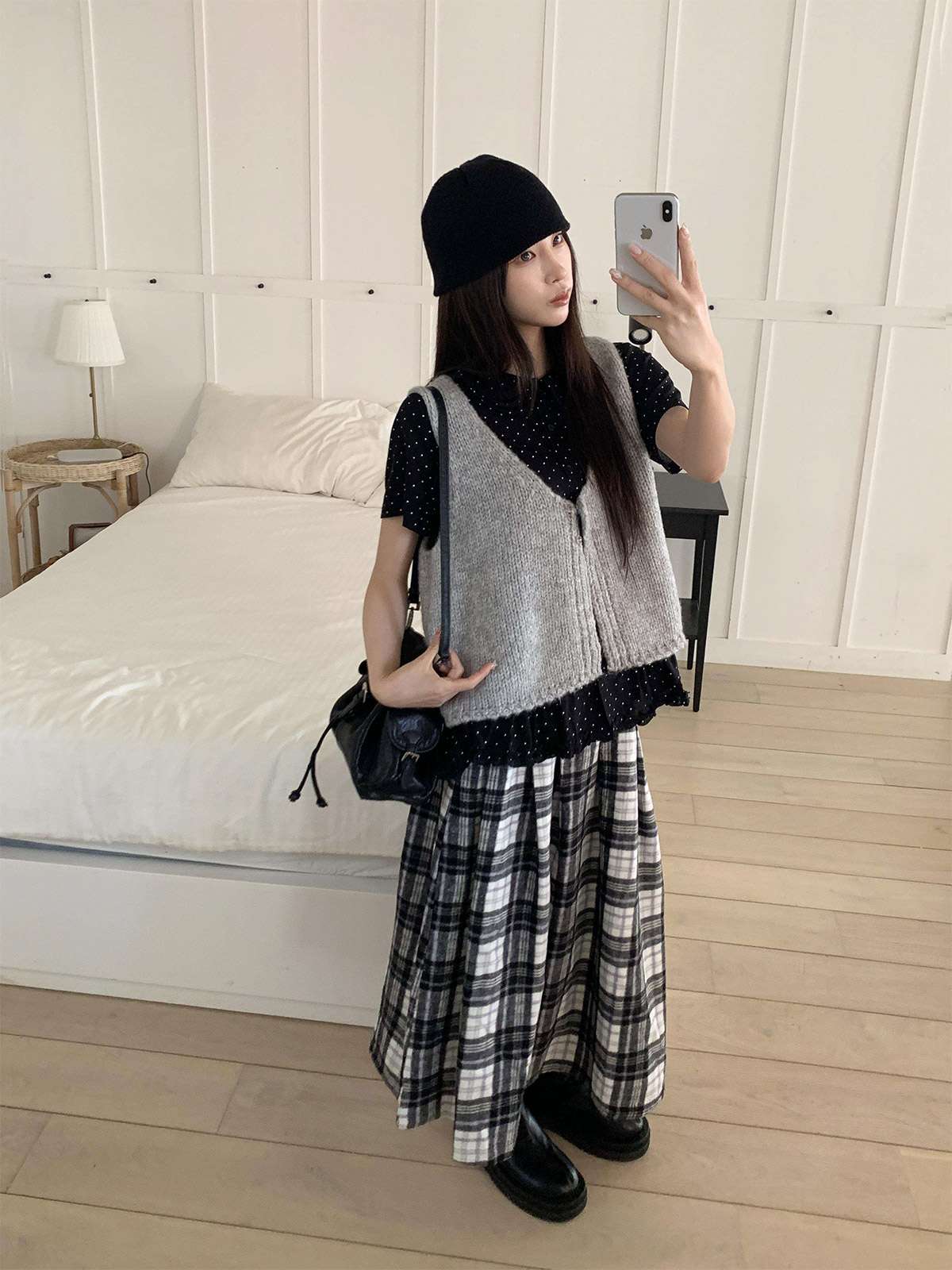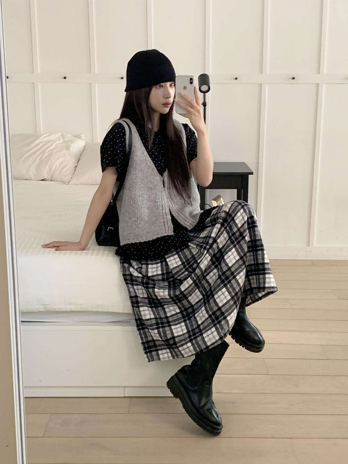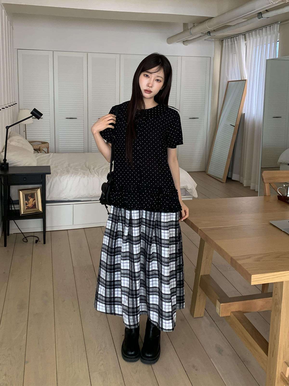 데일리룩으로 모리걸 스타일로도 잘어울리는 롱 체크 스커트