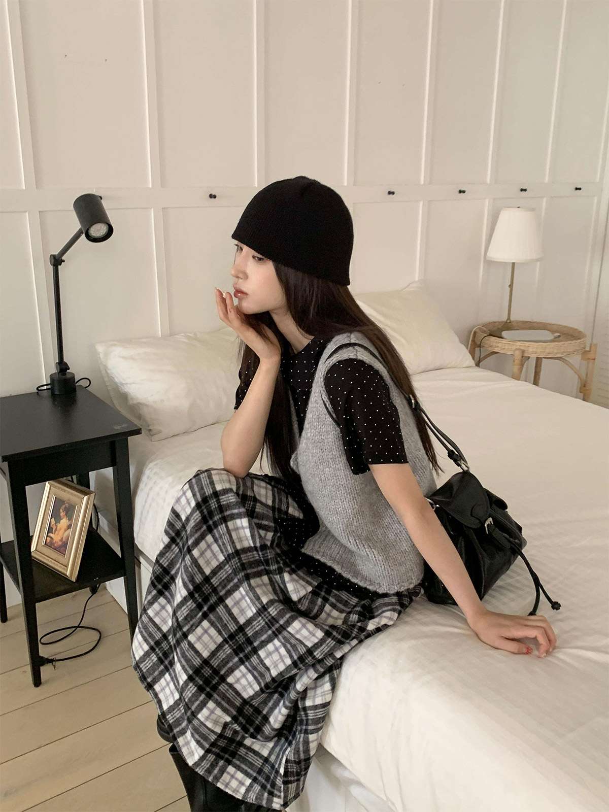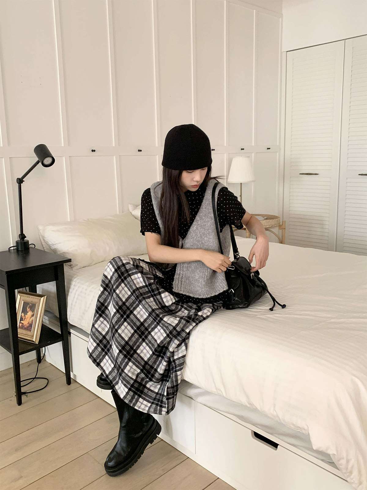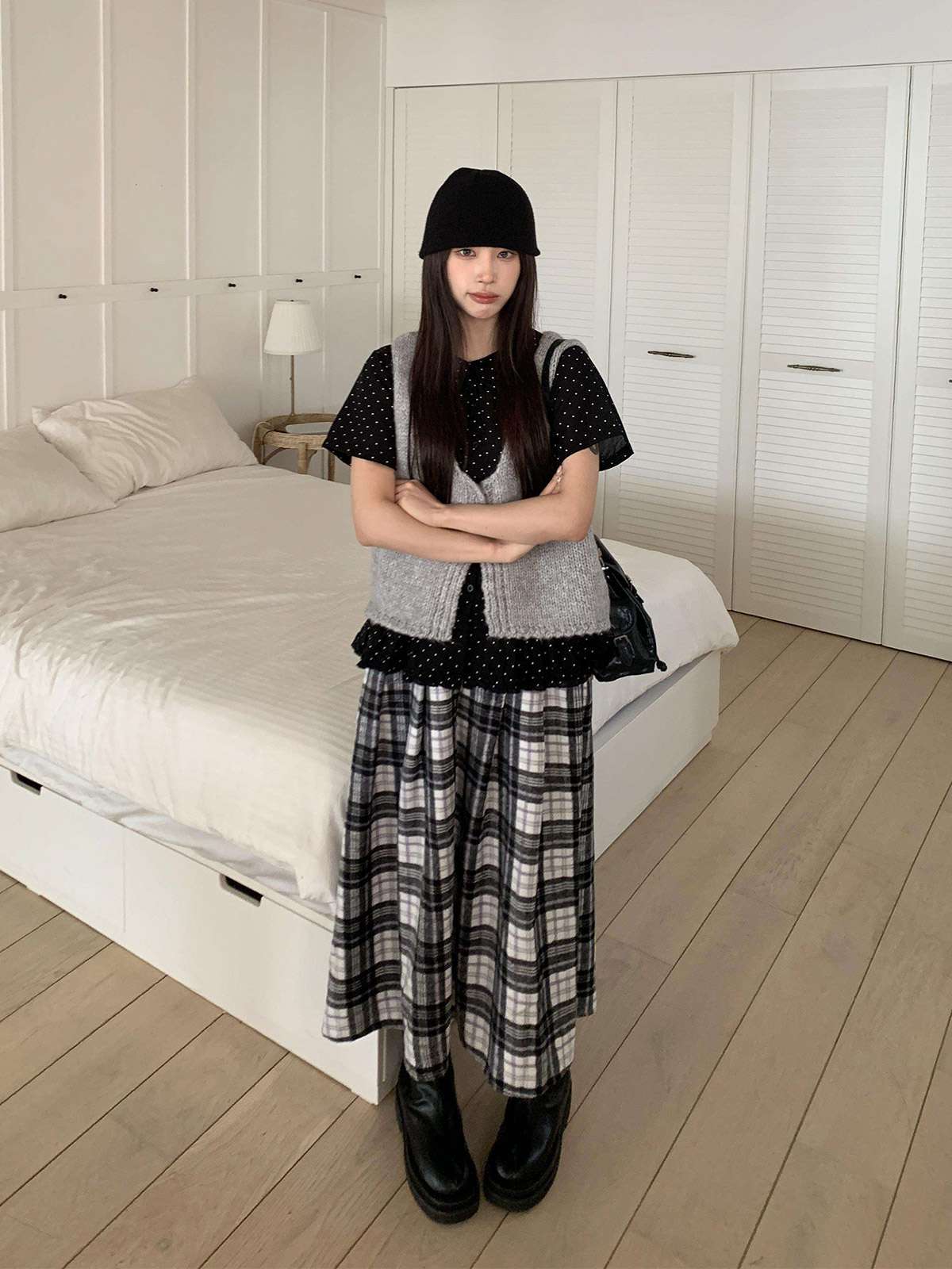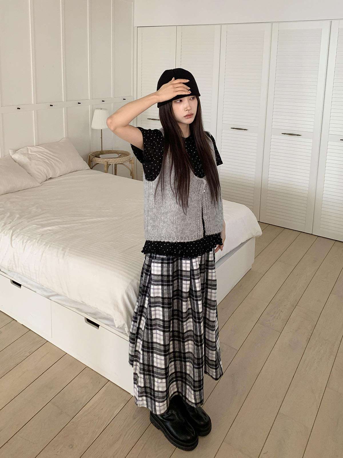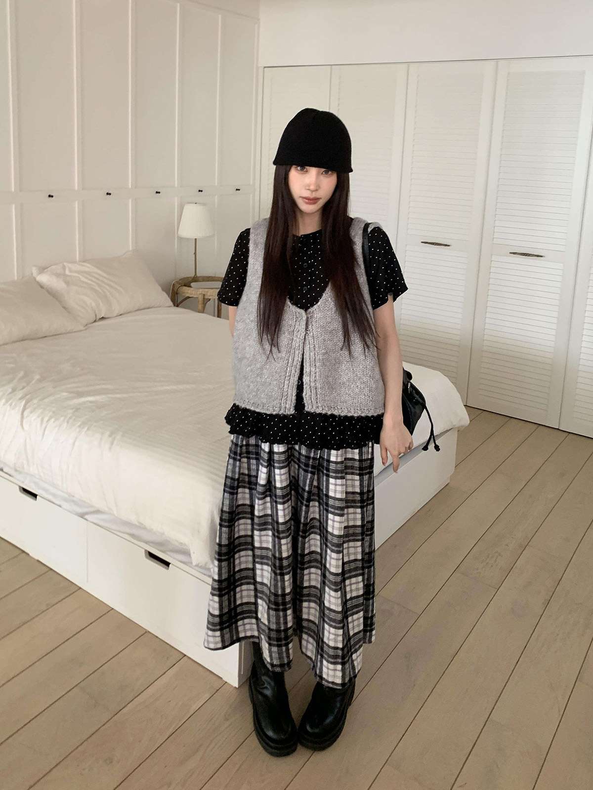데일리룩으로 모리걸 스타일로도 잘어울리는 롱 체크 스커트
