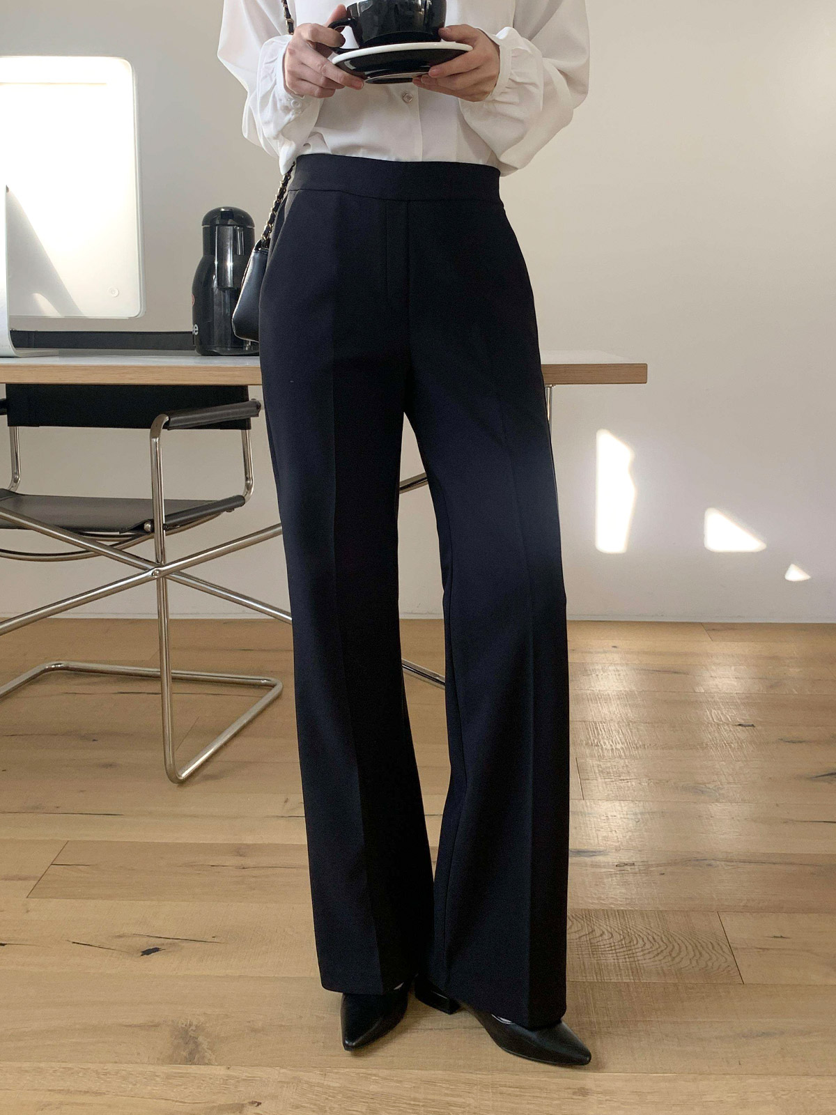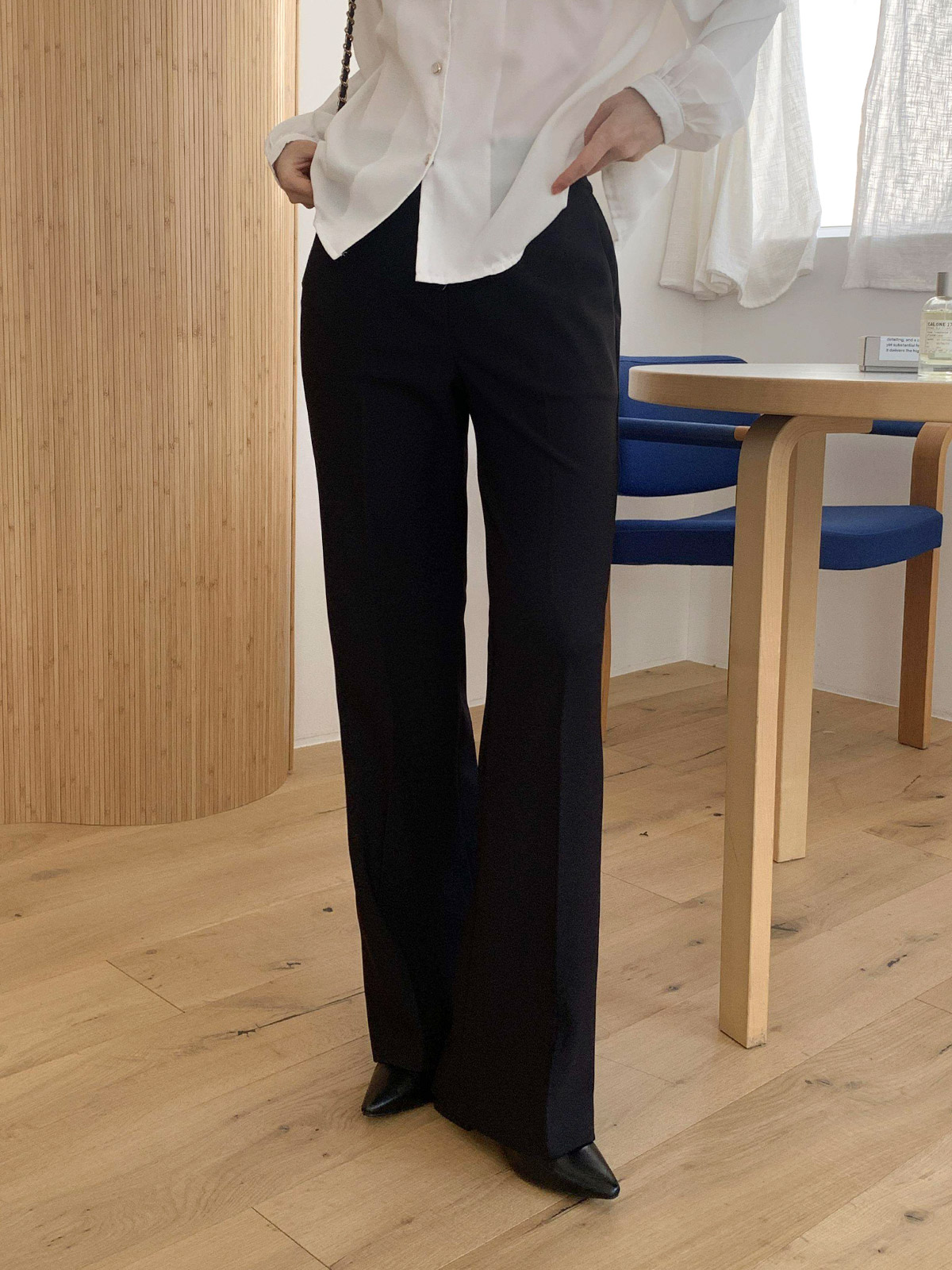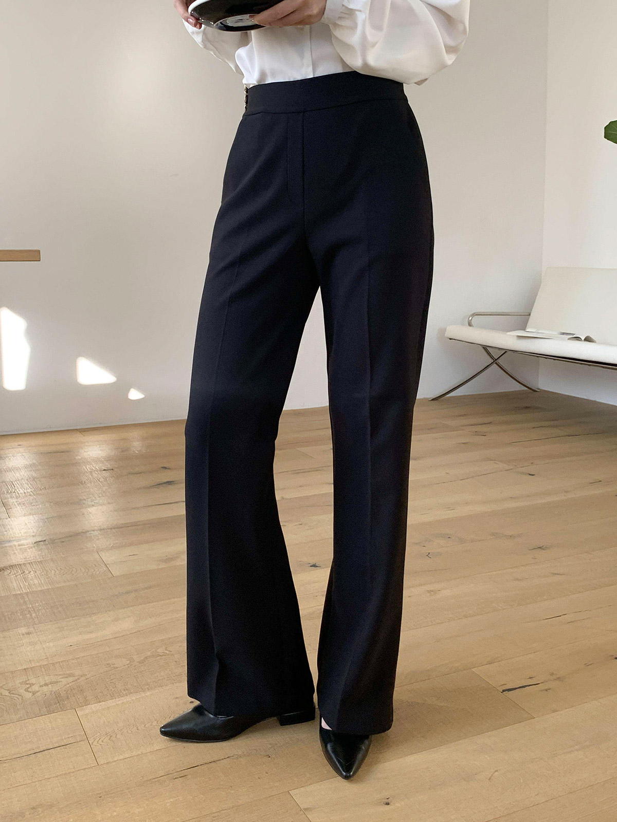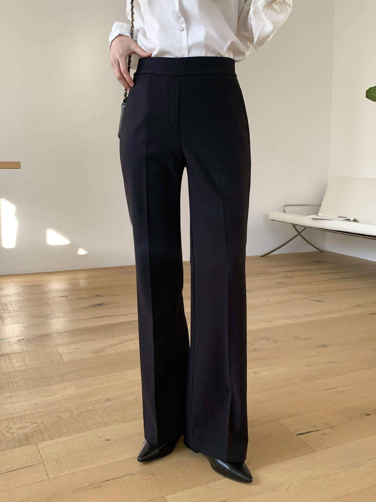 오피스룩,격식있는 자리 등 고급스럽게 입기 좋은 밴딩 슬림 부츠컷 팬츠