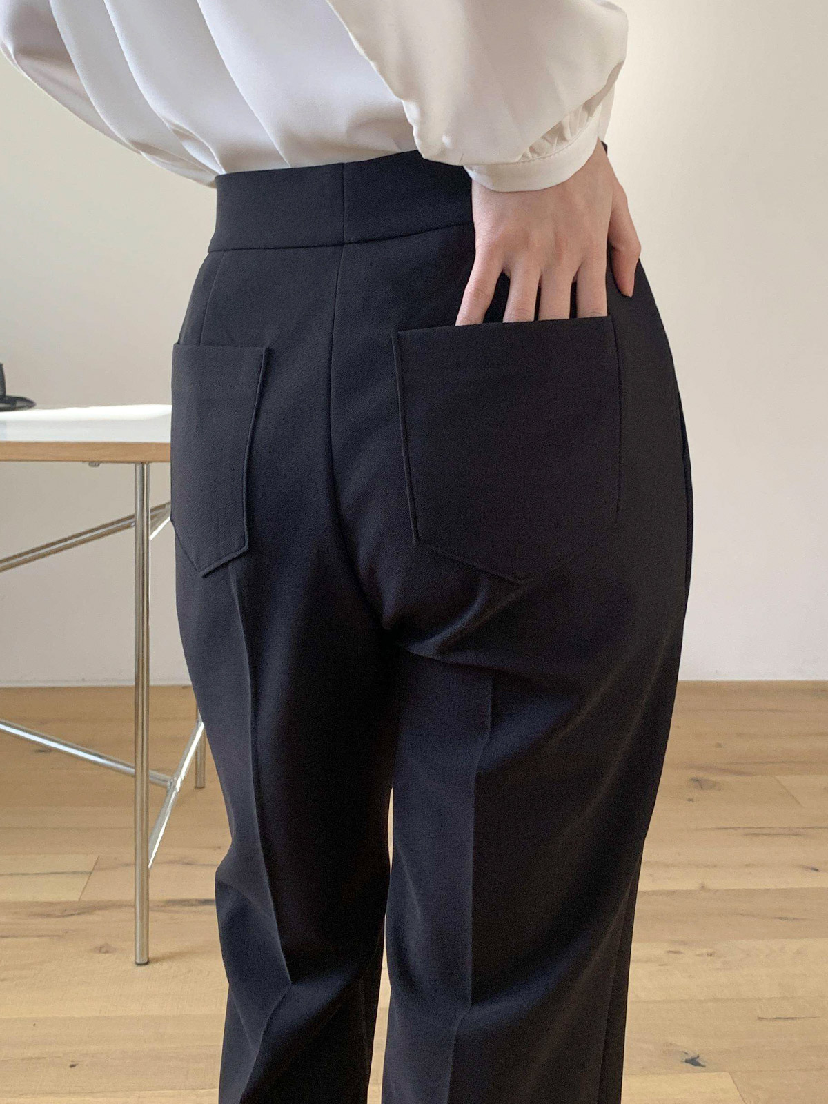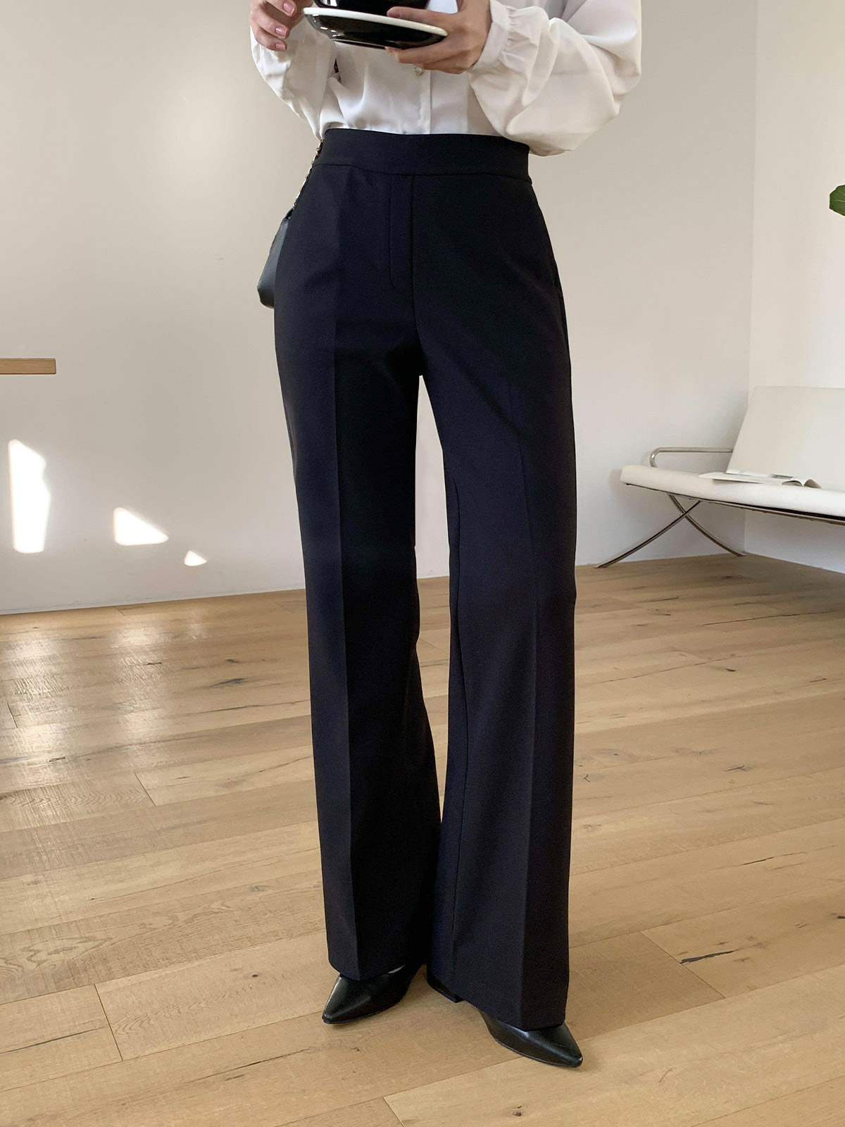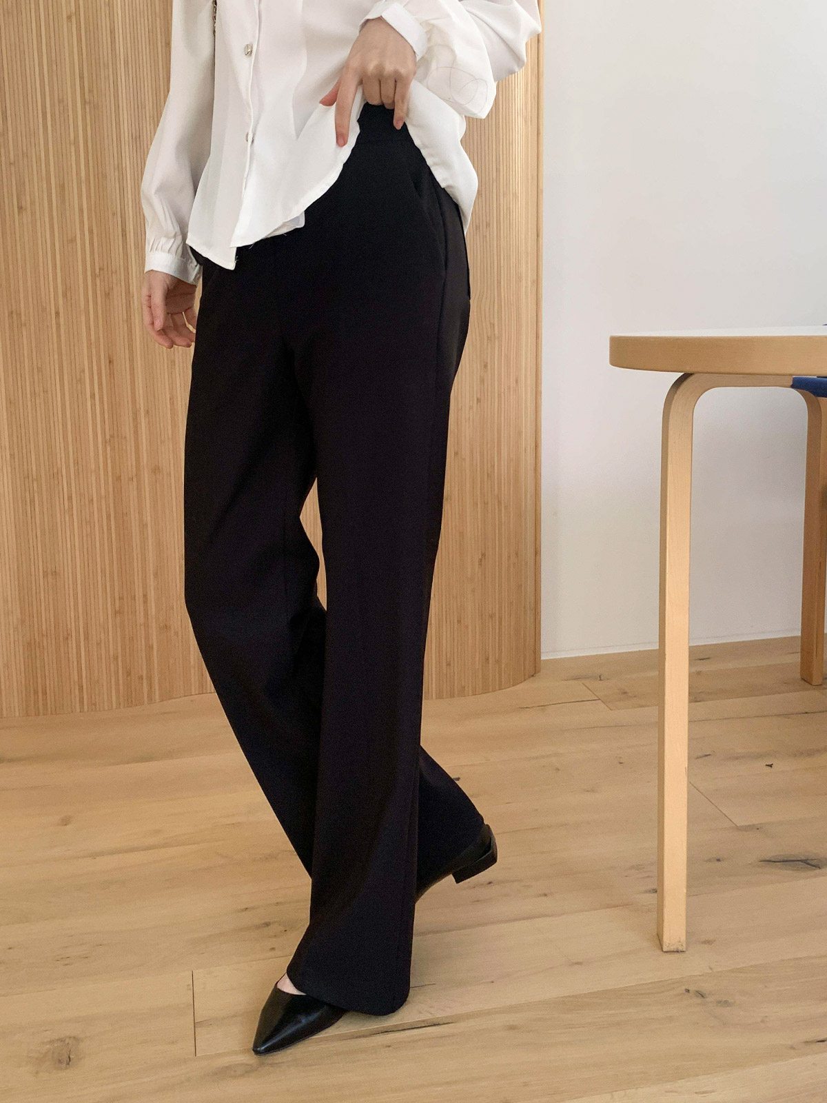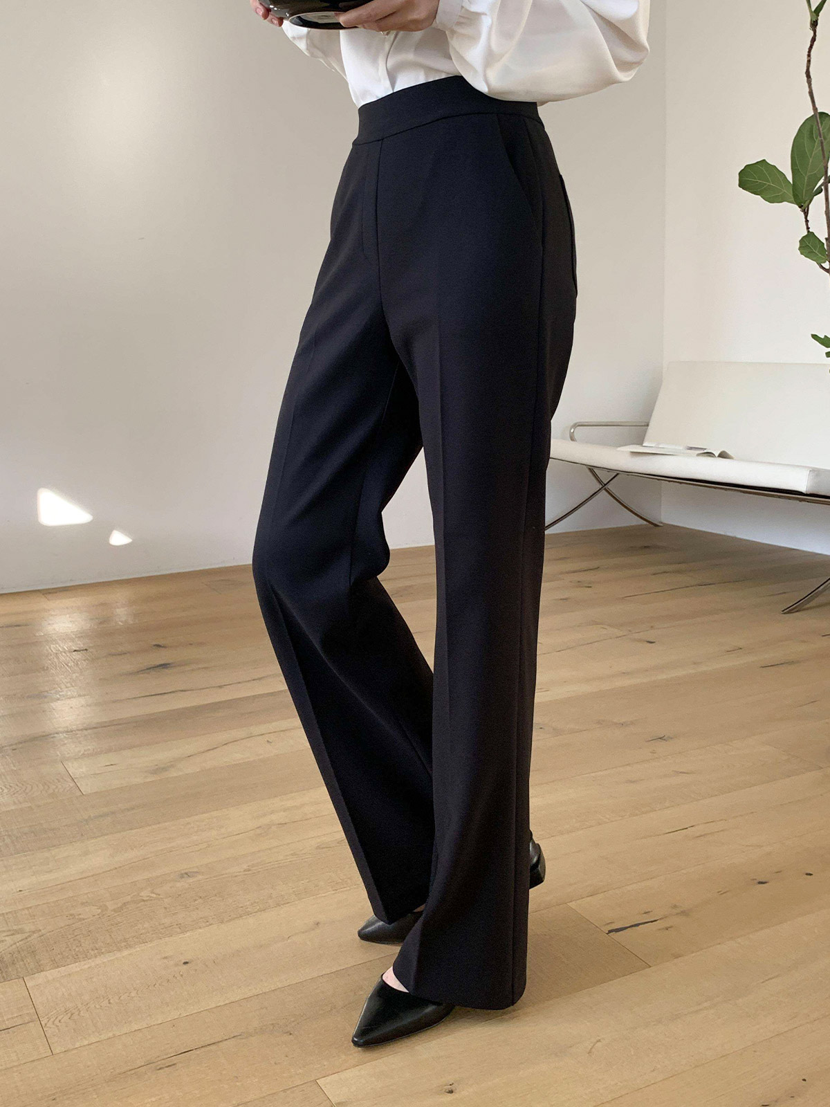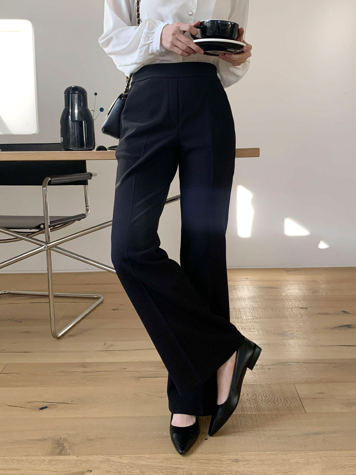 오피스룩,격식있는 자리 등 고급스럽게 입기 좋은 밴딩 슬림 부츠컷 팬츠