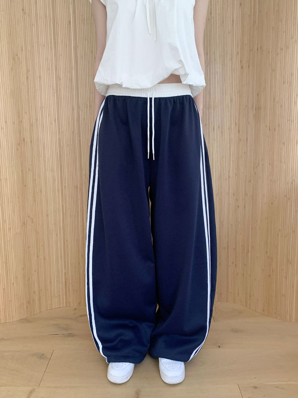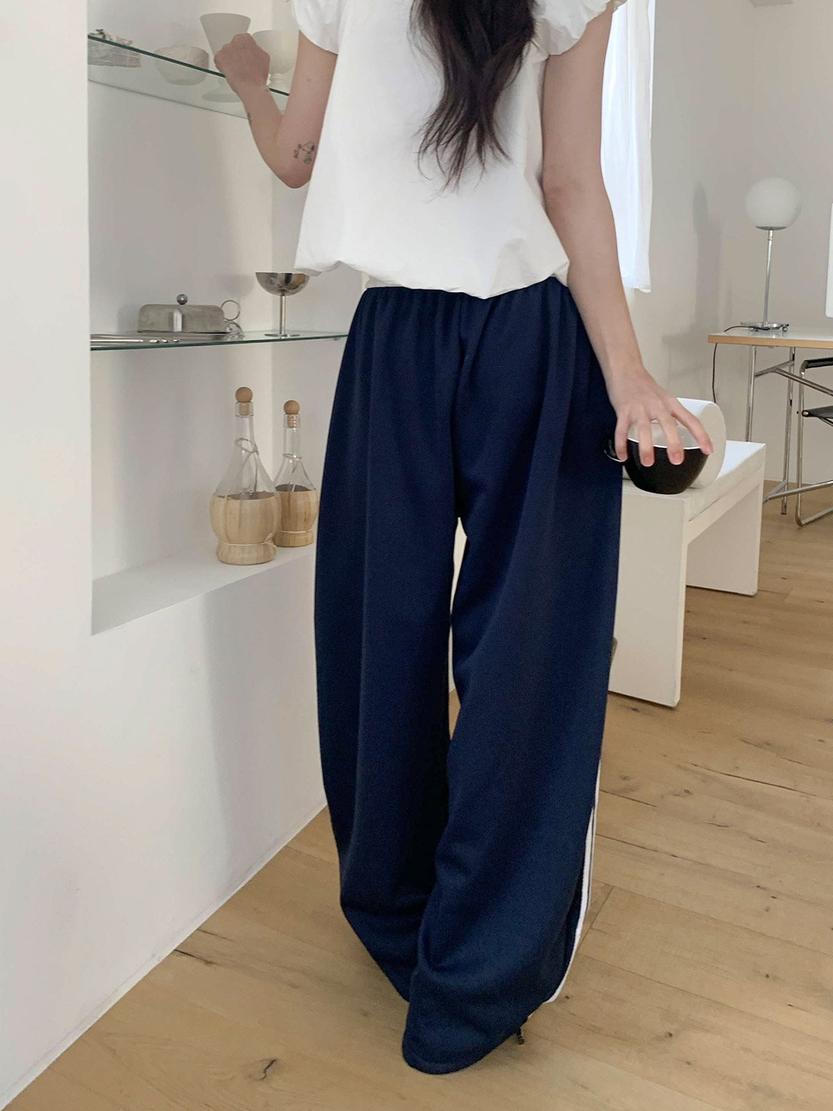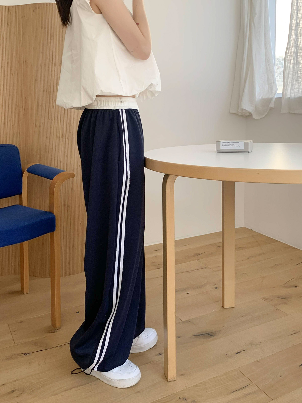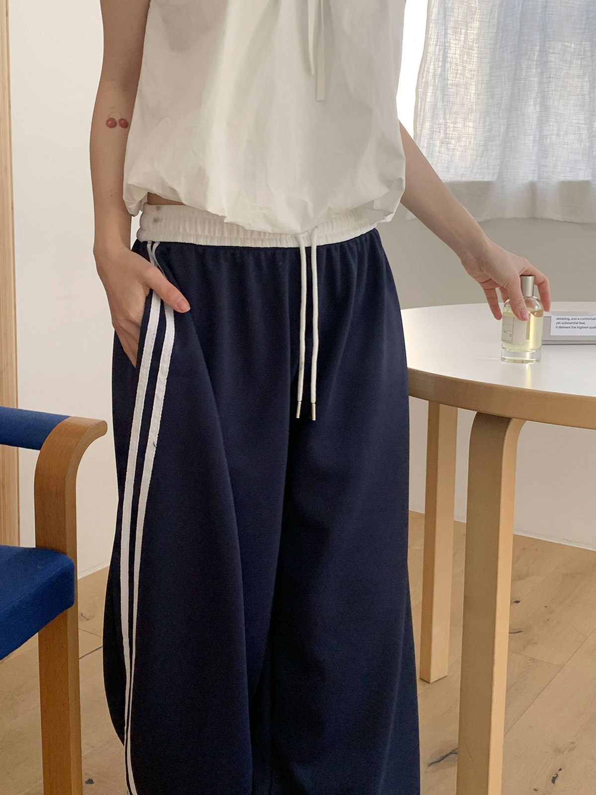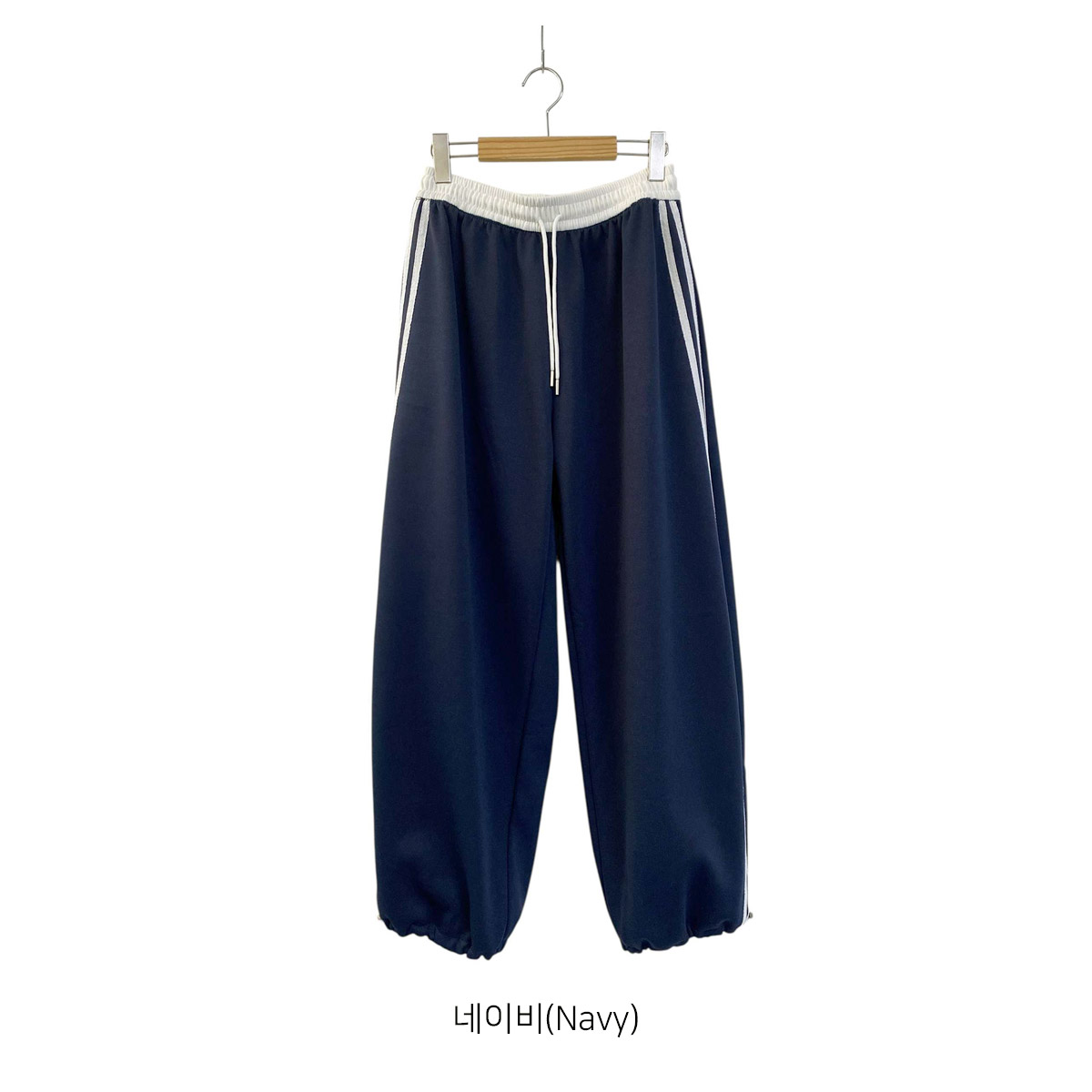 PT15714K5C-케로한 배색 라인 와이드 코튼 밴딩 팬츠