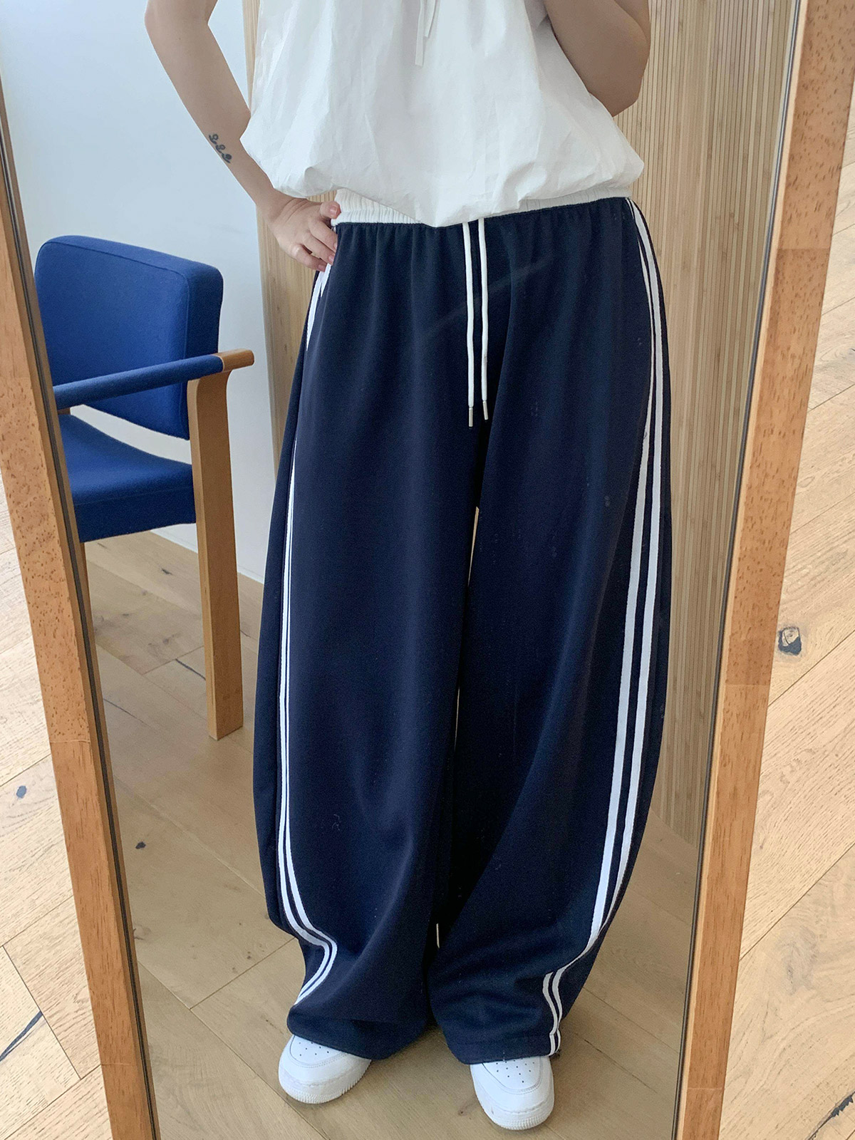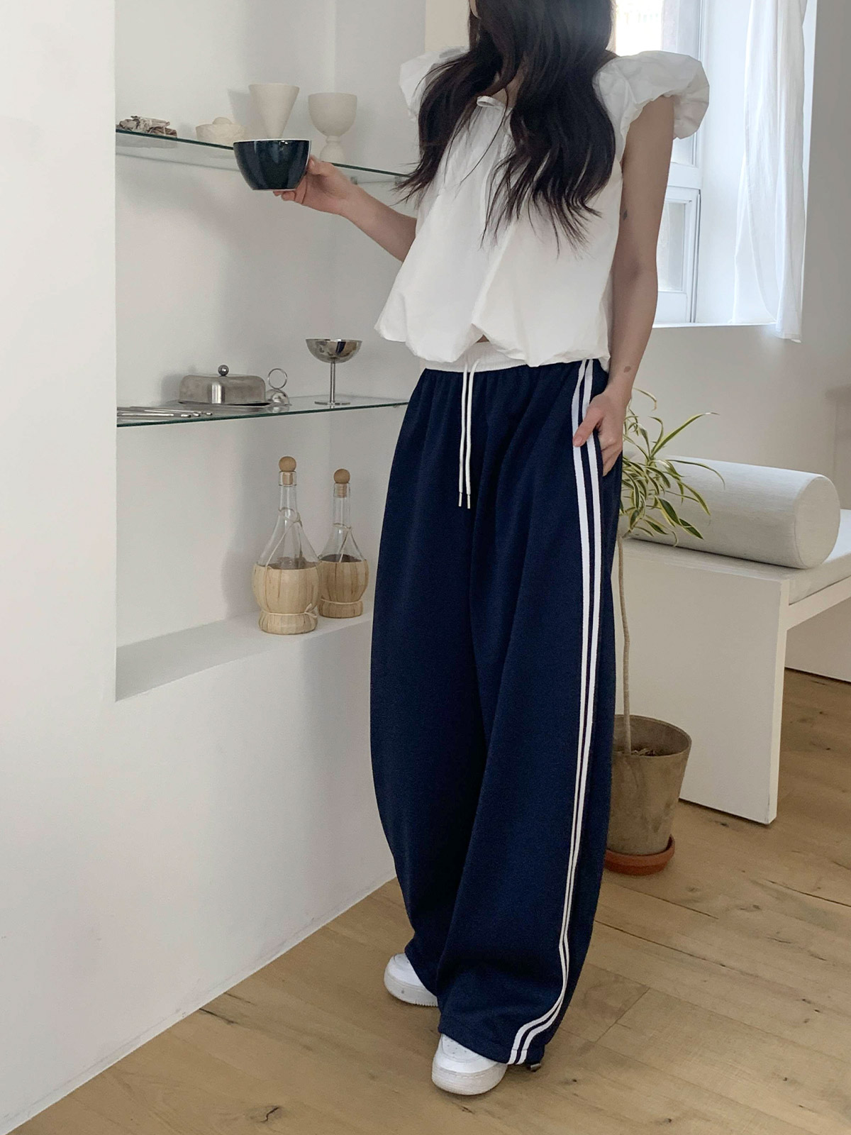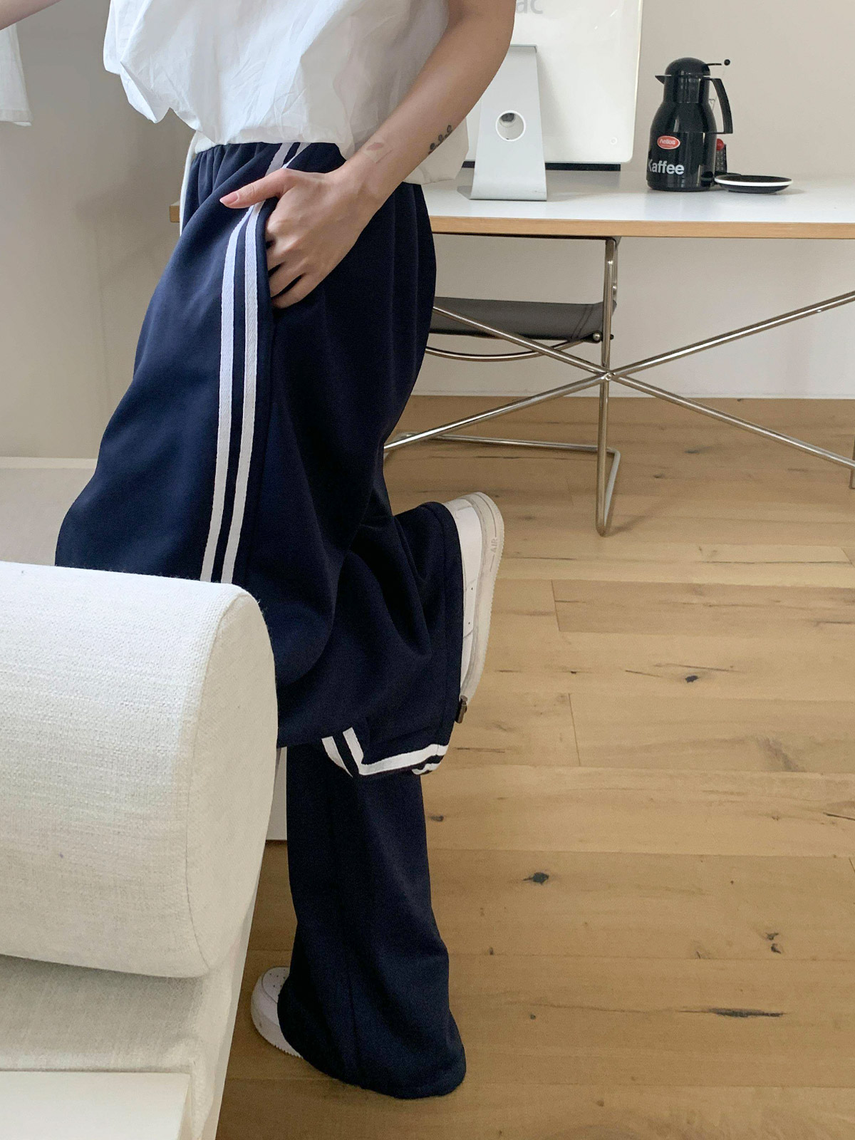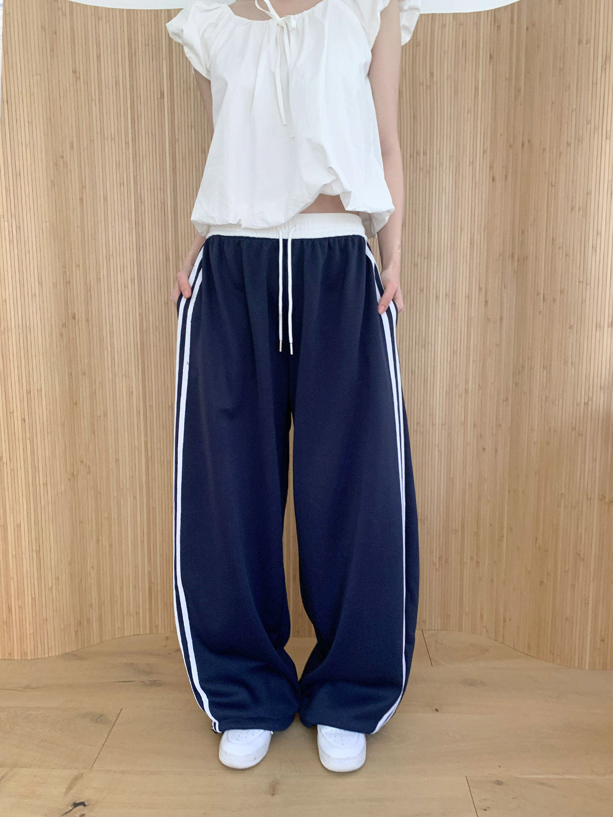 PT15714K5C-케로한 배색 라인 와이드 코튼 밴딩 팬츠