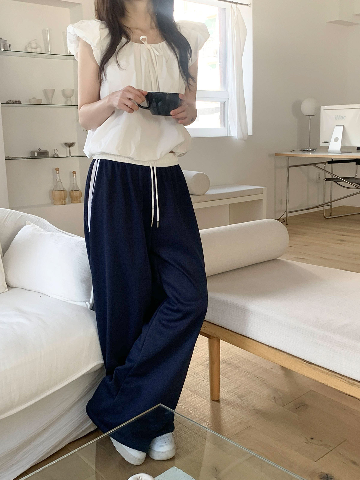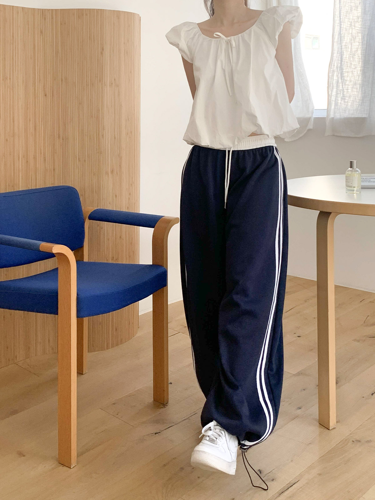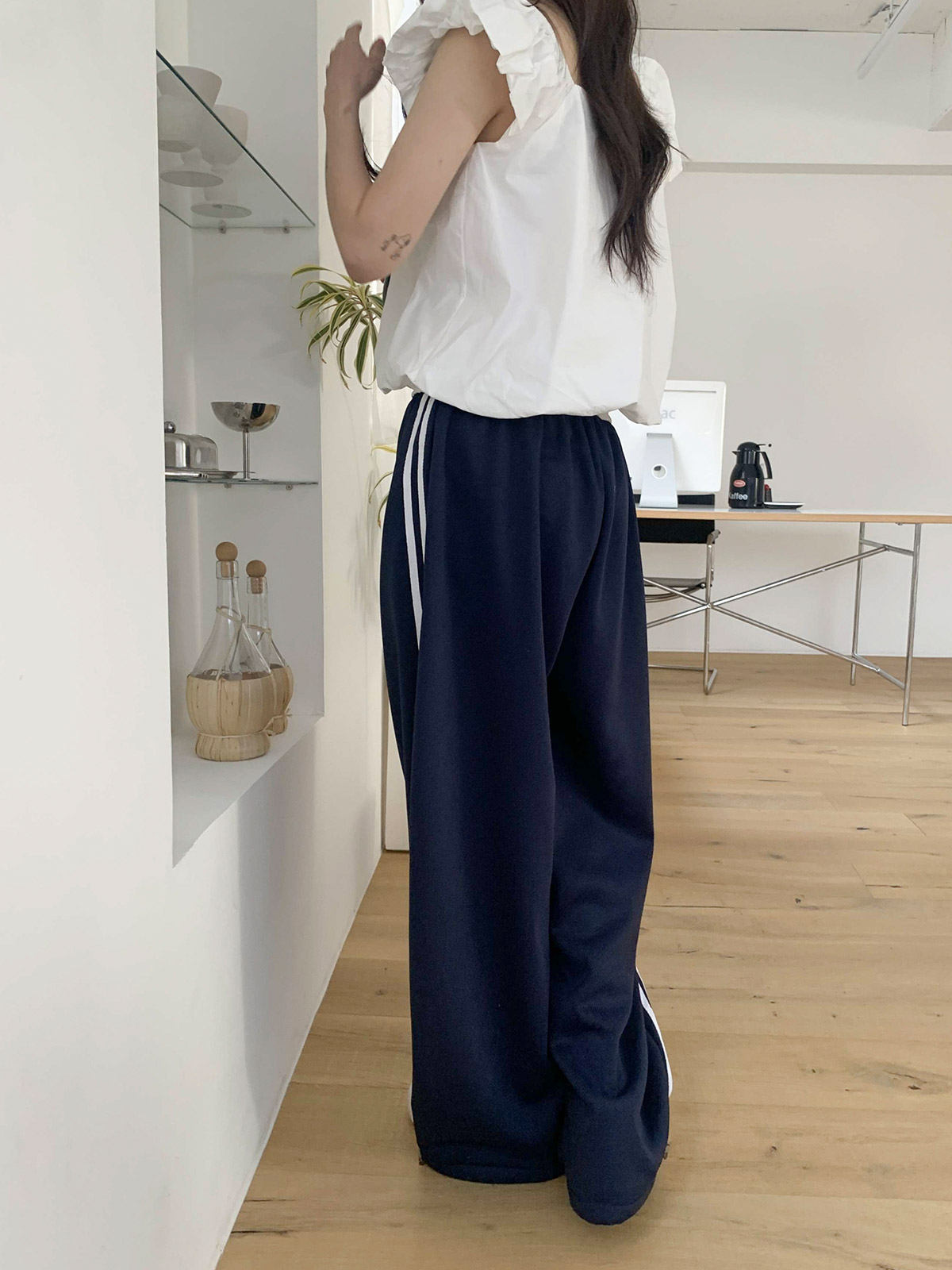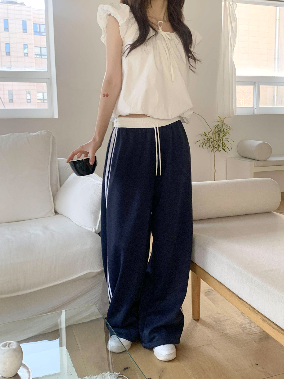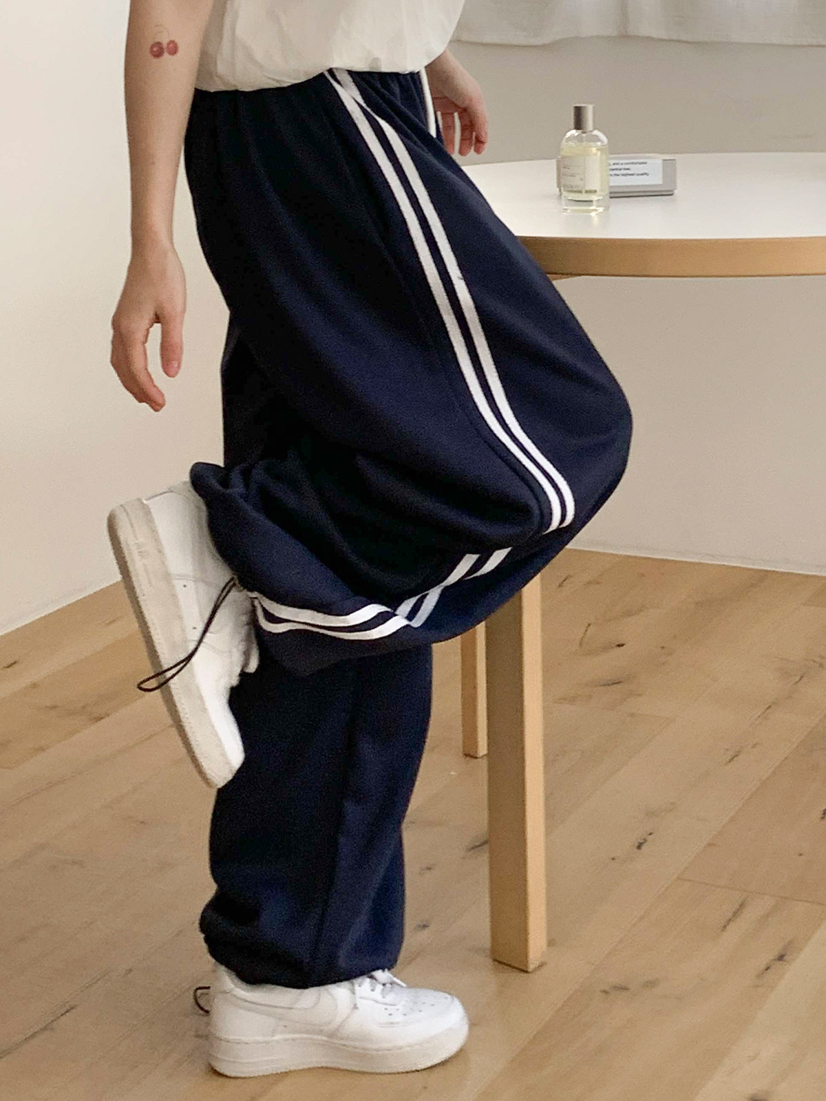 PT15714K5C-케로한 배색 라인 와이드 코튼 밴딩 팬츠