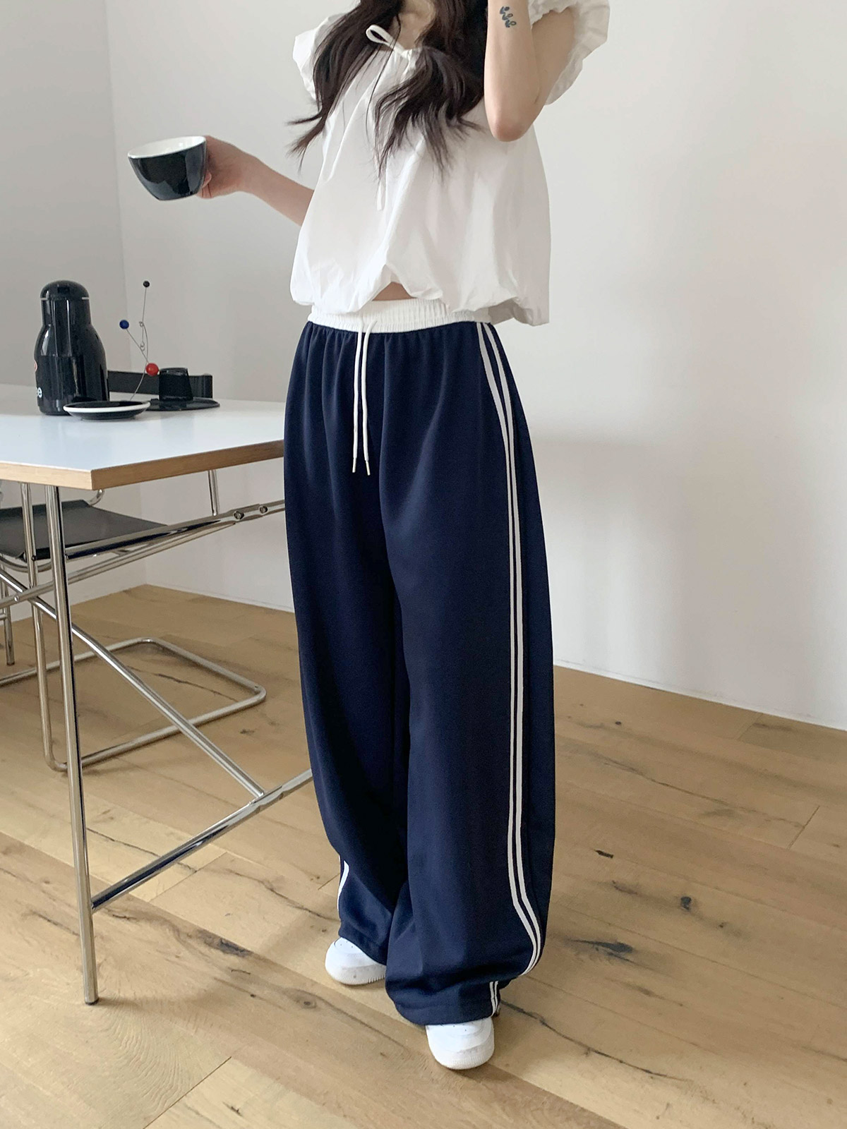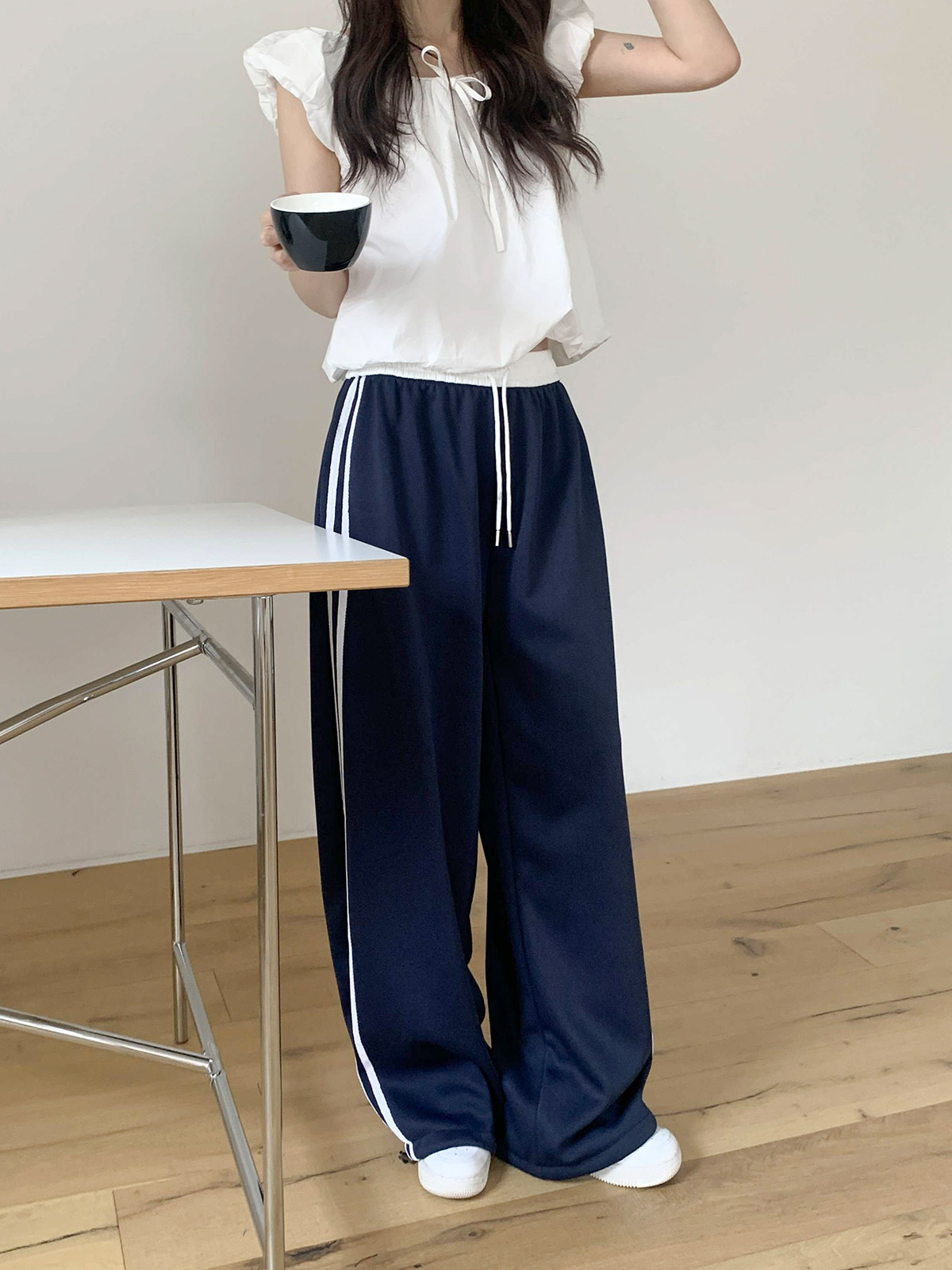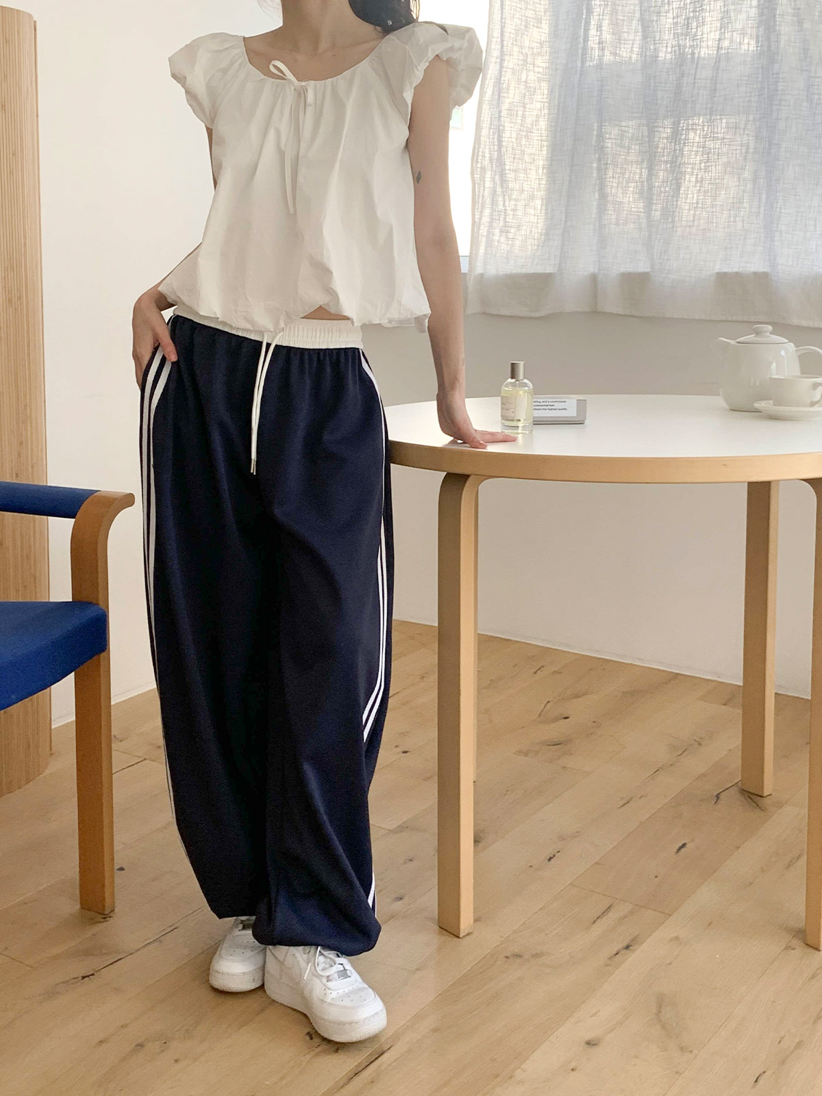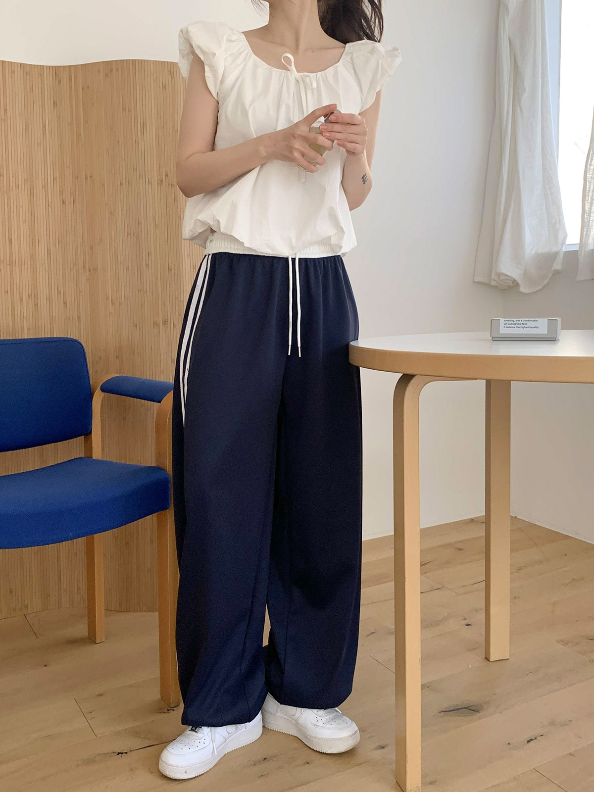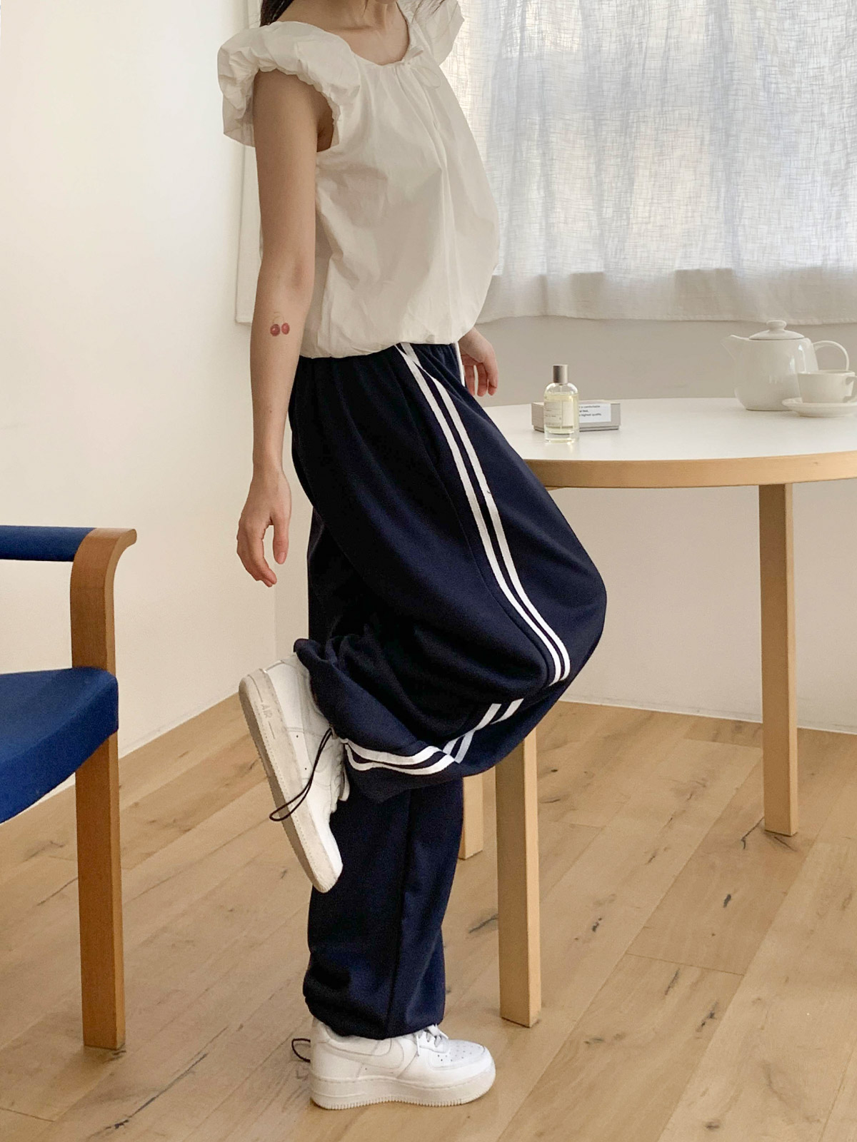PT15714K5C-케로한 배색 라인 와이드 코튼 밴딩 팬츠