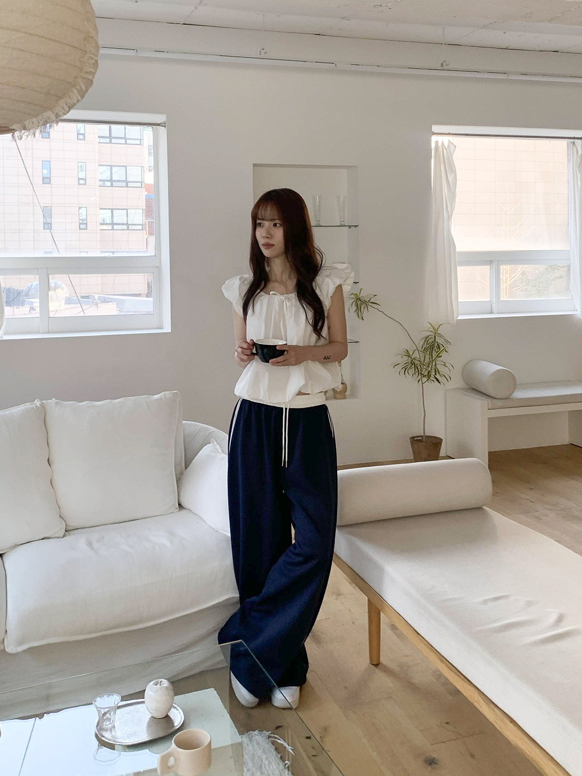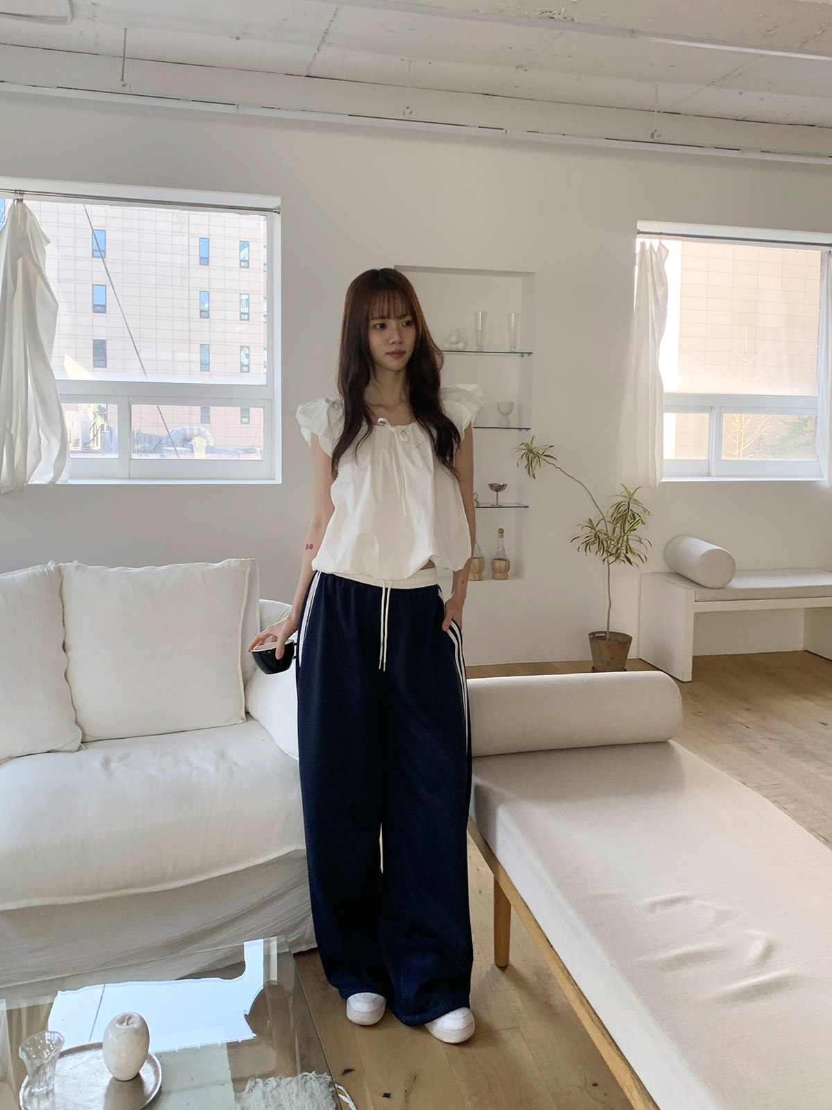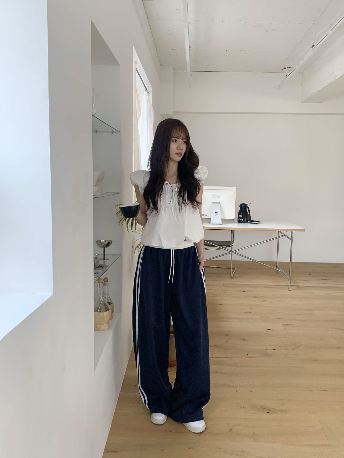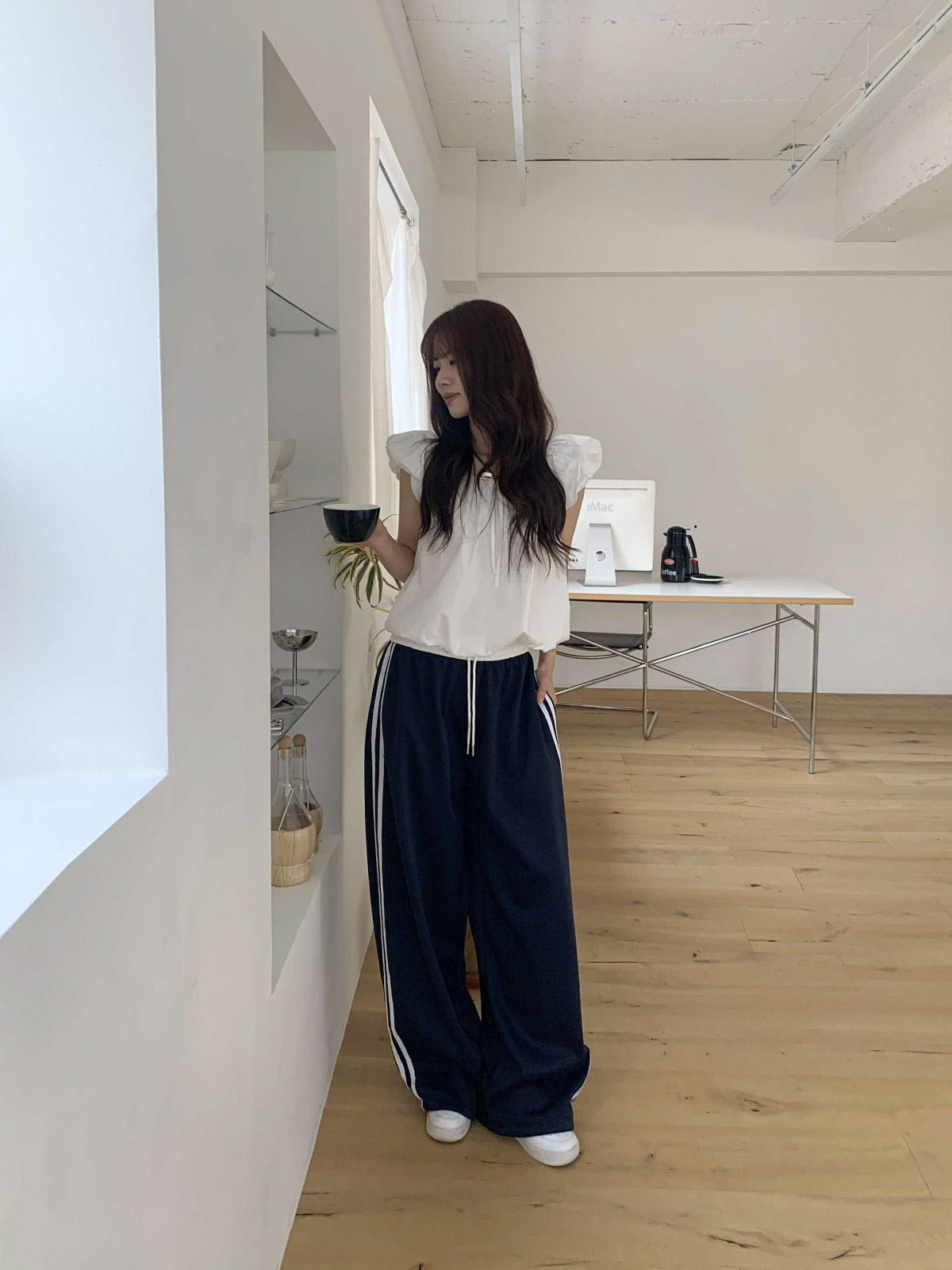 PT15714K5C-케로한 배색 라인 와이드 코튼 밴딩 팬츠