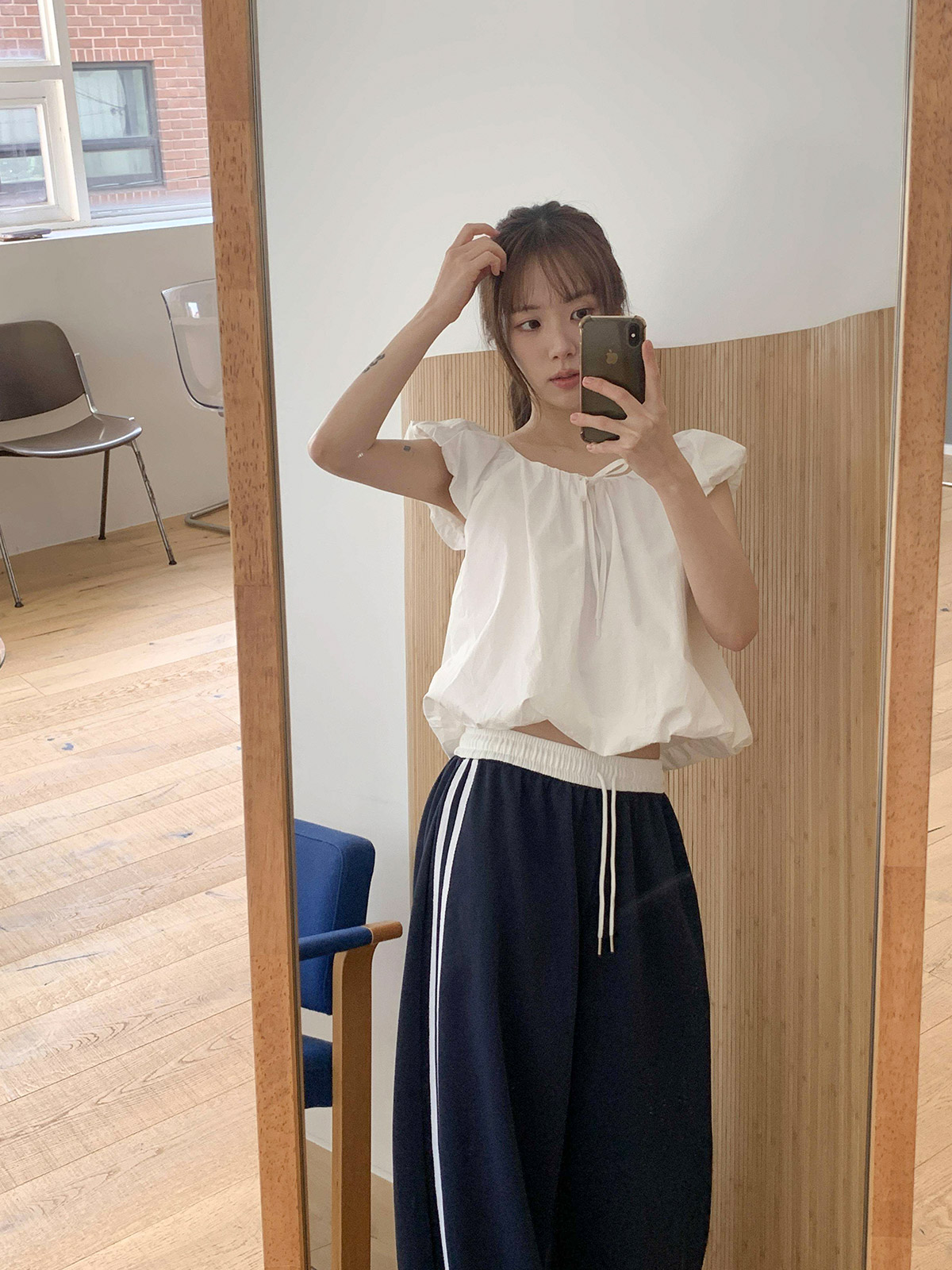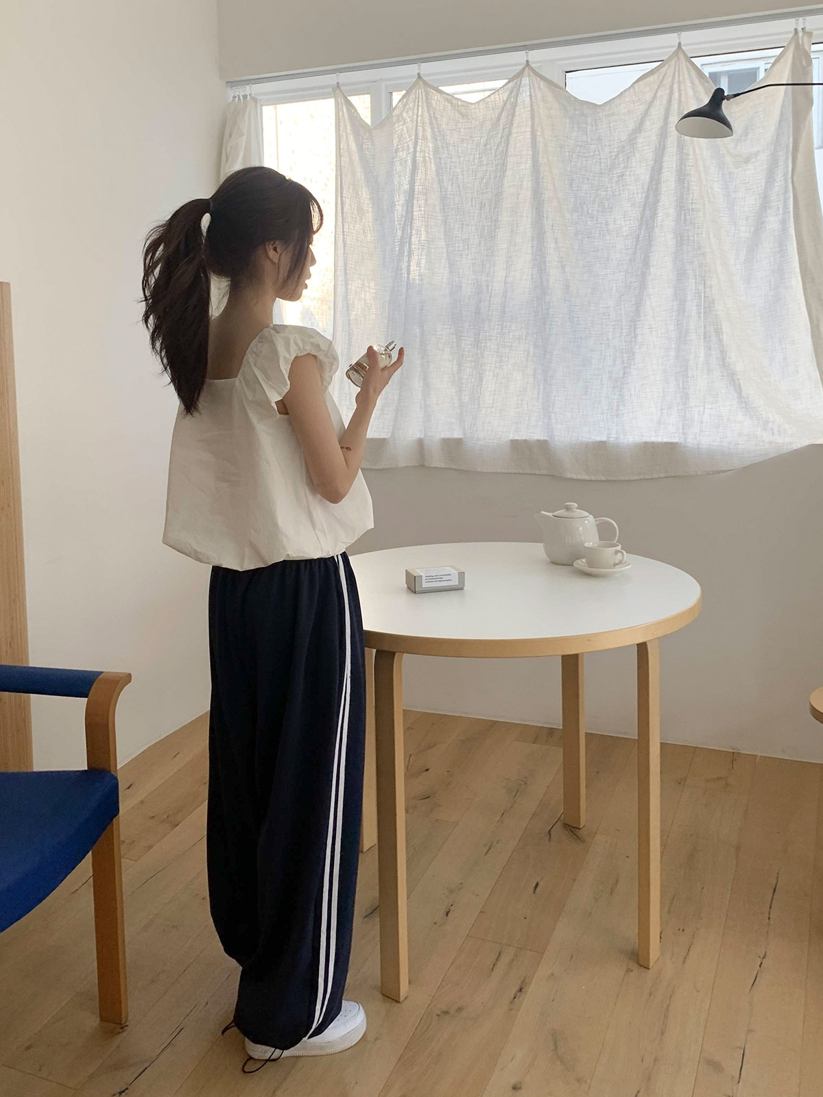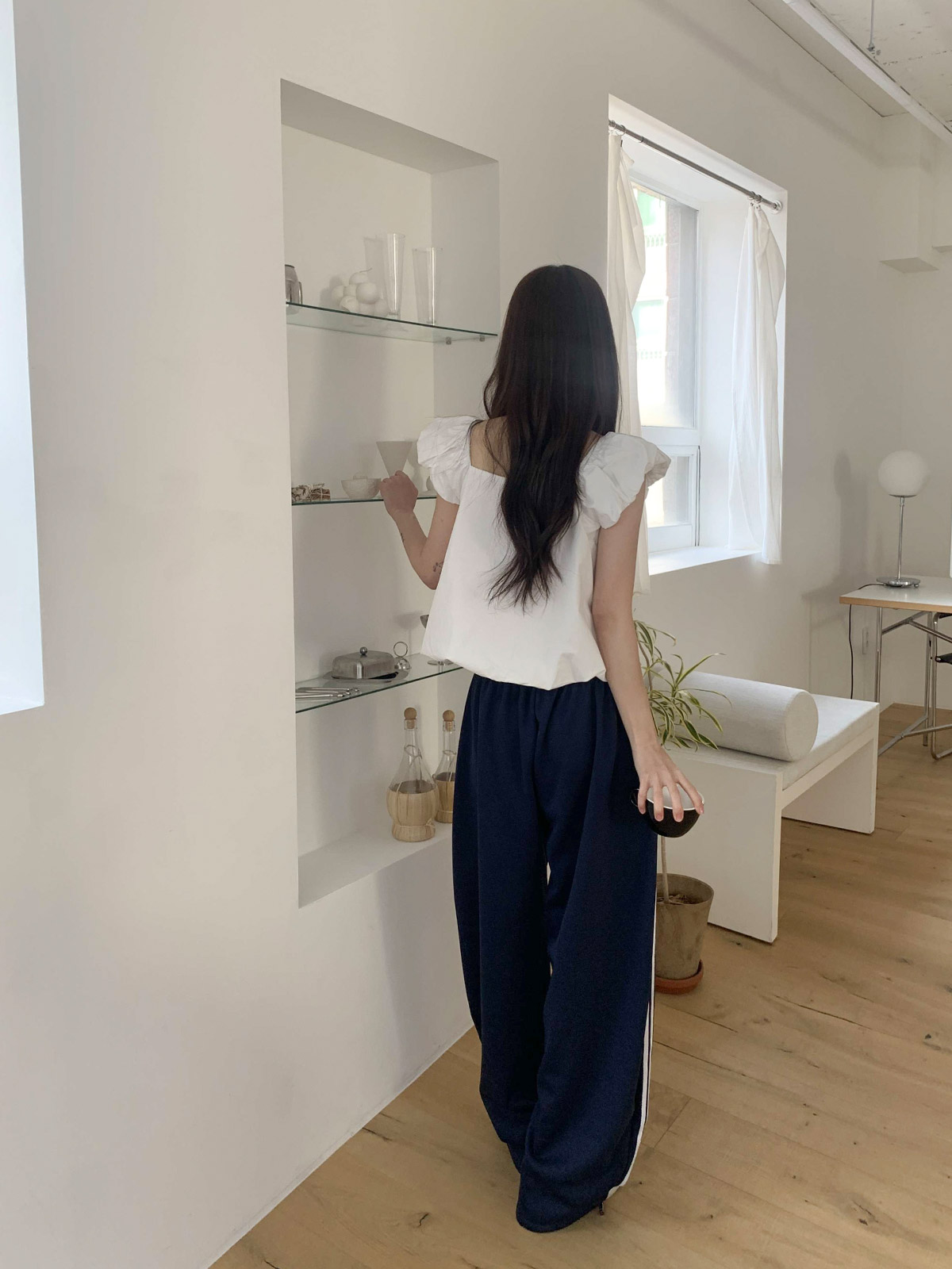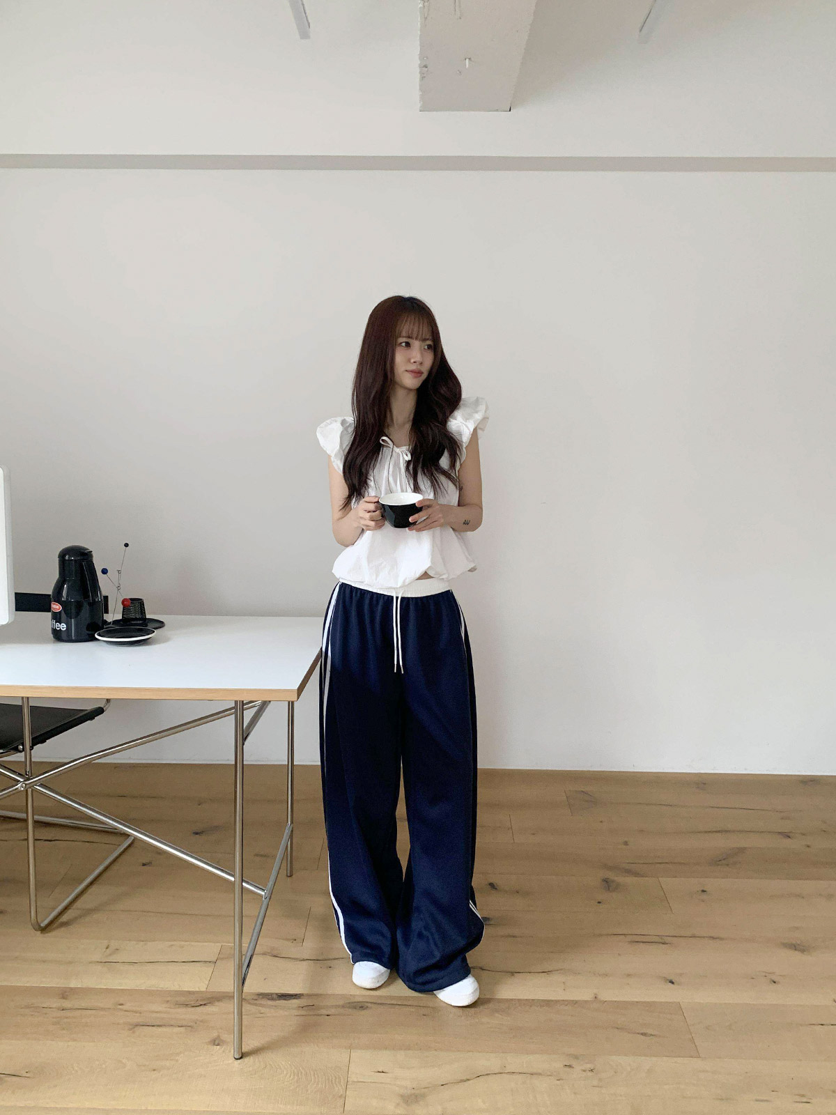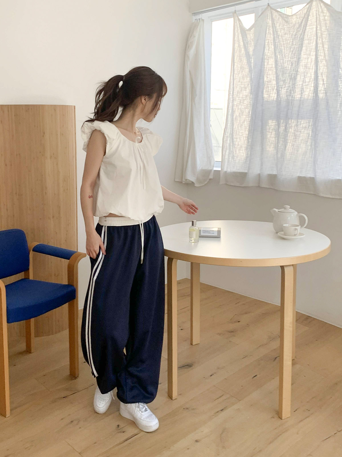 PT15714K5C-케로한 배색 라인 와이드 코튼 밴딩 팬츠