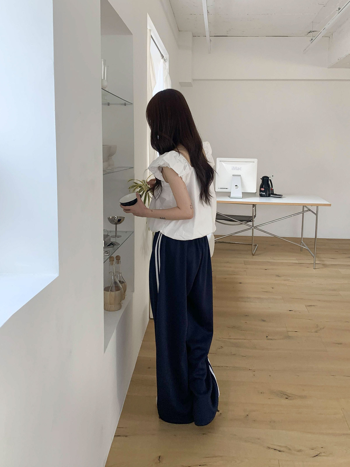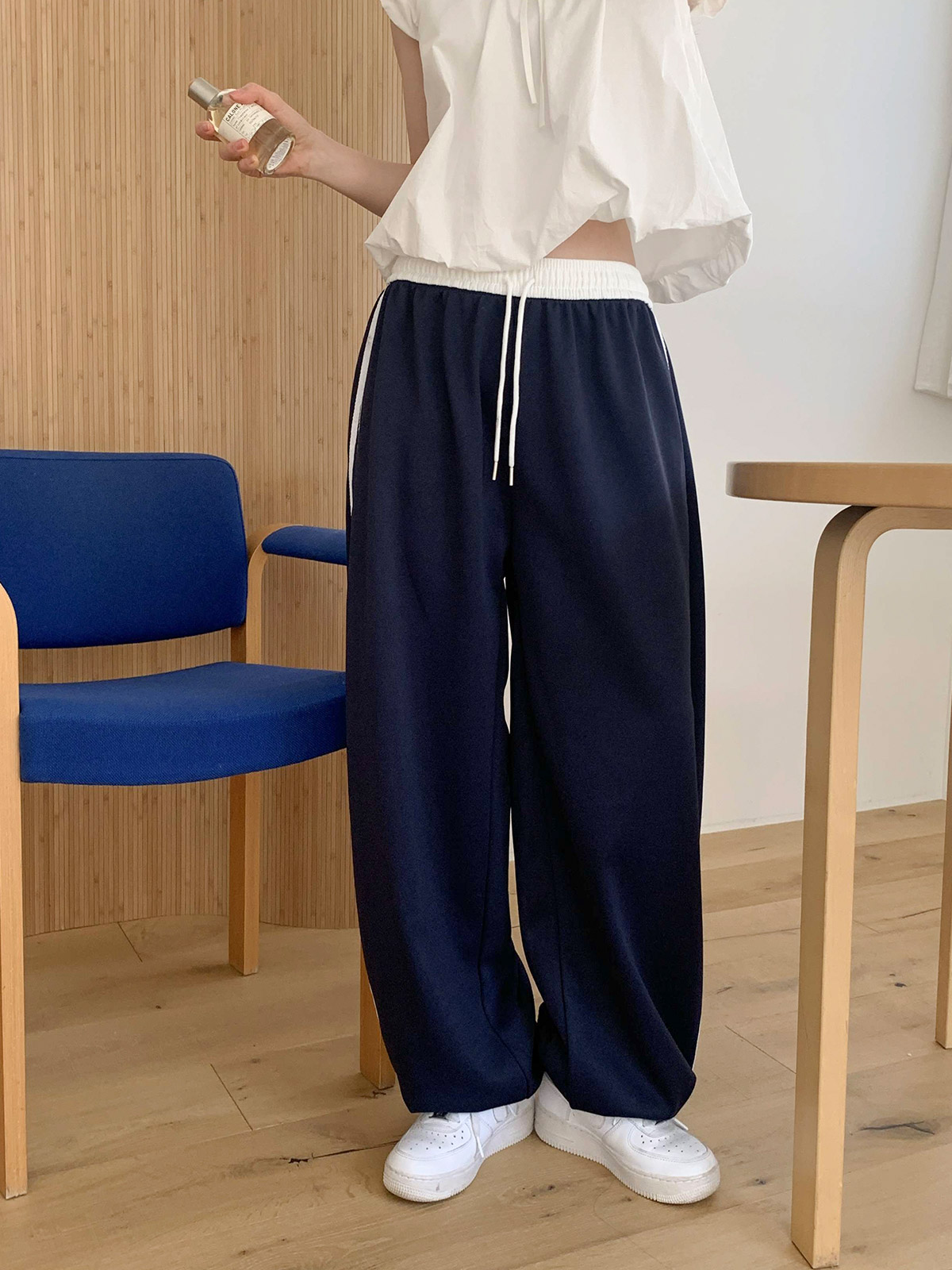 [ PT15714K5C-케로한 배색 라인 와이드 코튼 밴딩 팬츠 ]