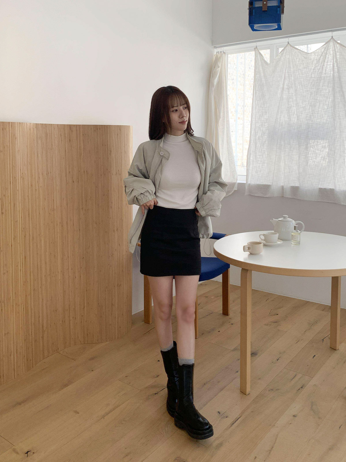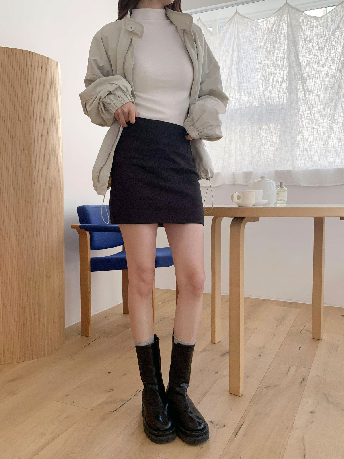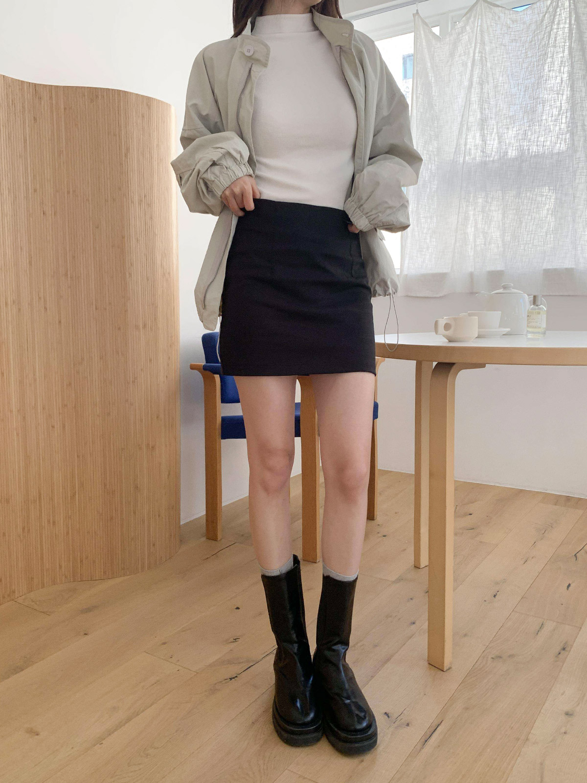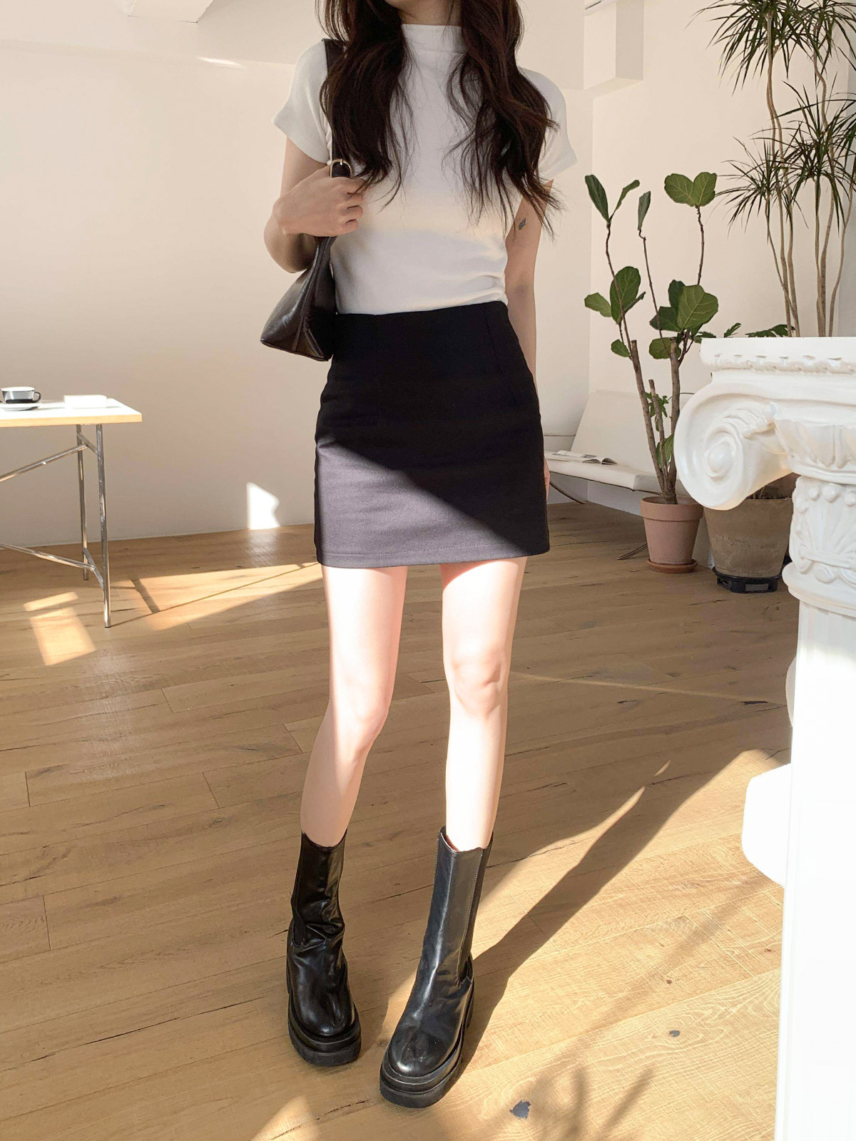 부드러운 터치감의 깔끔하게 떨어지는 H라인 핏의 미니스커트