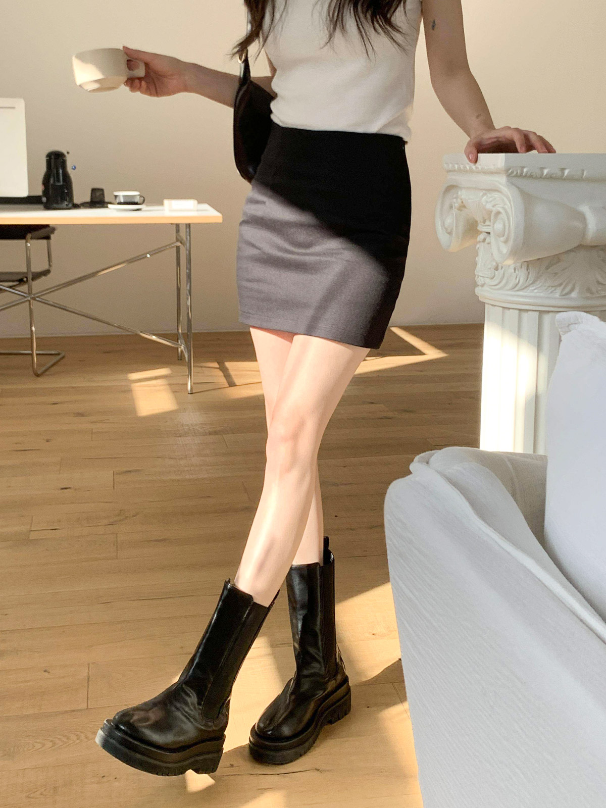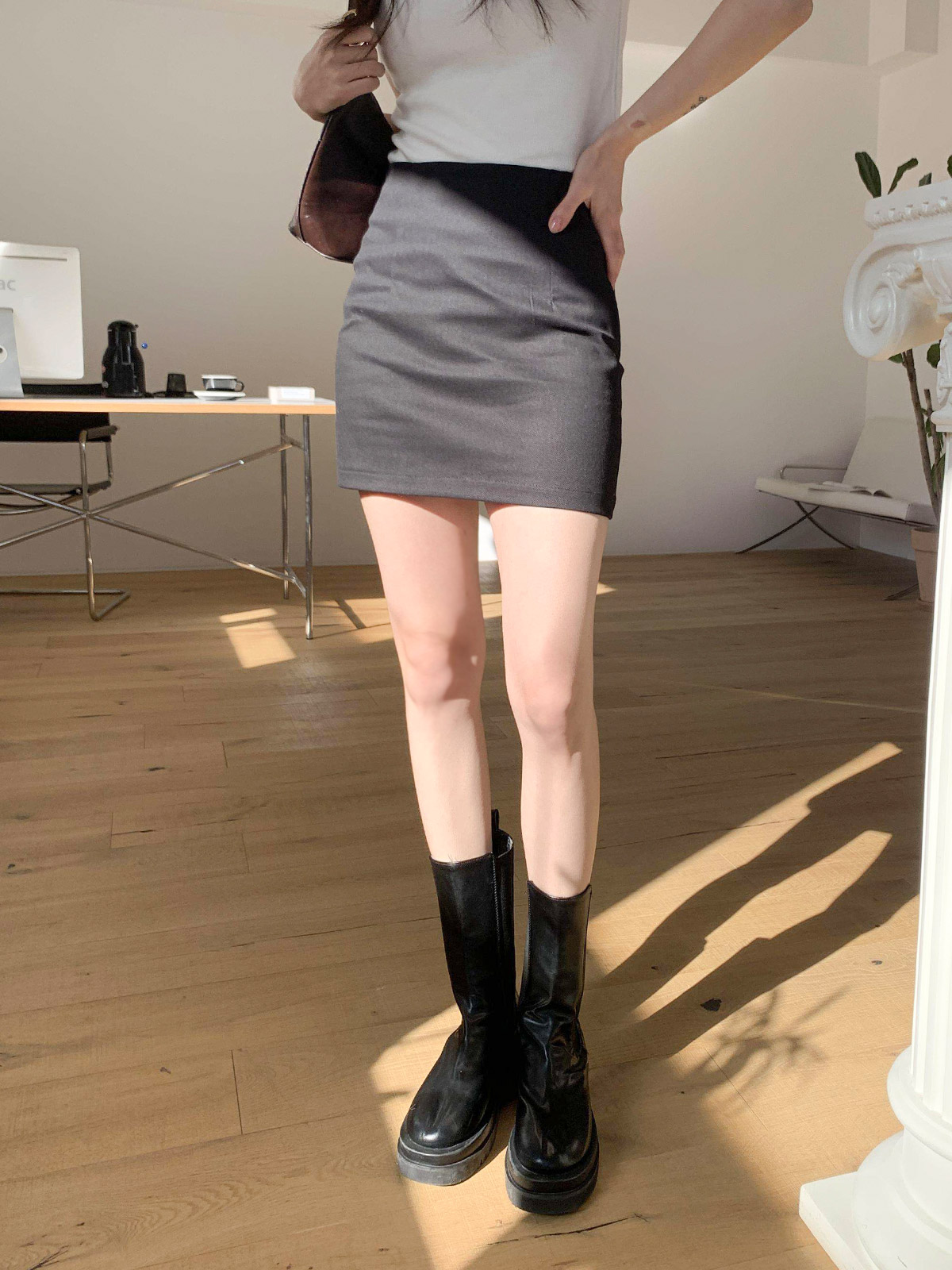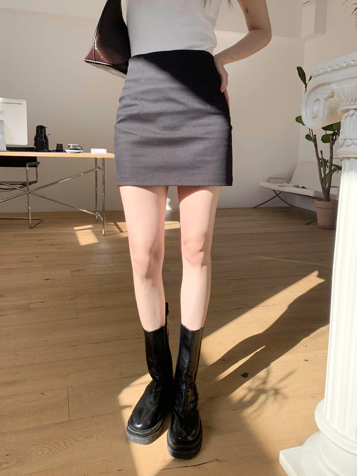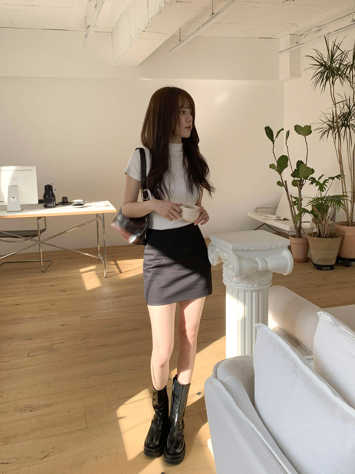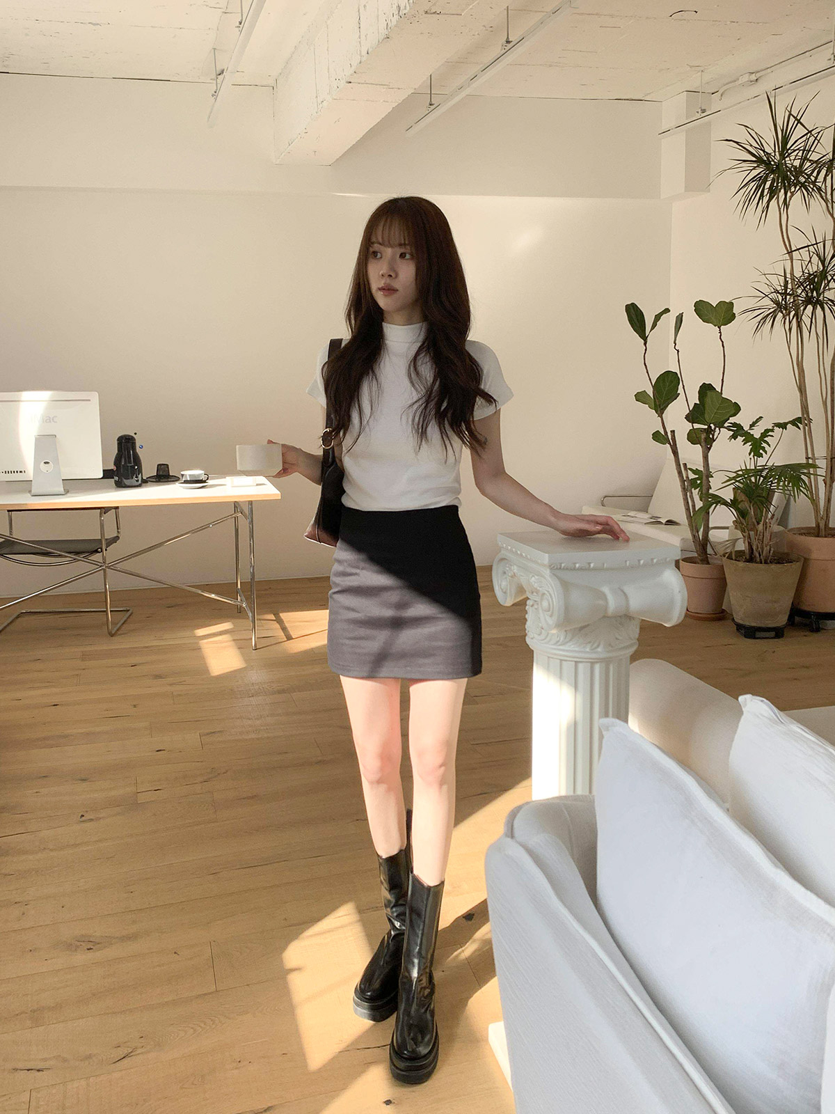 부드러운 터치감의 깔끔하게 떨어지는 H라인 핏의 미니스커트