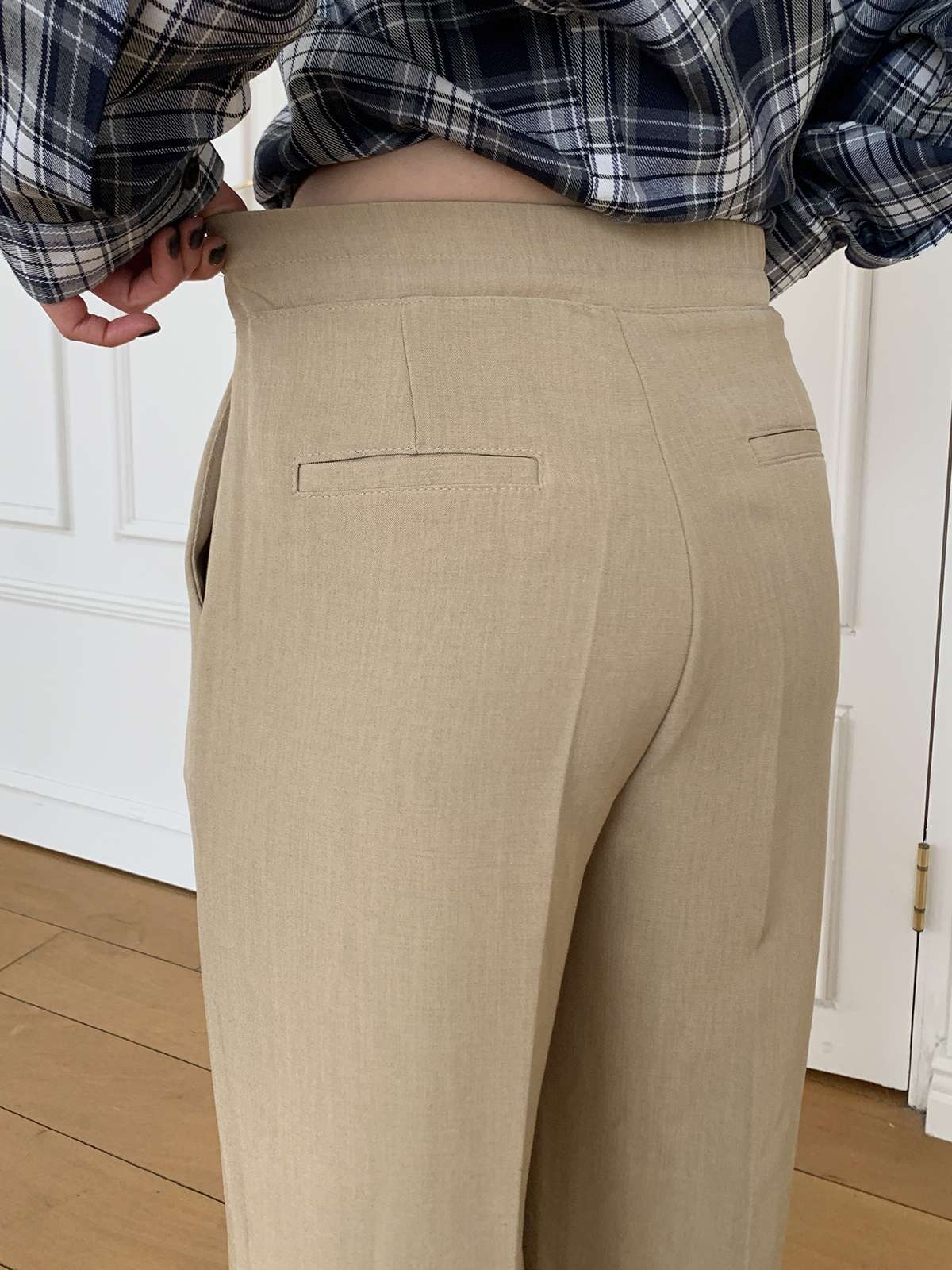PT15722K5C-라르푸 히든 버튼 뒷밴딩 세미 와이드 슬랙스
