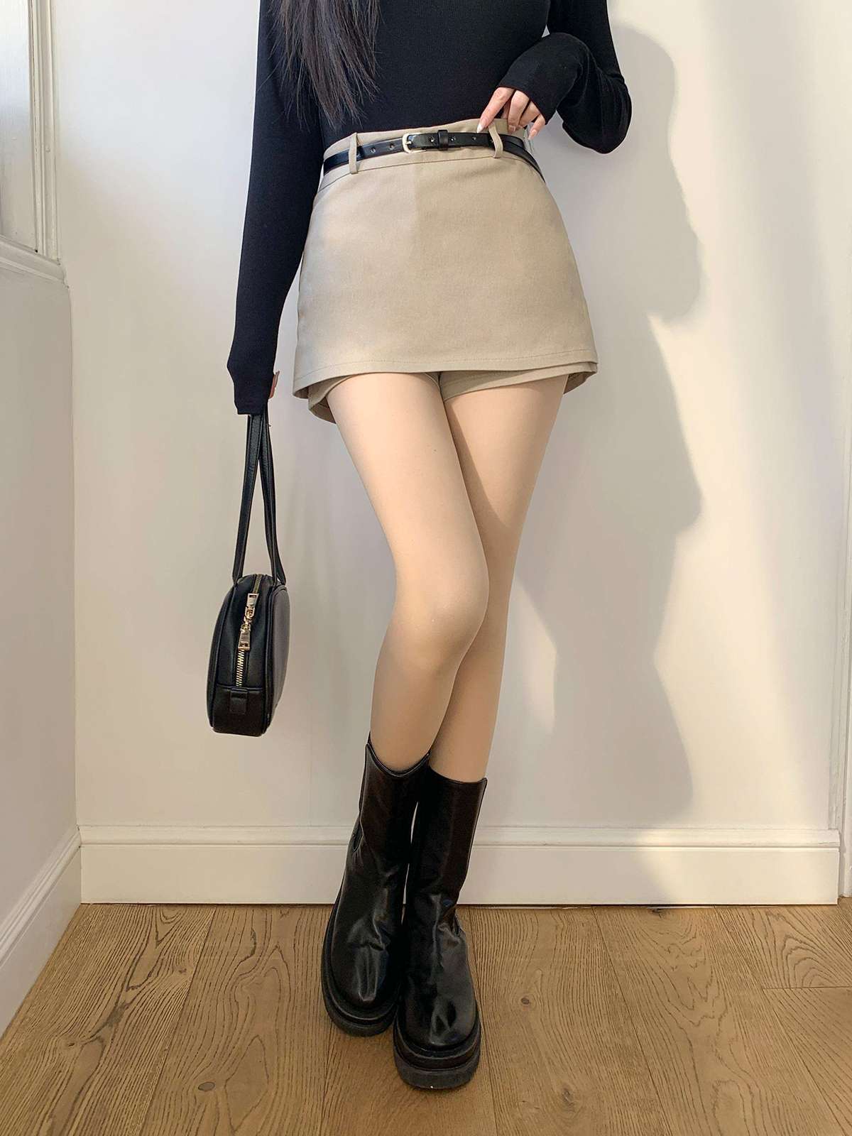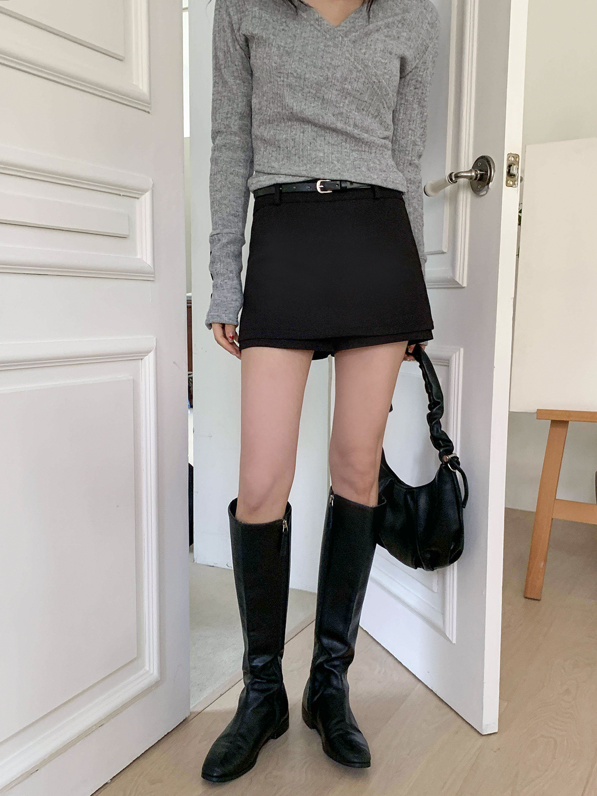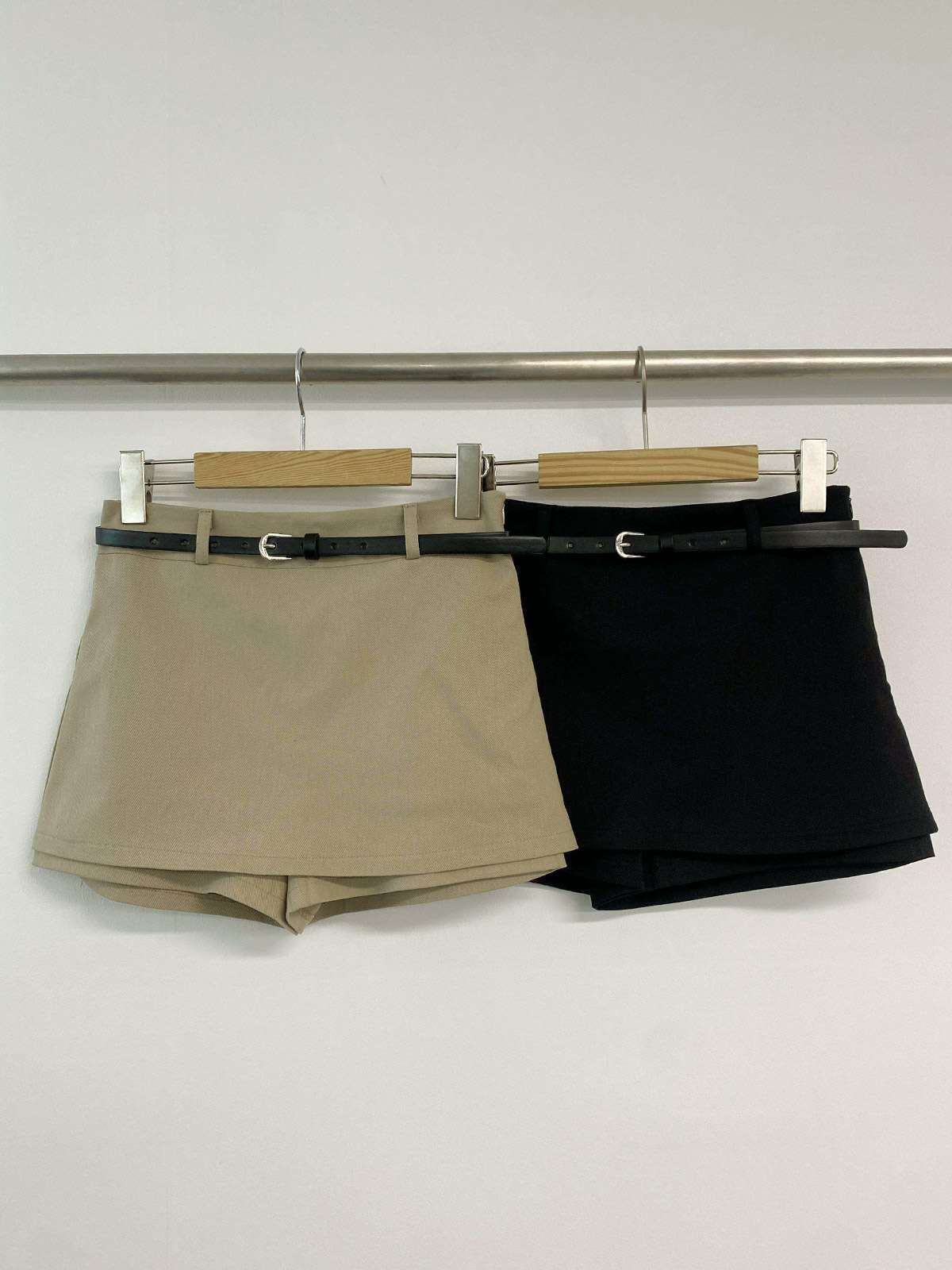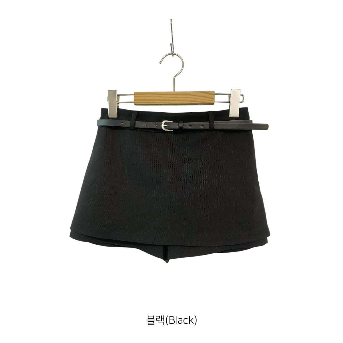 깔끔한 디자인의 미니 스커트와 벨트가 세트인 치마바지 미니스커트
