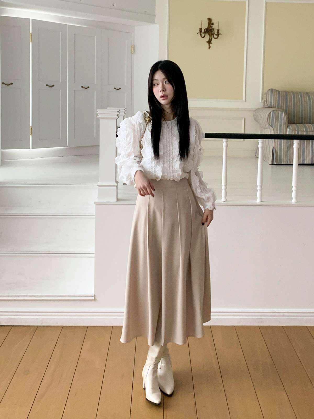 [ SK7610K5C-세린드 플리츠 플레어 롱 스커트 ]