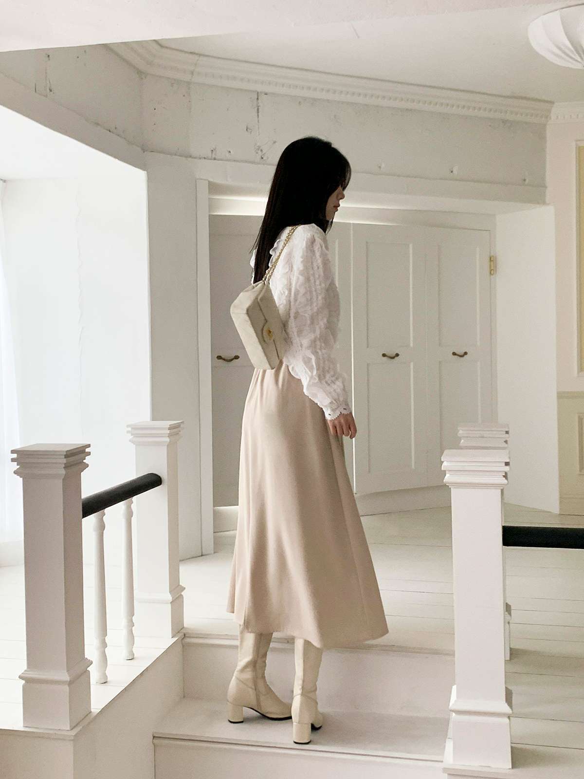 정갈한 플리츠 라인으로 우아한 실루엣을 완성해주며