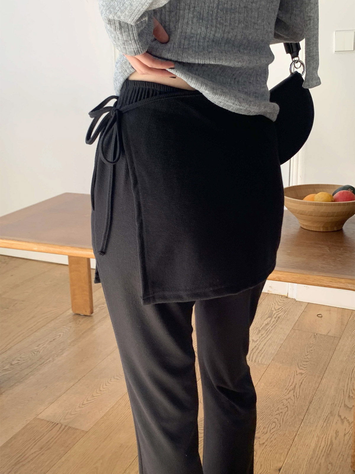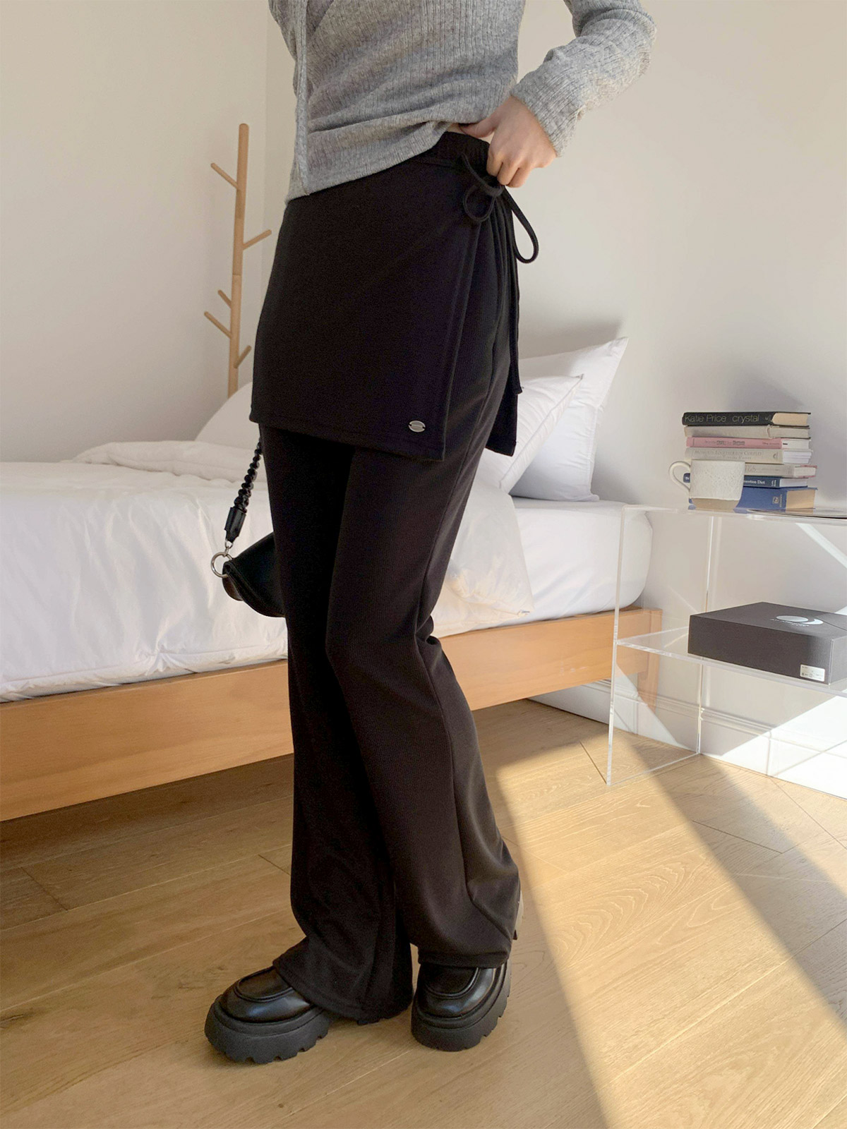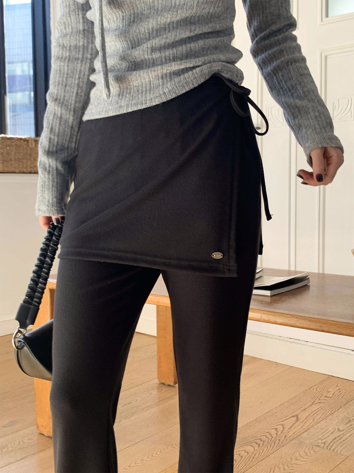 [ PT15731K61-크키로 펜던트 랩 스커트 레이어드 부츠컷 팬츠 ]