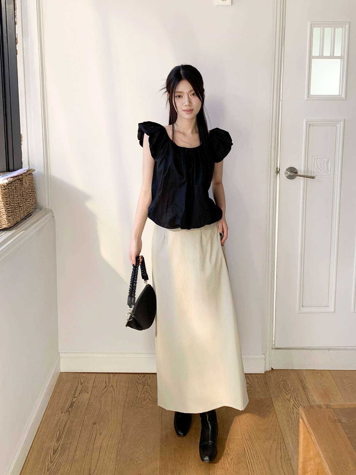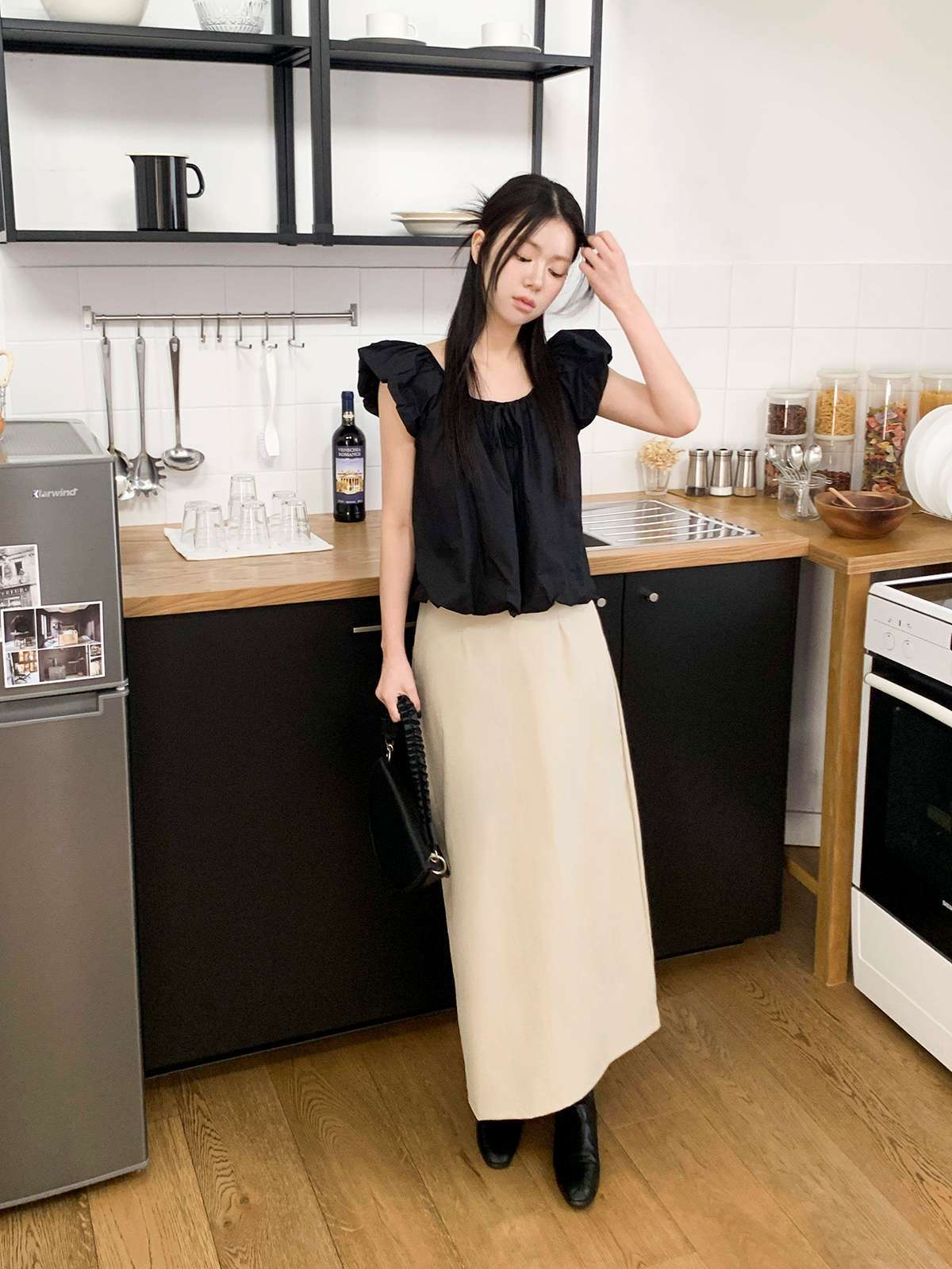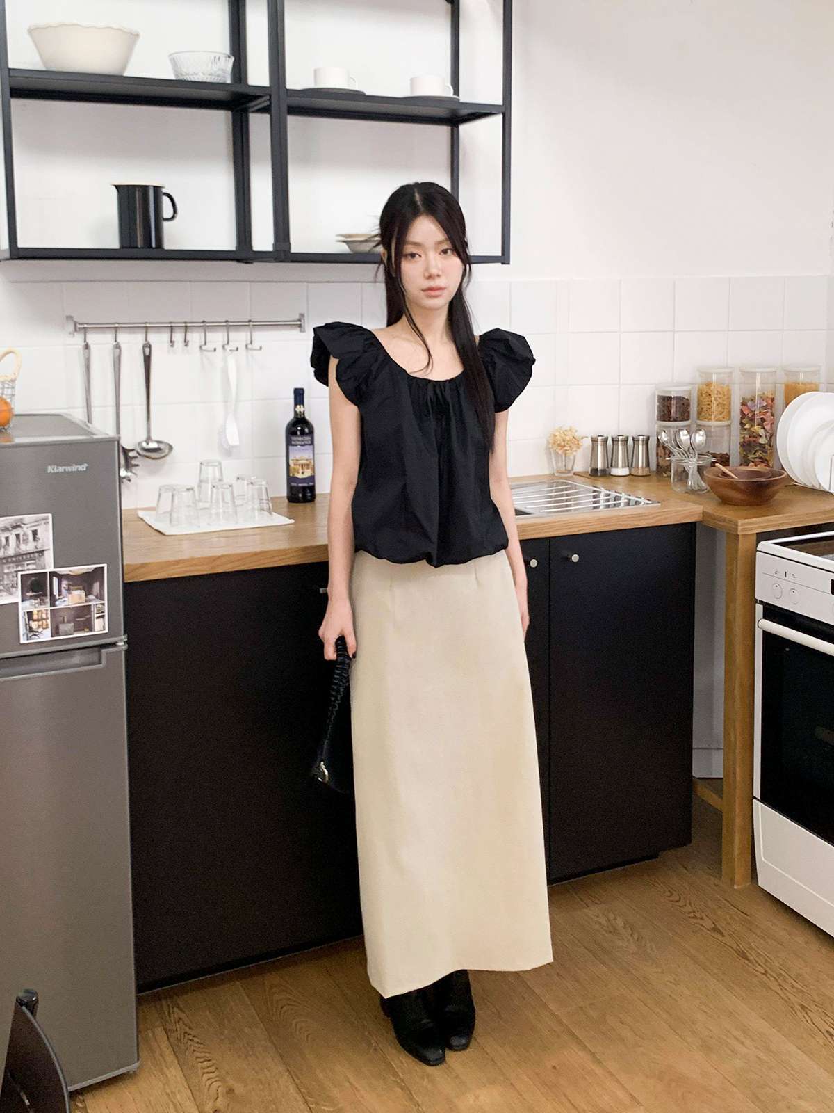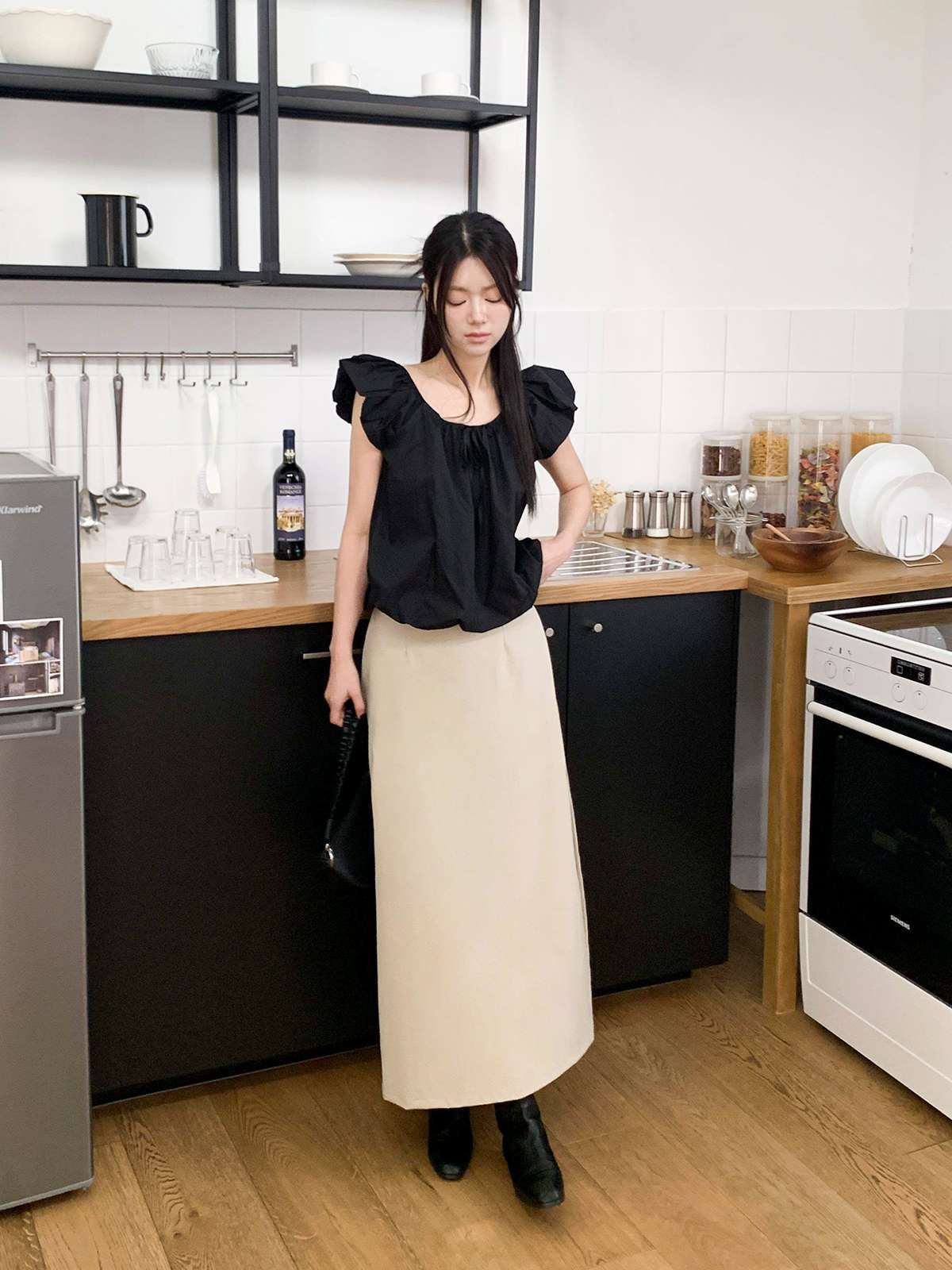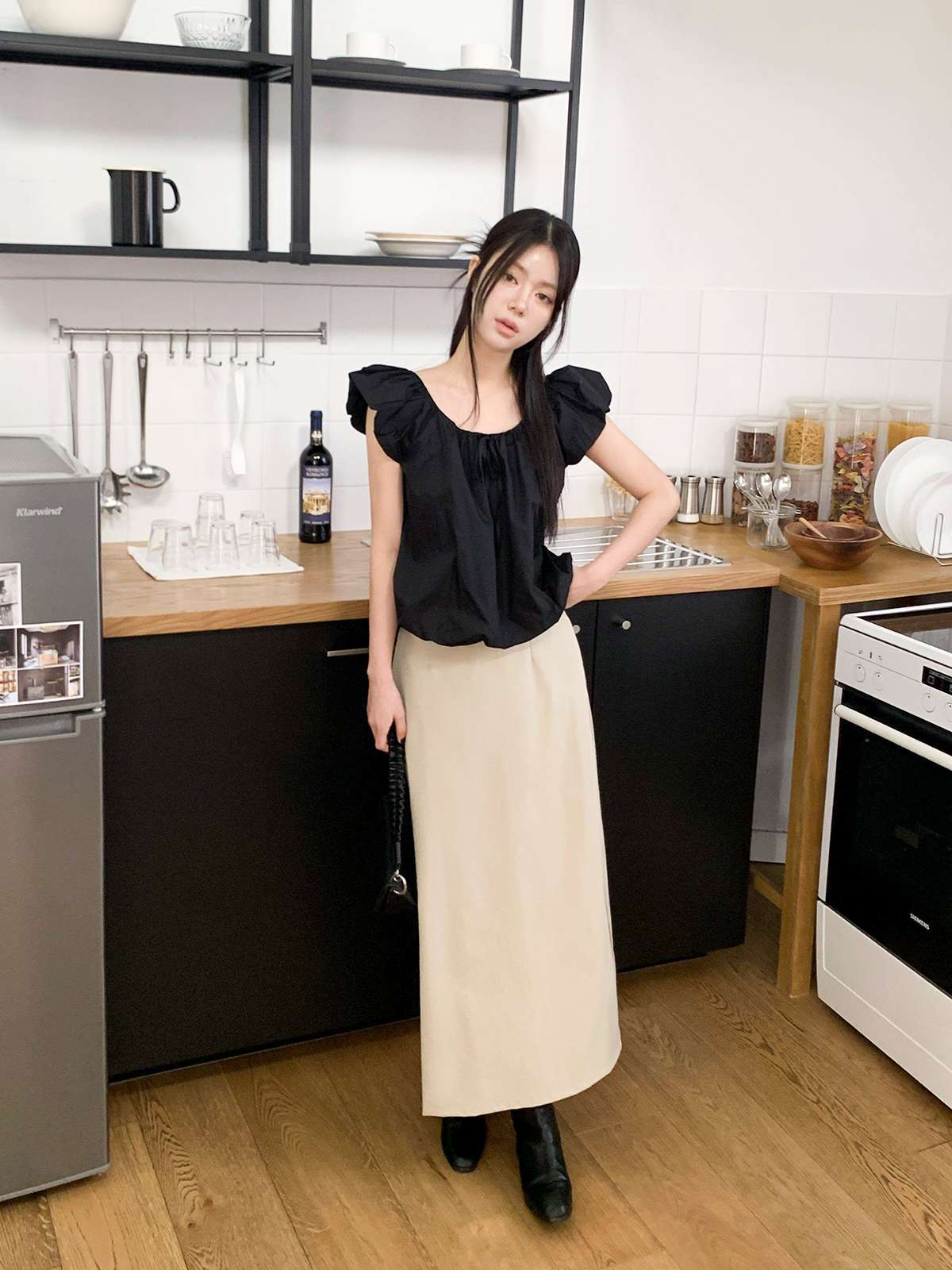[ SK7614K61-피파으 하이웨스트 뒷트임 H라인 롱스커트 ]