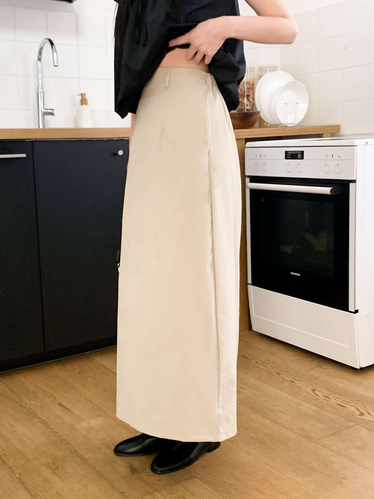 군더더기 없이 매끈하게 떨어지는 실루엣에 뒷트임 디테일을 더해 활동성과 세련미를 모두 갖춘 롱 스커트