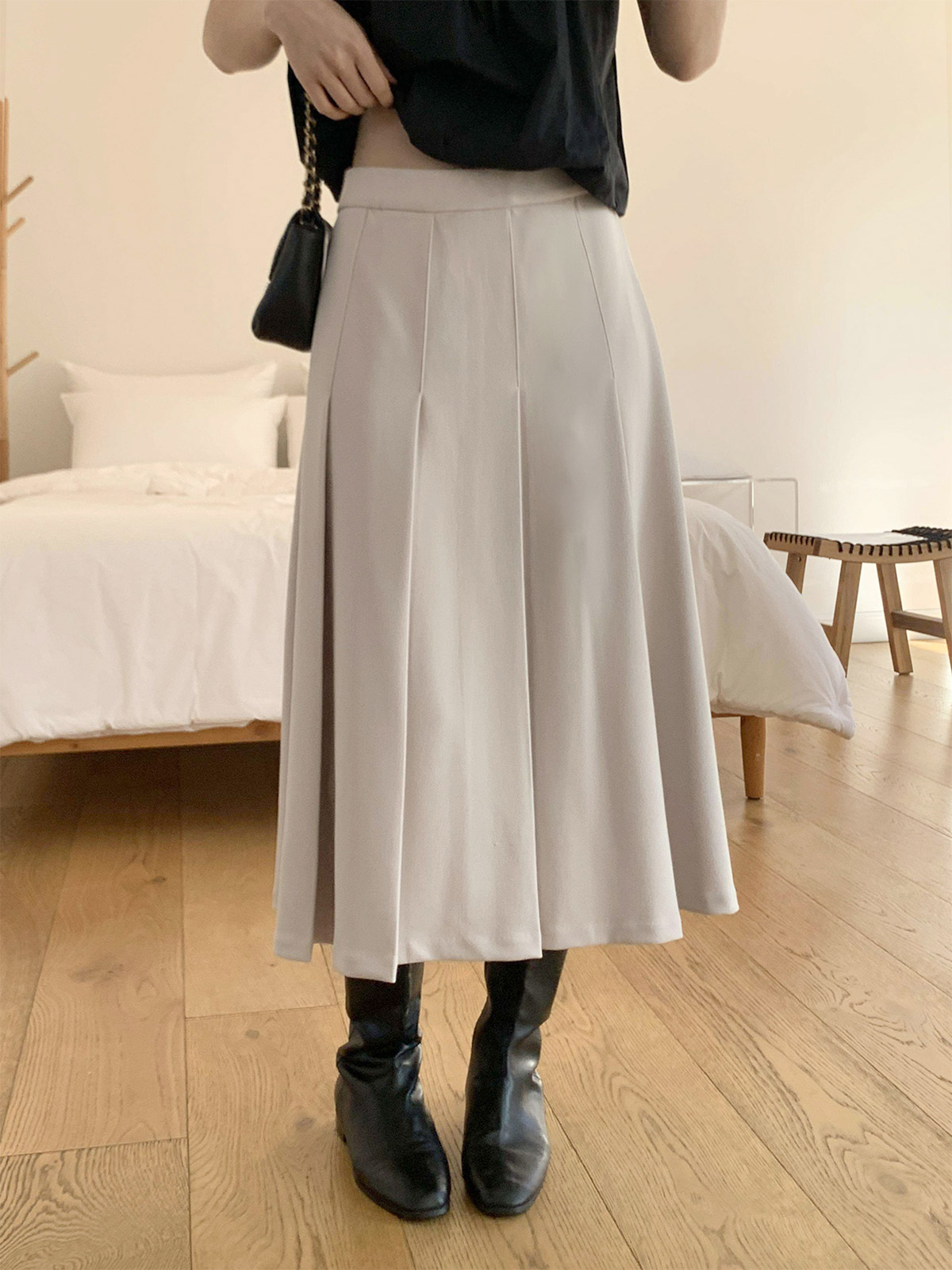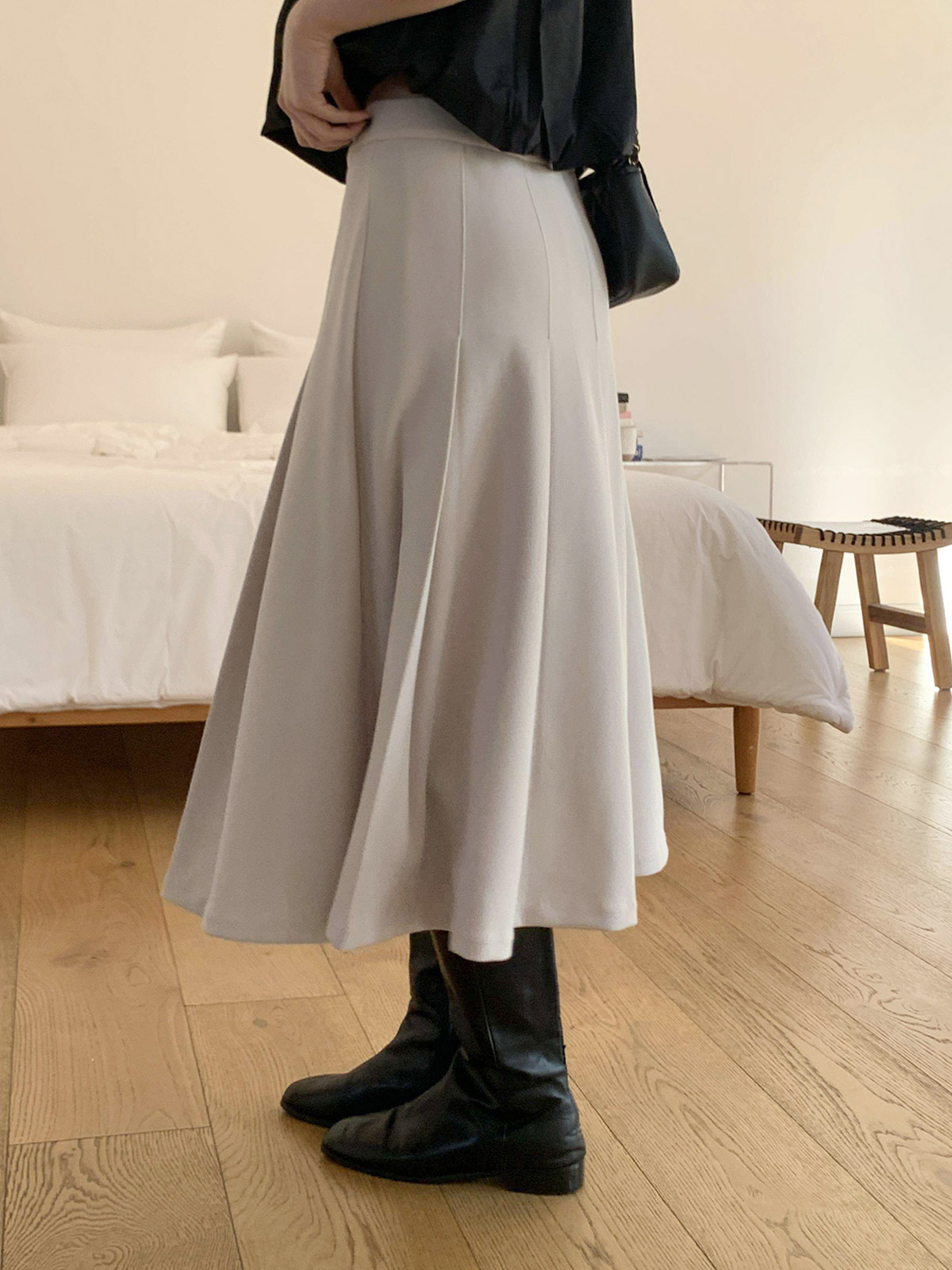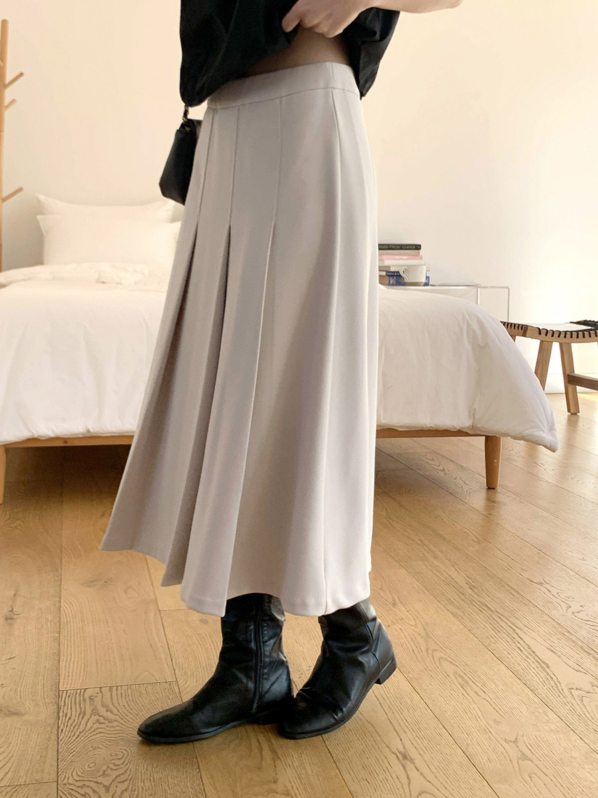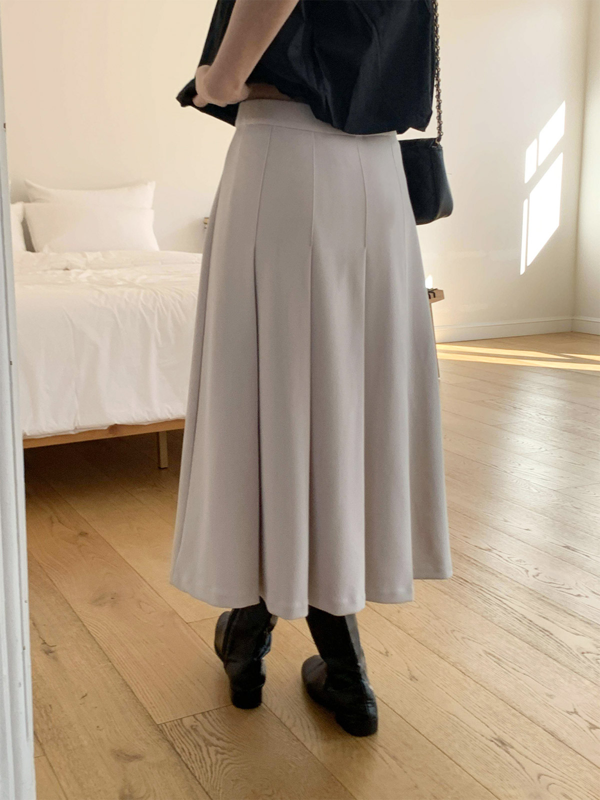 SK7615K61-세파으 플리츠 플레어 밴딩 롱스커트