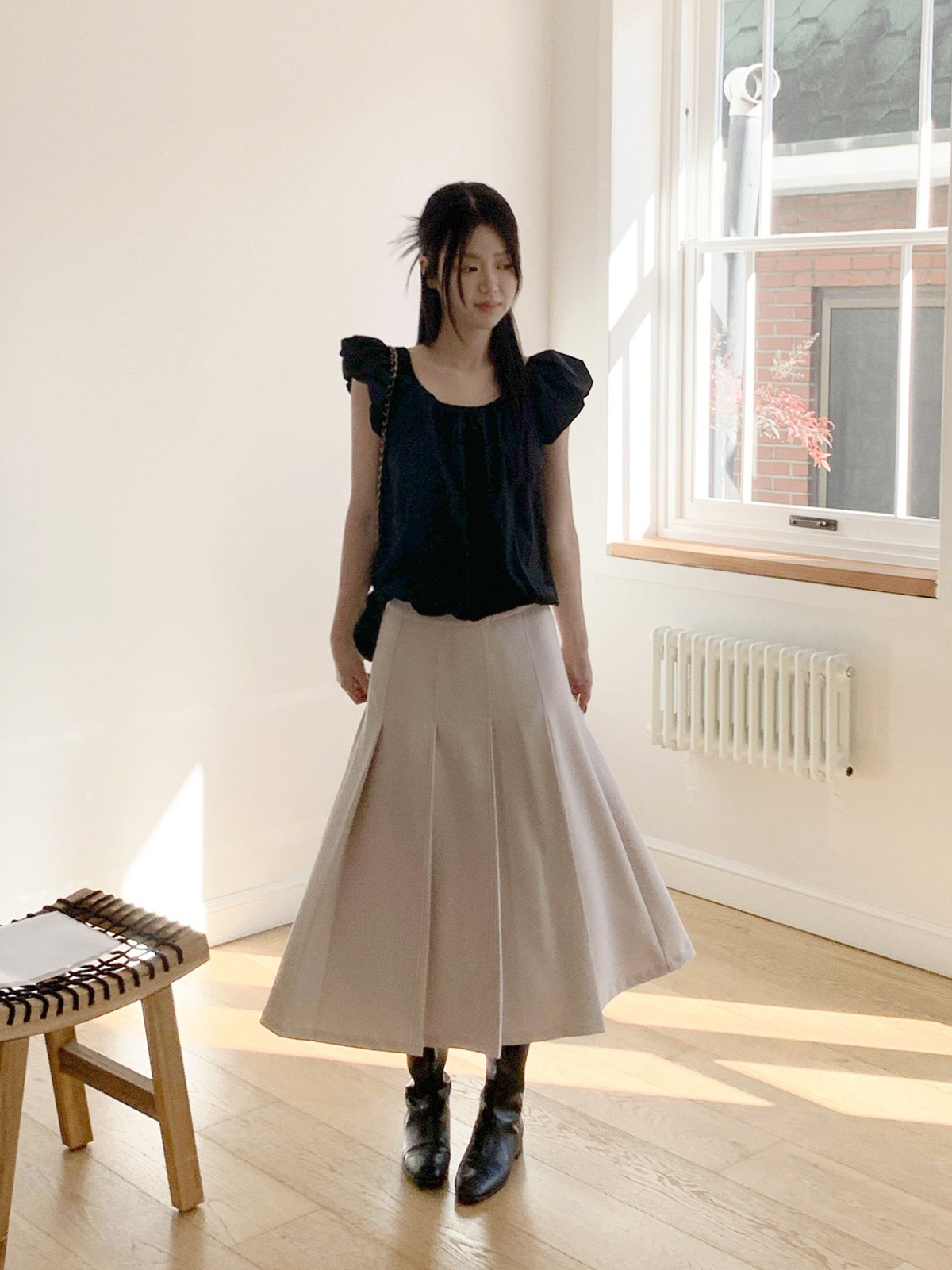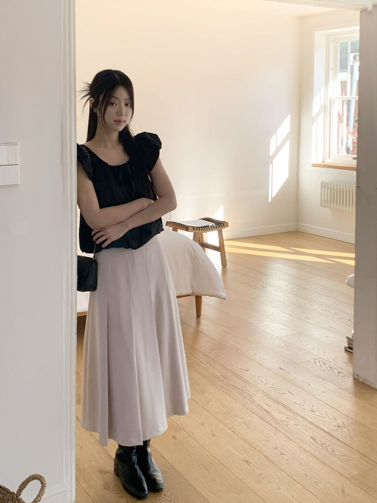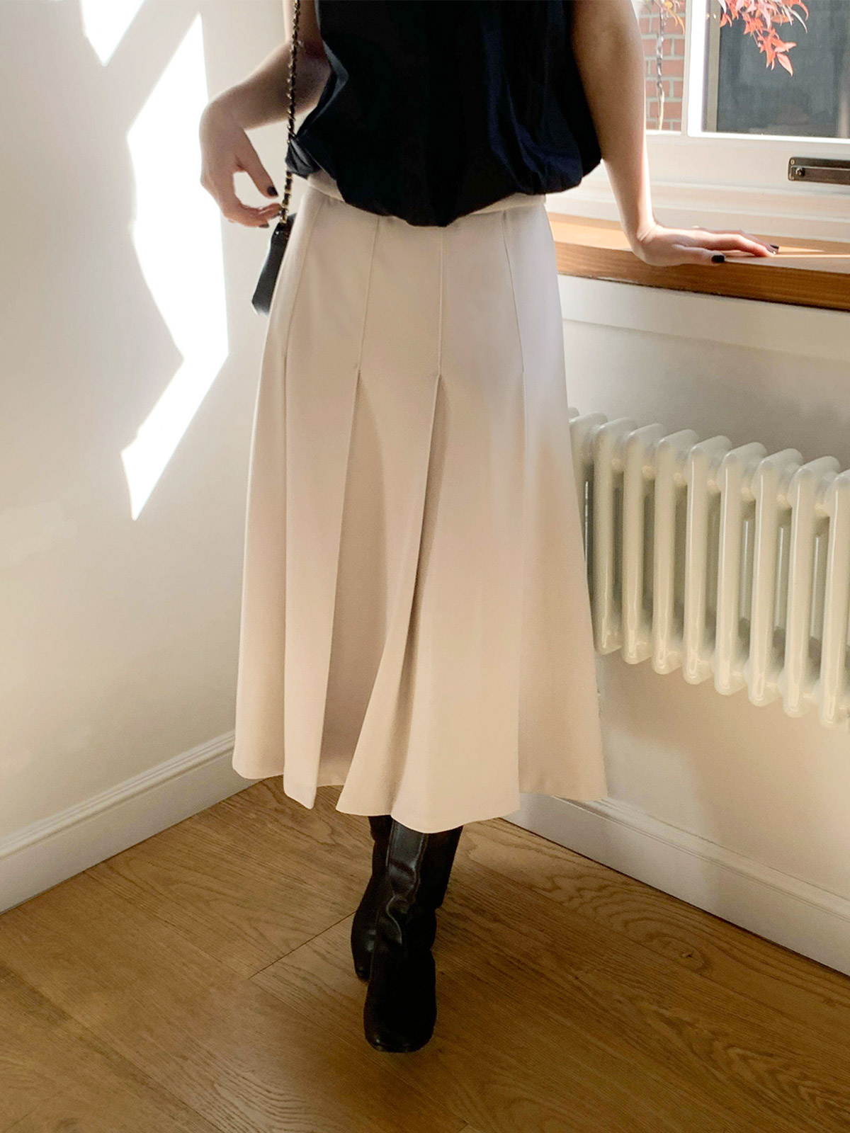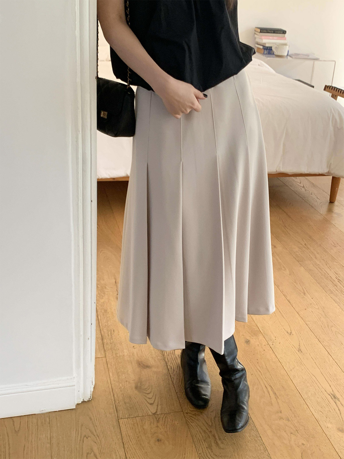 SK7615K61-세파으 플리츠 플레어 밴딩 롱스커트