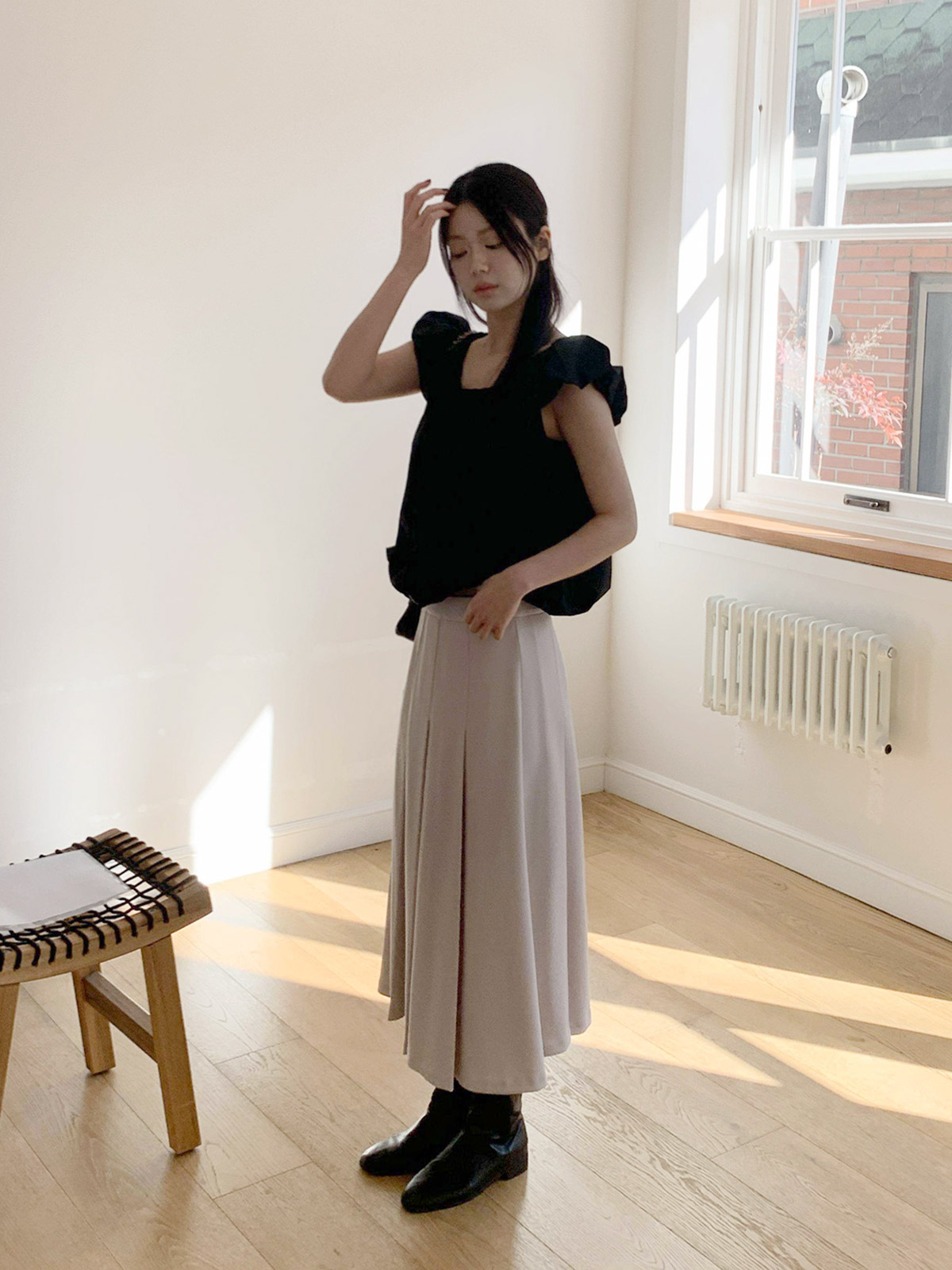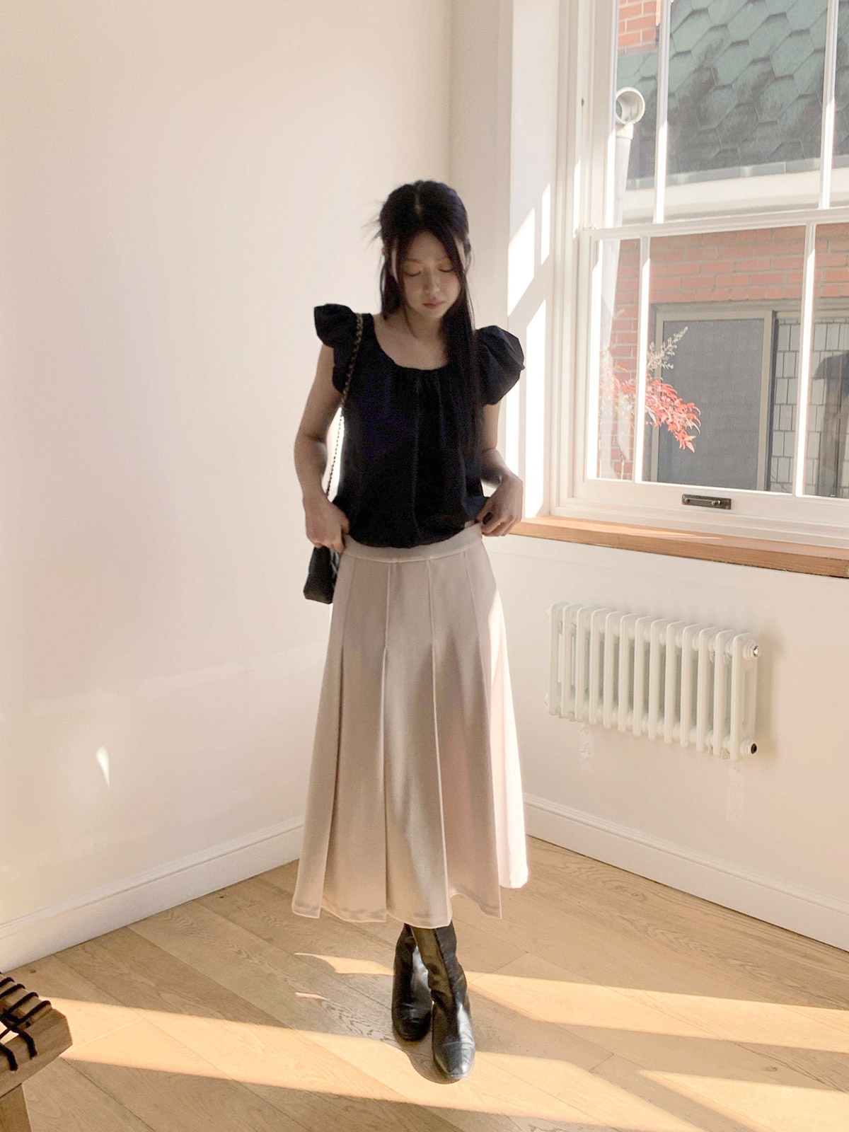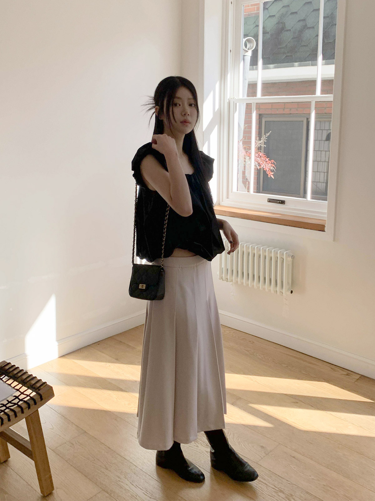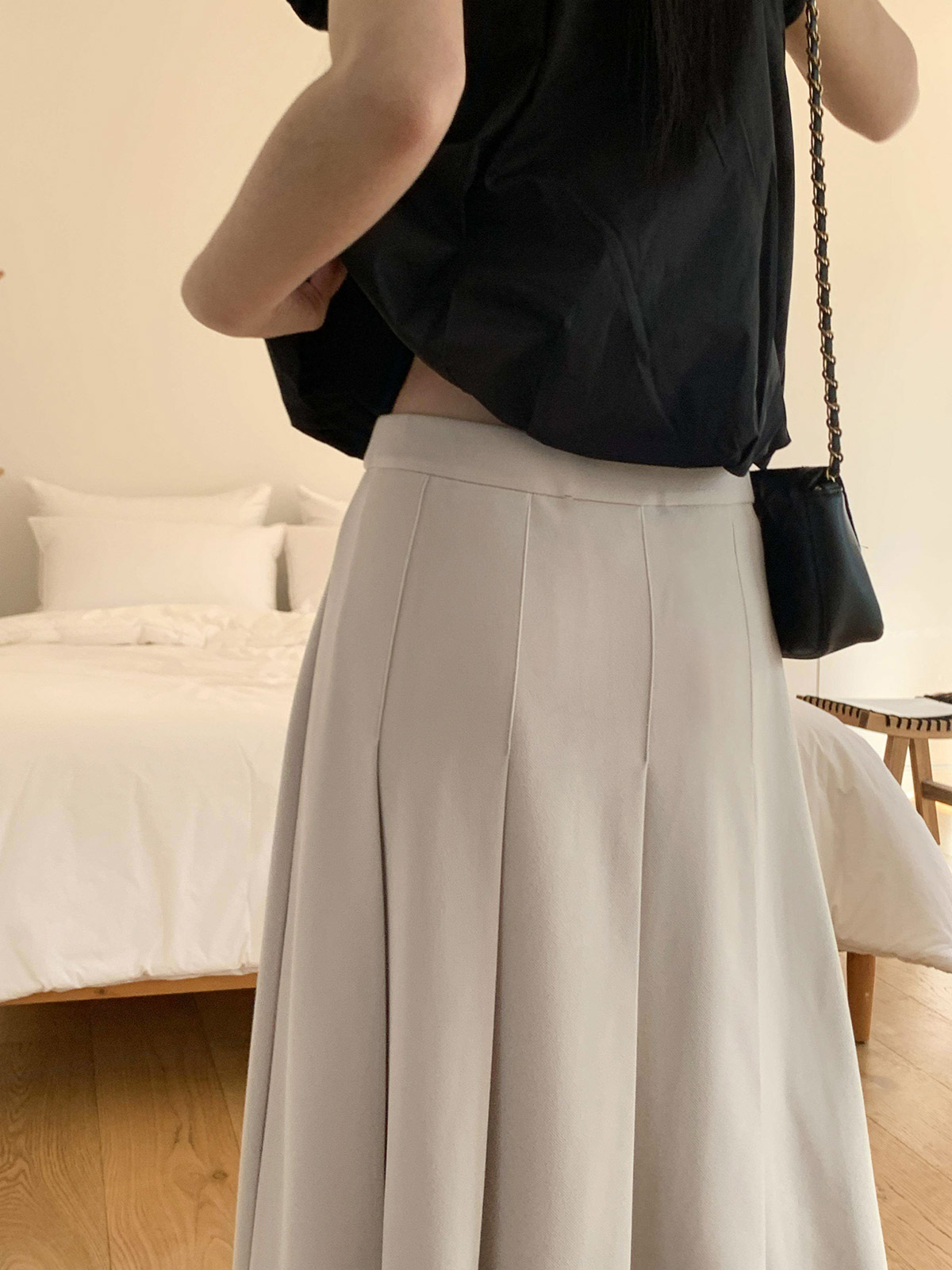 SK7615K61-세파으 플리츠 플레어 밴딩 롱스커트