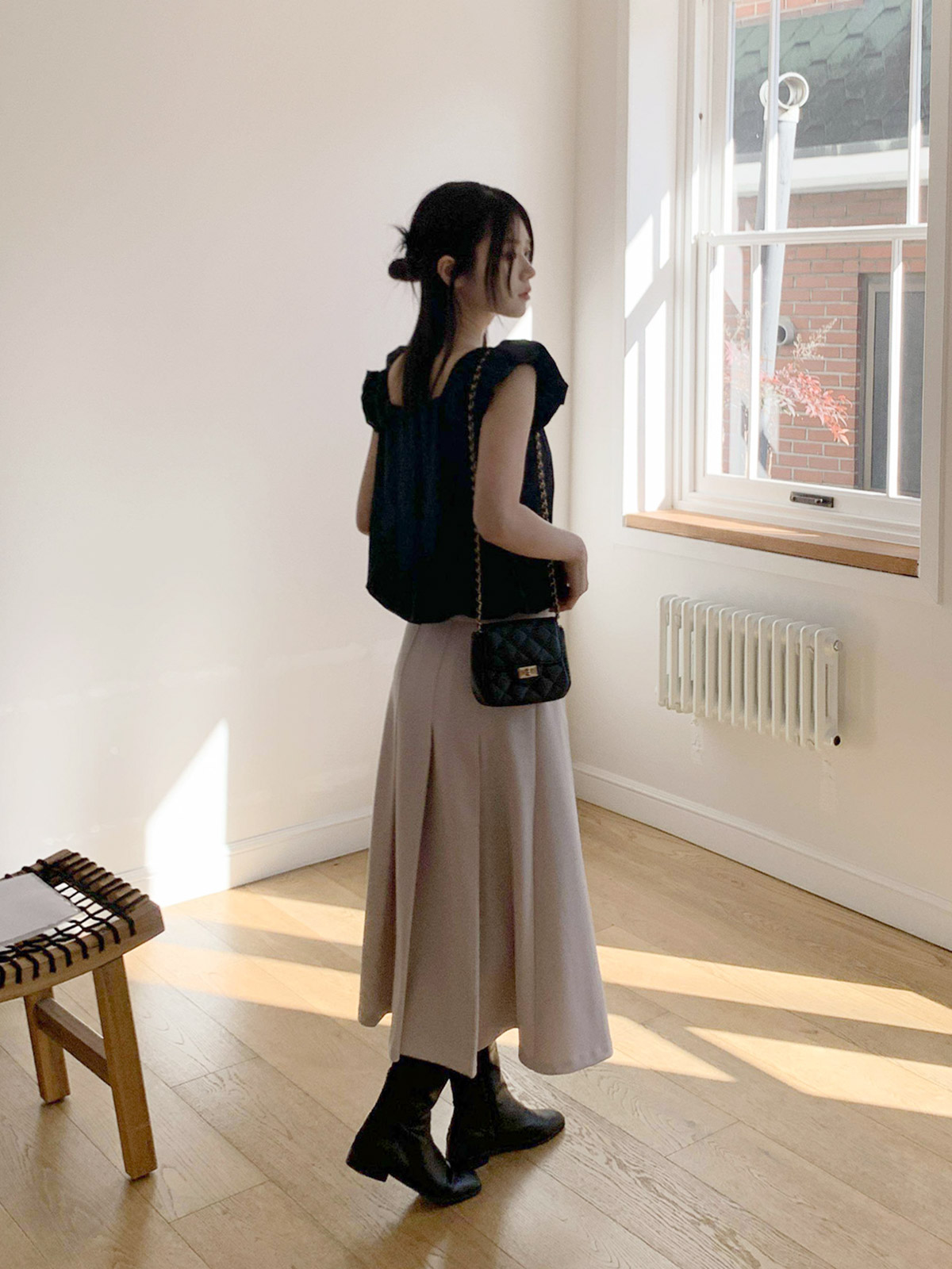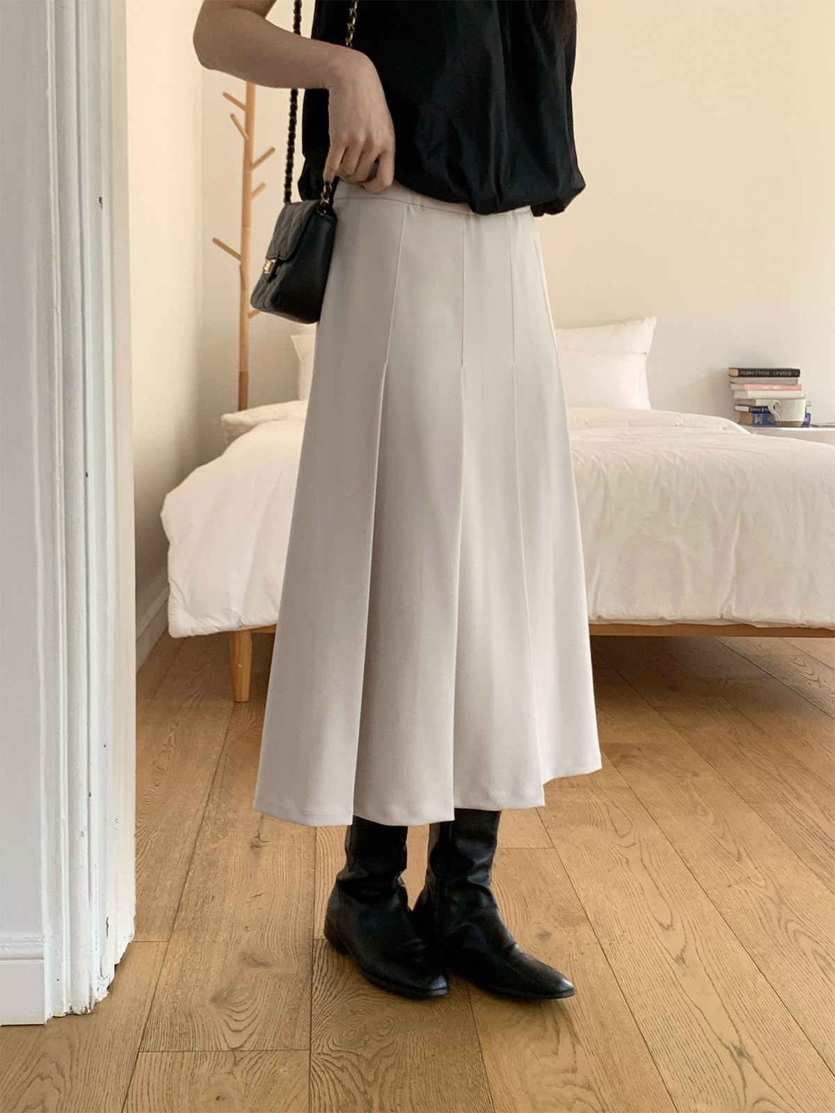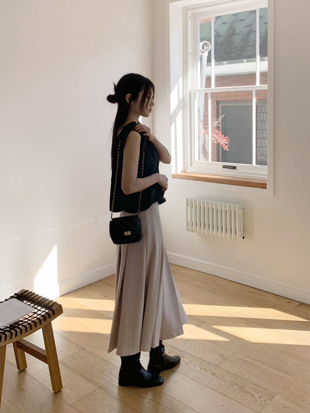 자연스럽게 퍼지는 플레어 라인이 사랑스러운 무드를 연출해주는 데일리 롱스커트