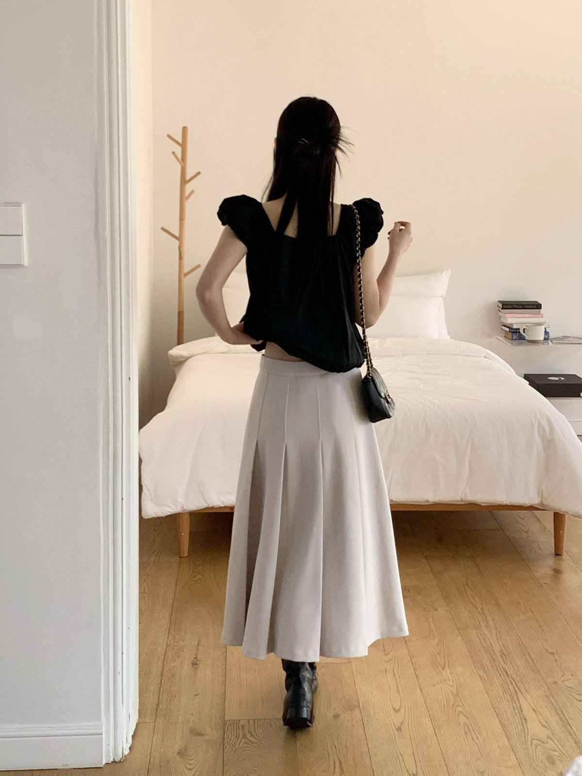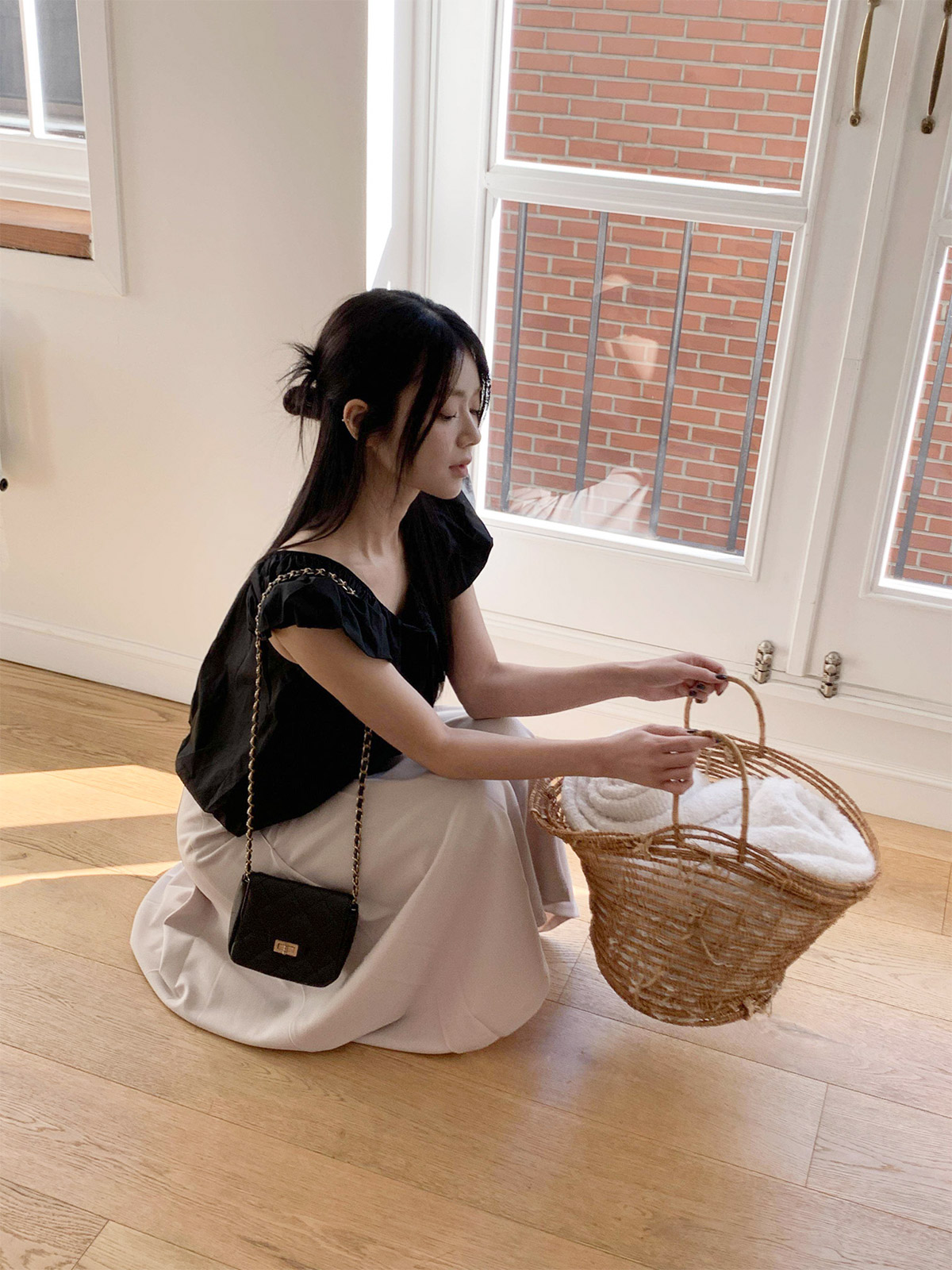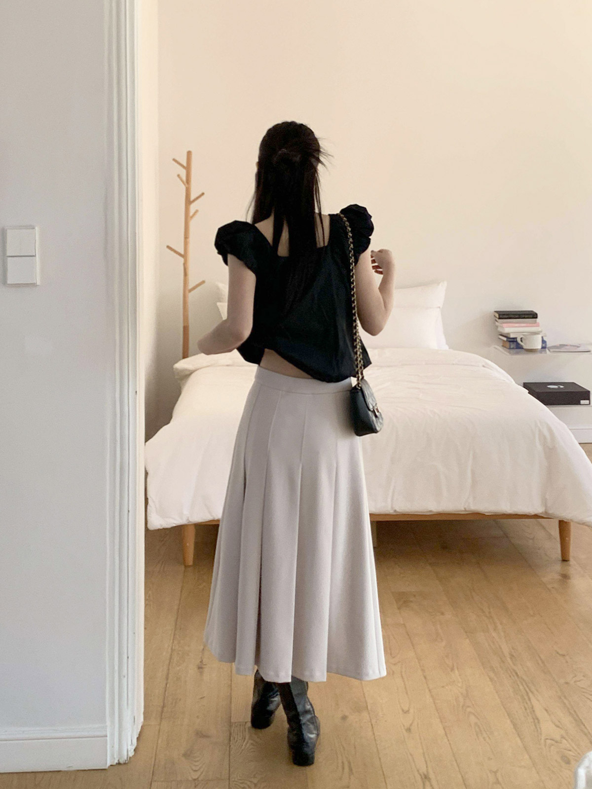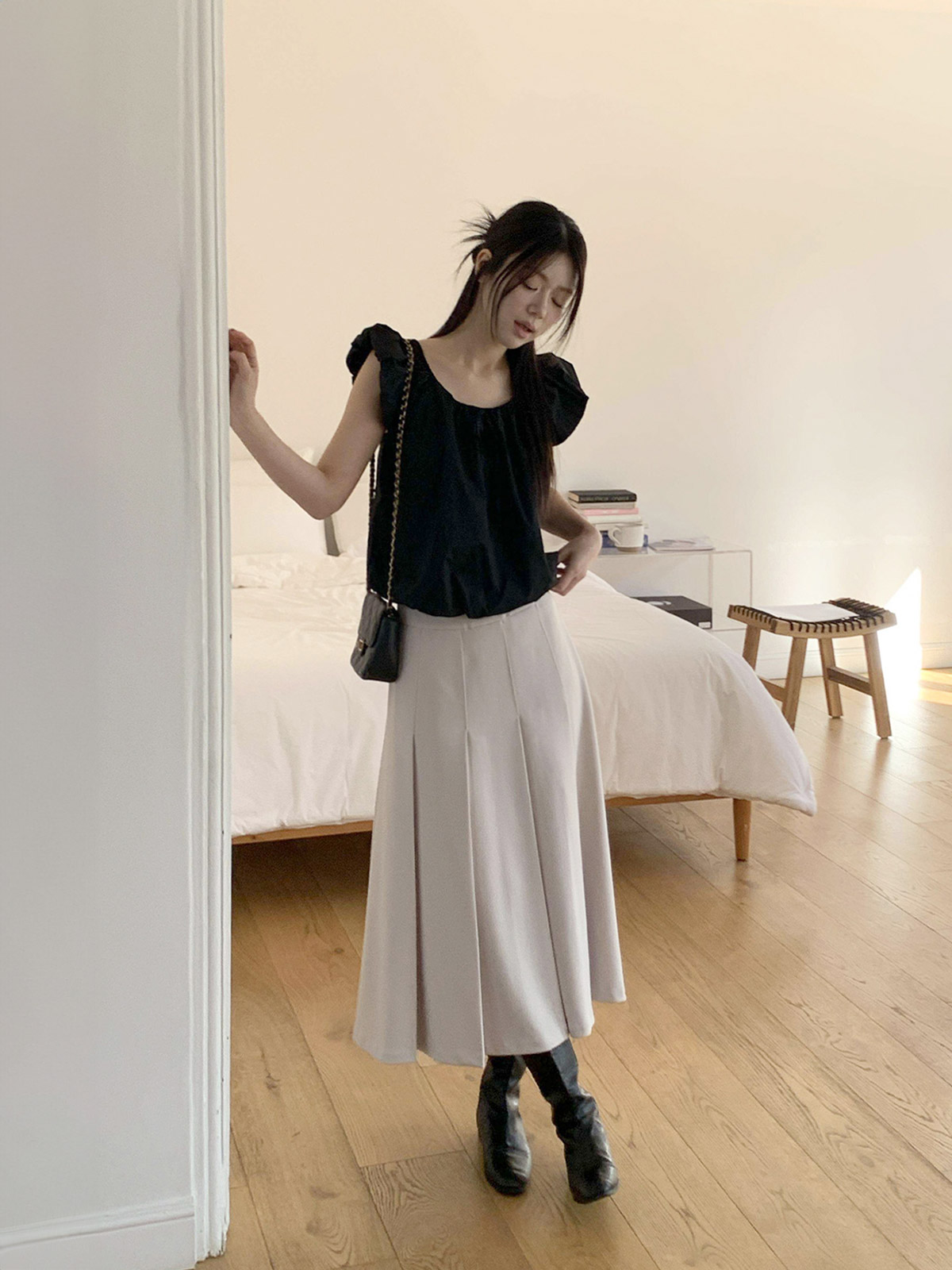 자연스럽게 퍼지는 플레어 라인이 사랑스러운 무드를 연출해주는 데일리 롱스커트