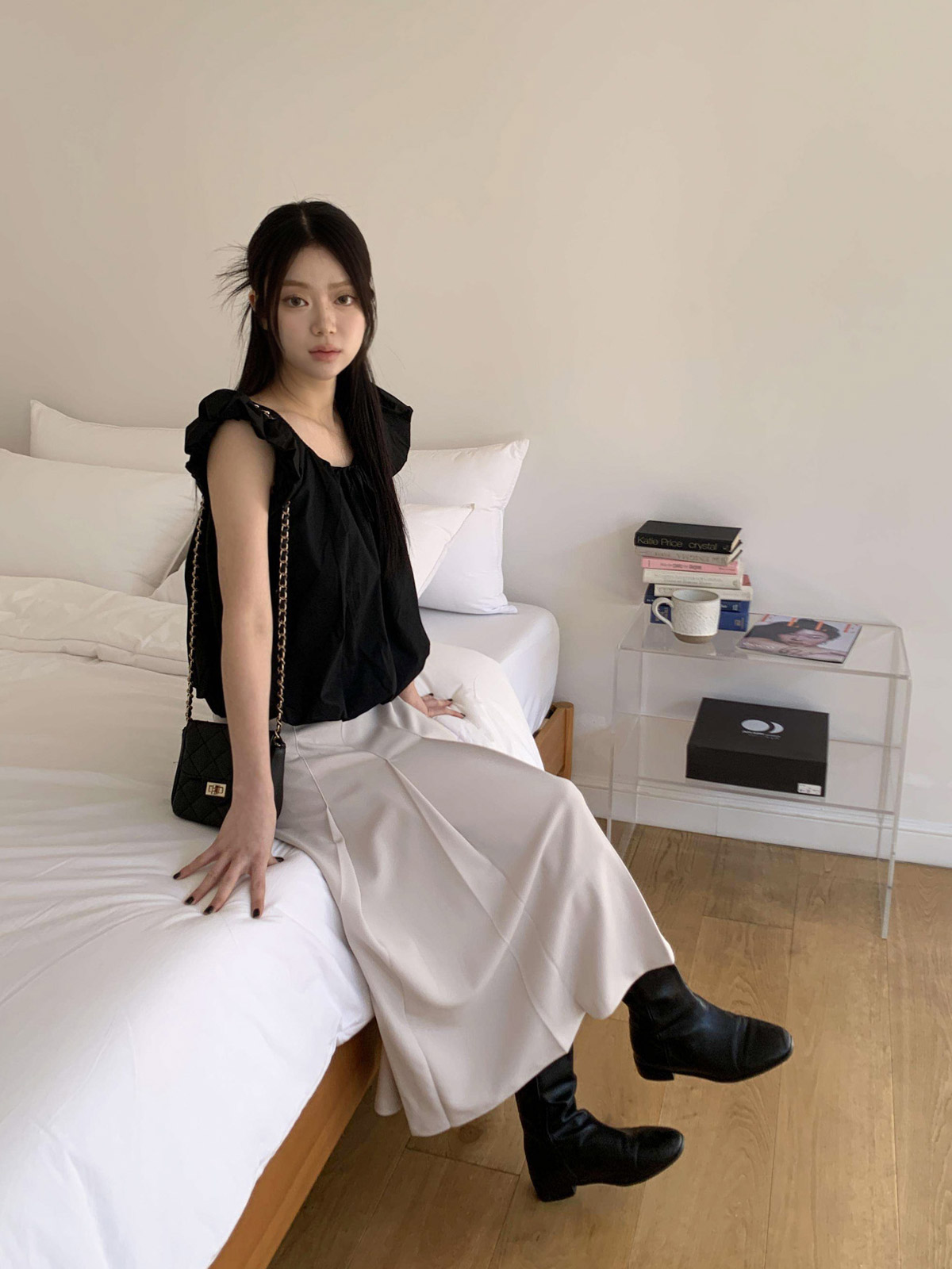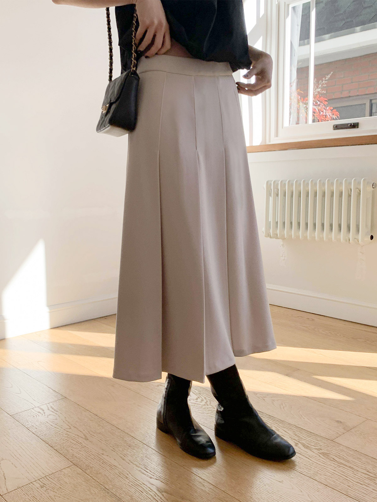 차분하고 데일리한 컬러감의 밴딩 스커트로