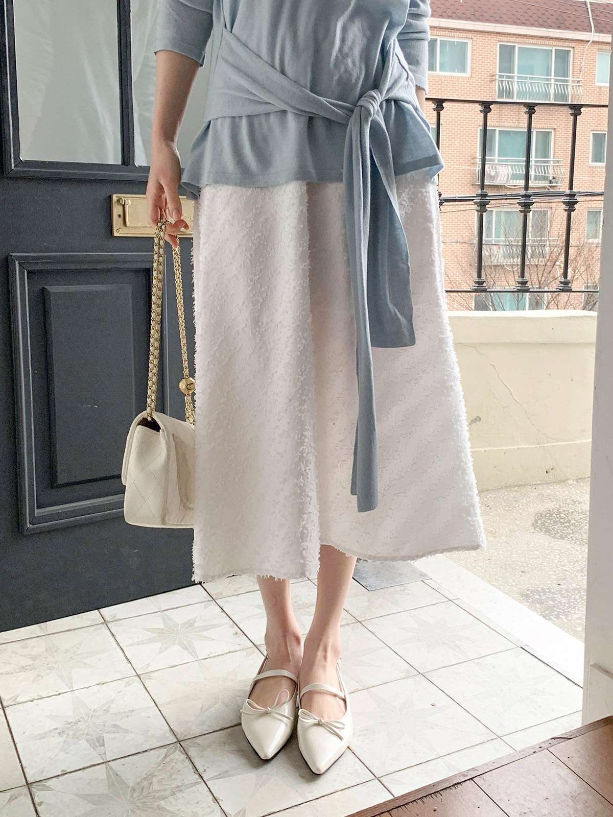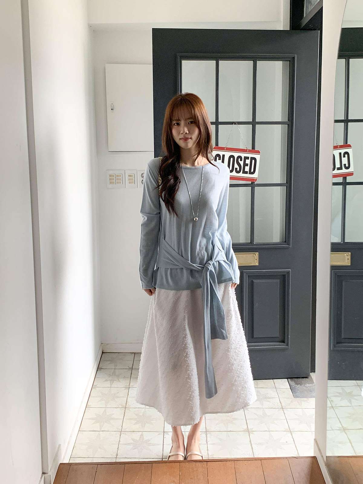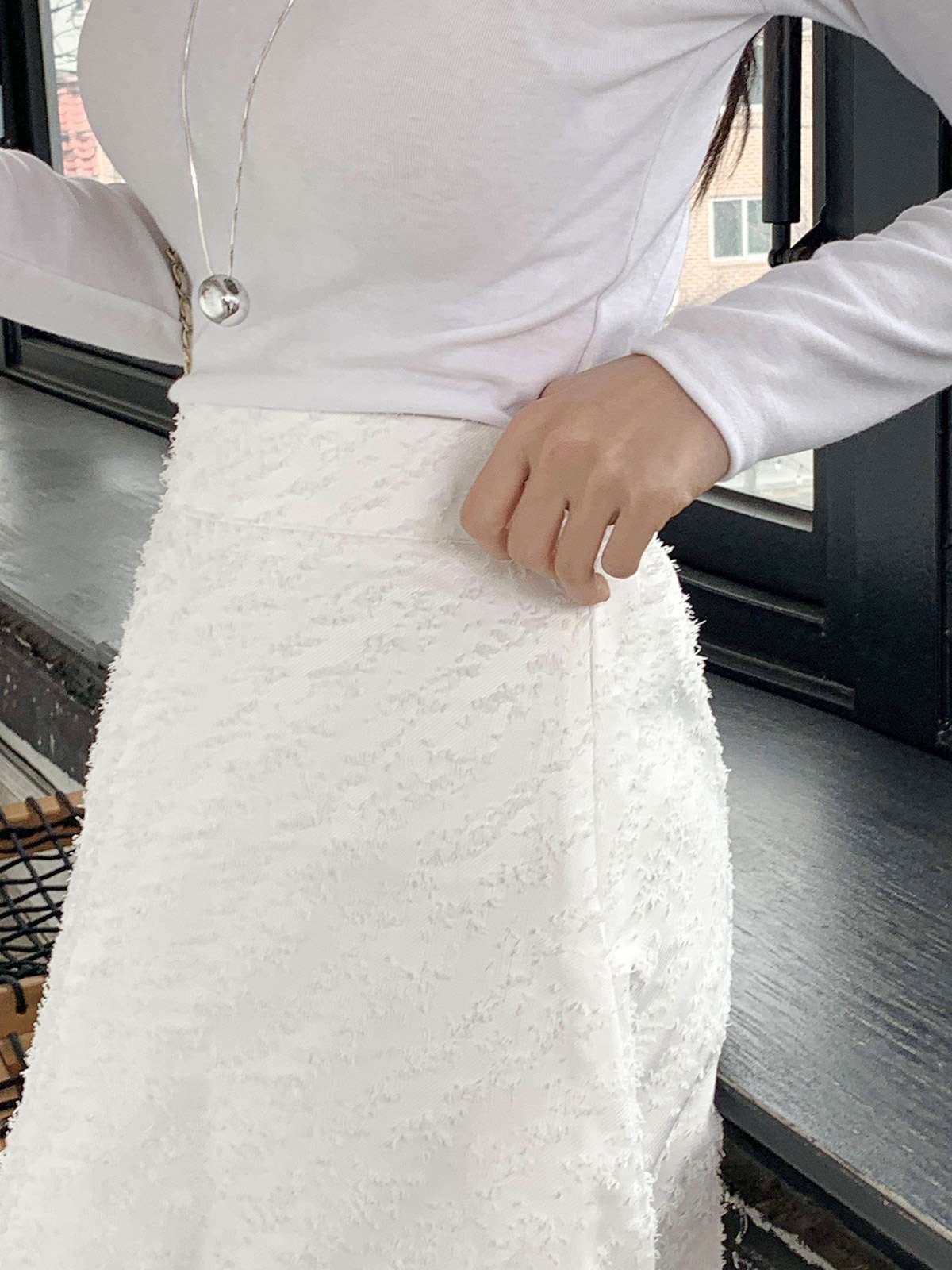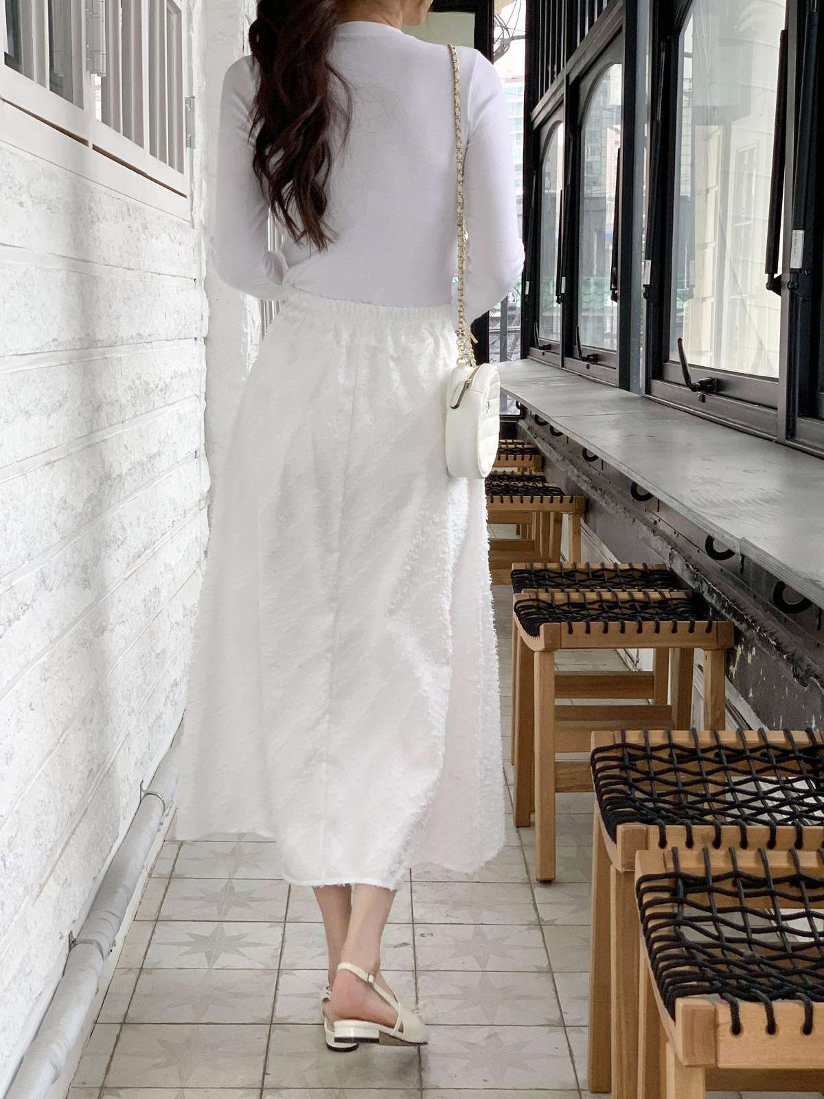 캐주얼하면서 우아한 무드의 레이스 롱스커트