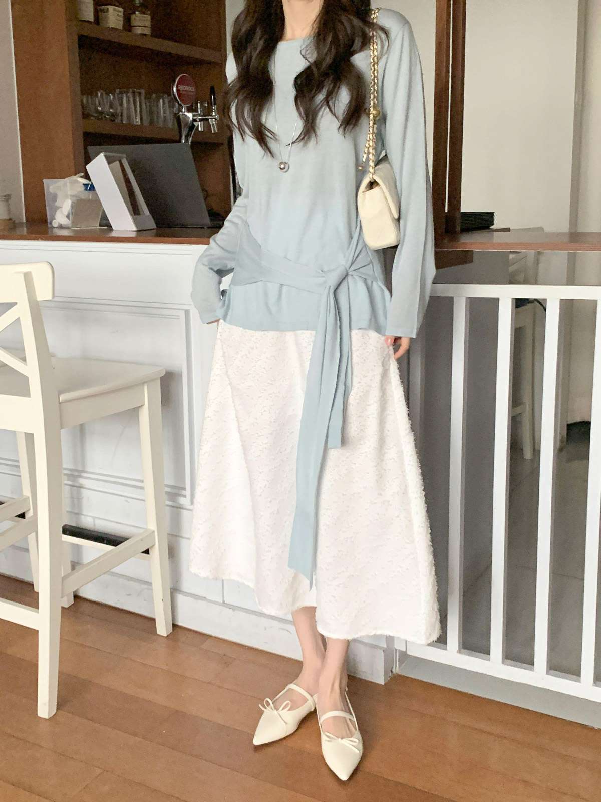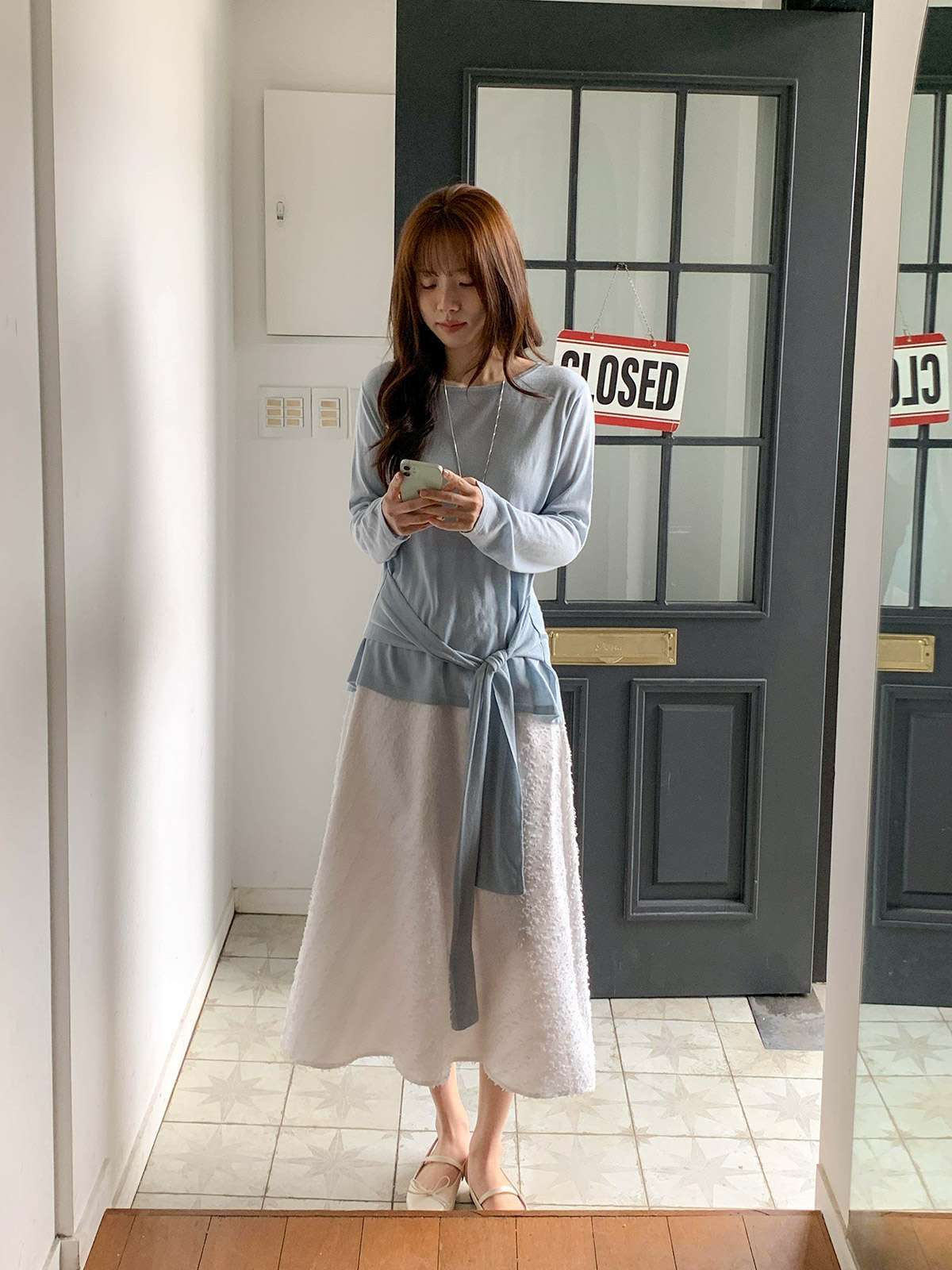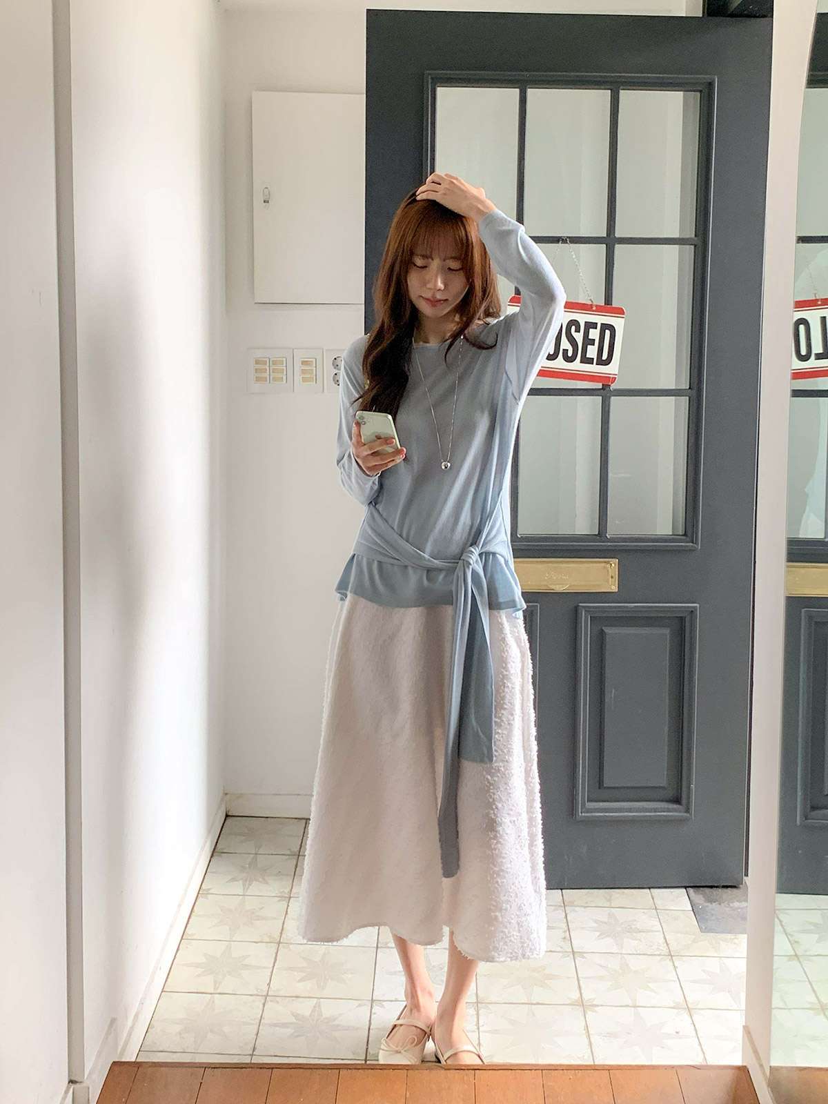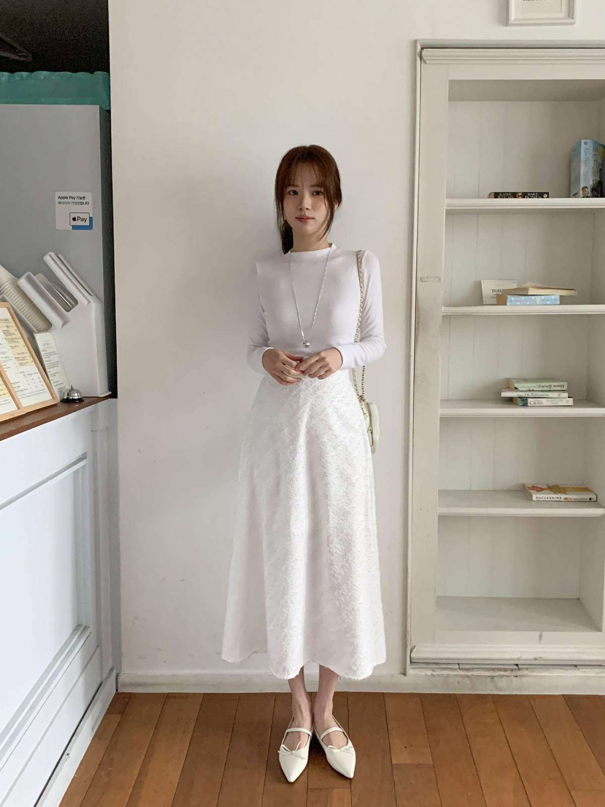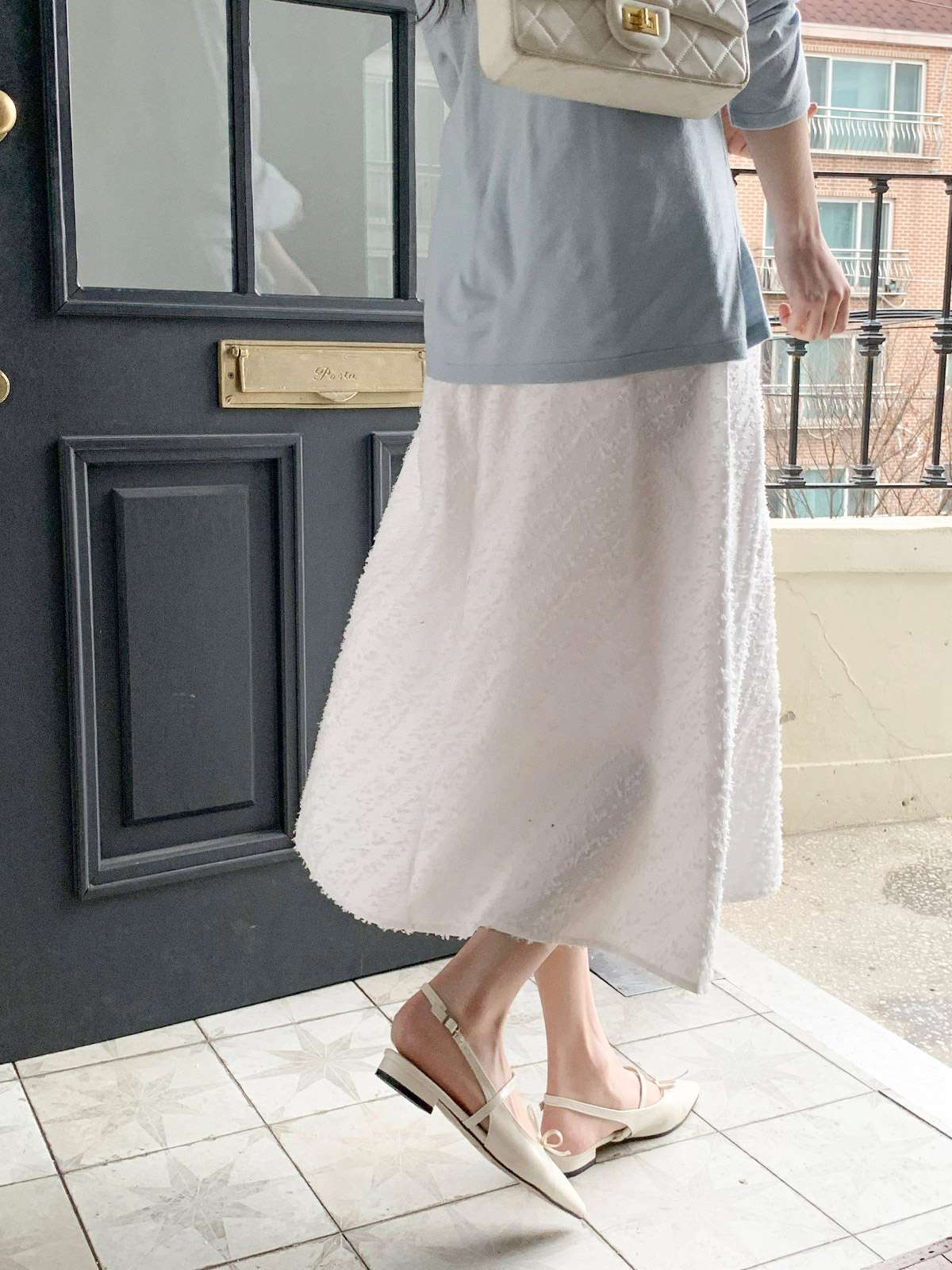 캐주얼하면서 우아한 무드의 레이스 롱스커트
