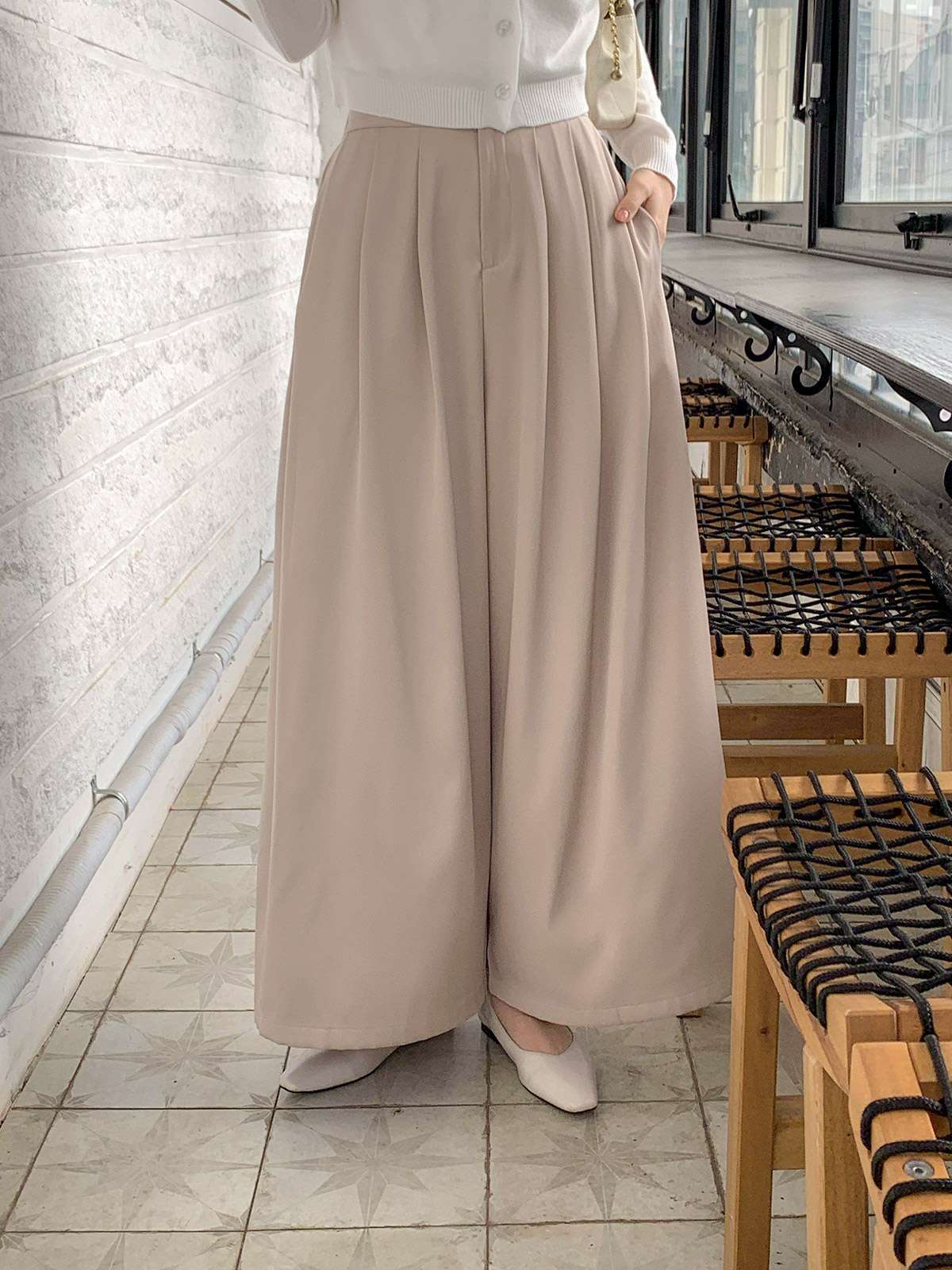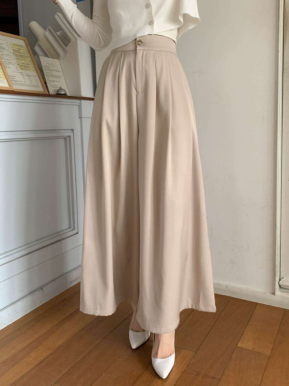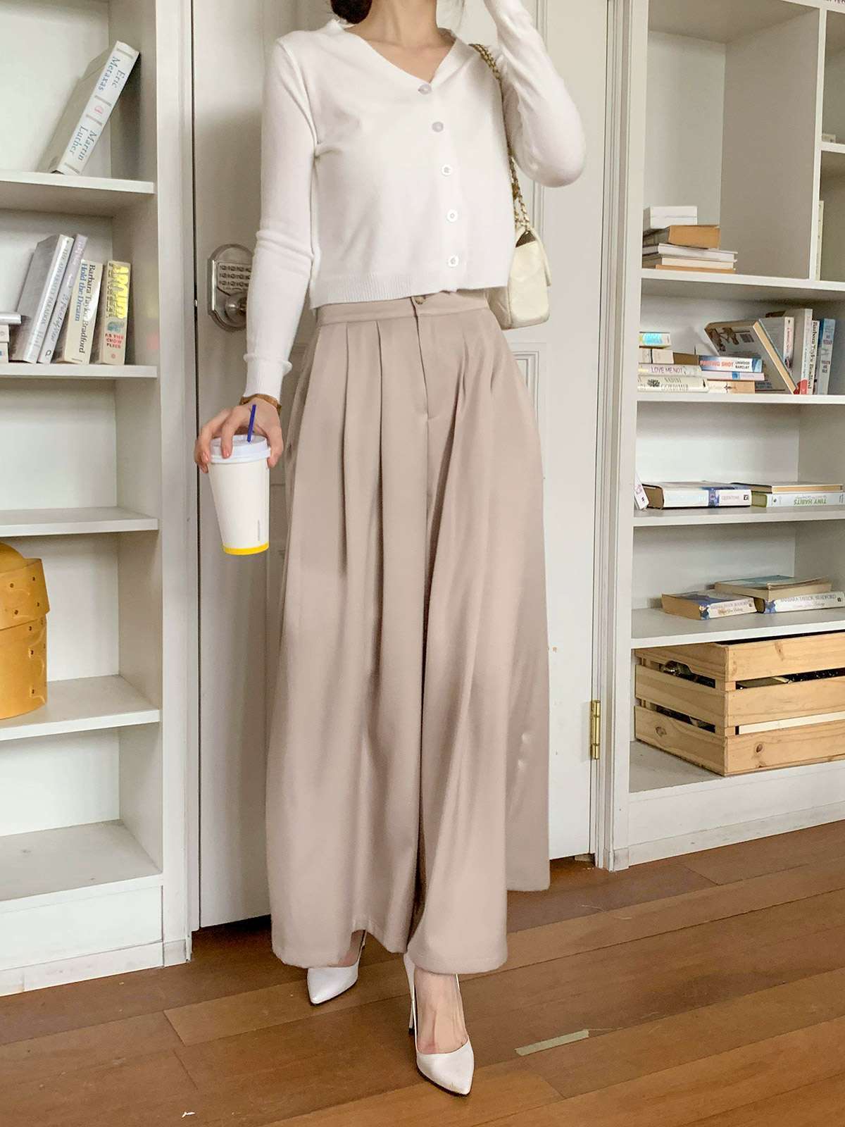오피스룩,하객룩,데일리룩 다 잘어울리는 무드의 핀턱 와이드 핏 슬랙스