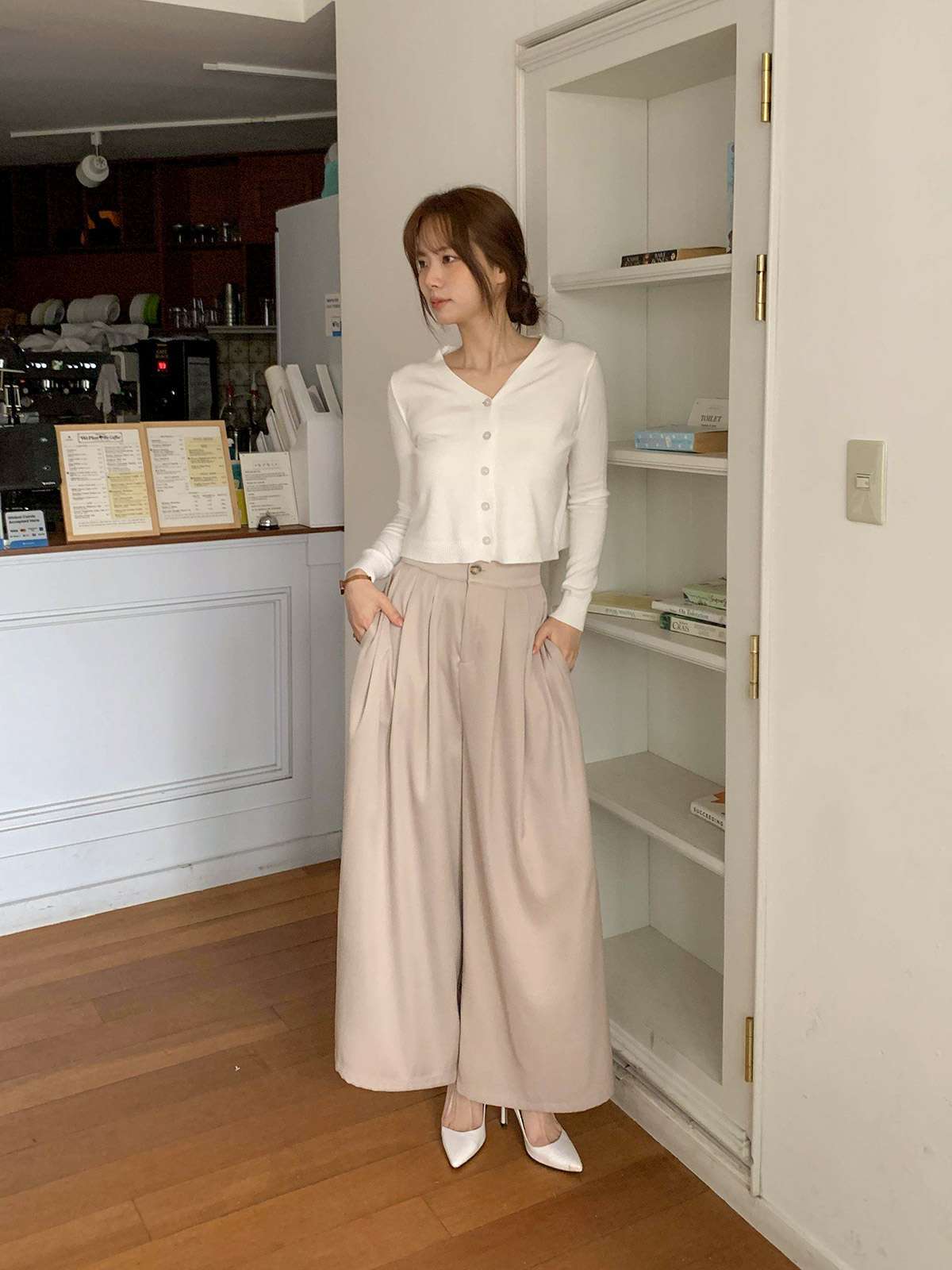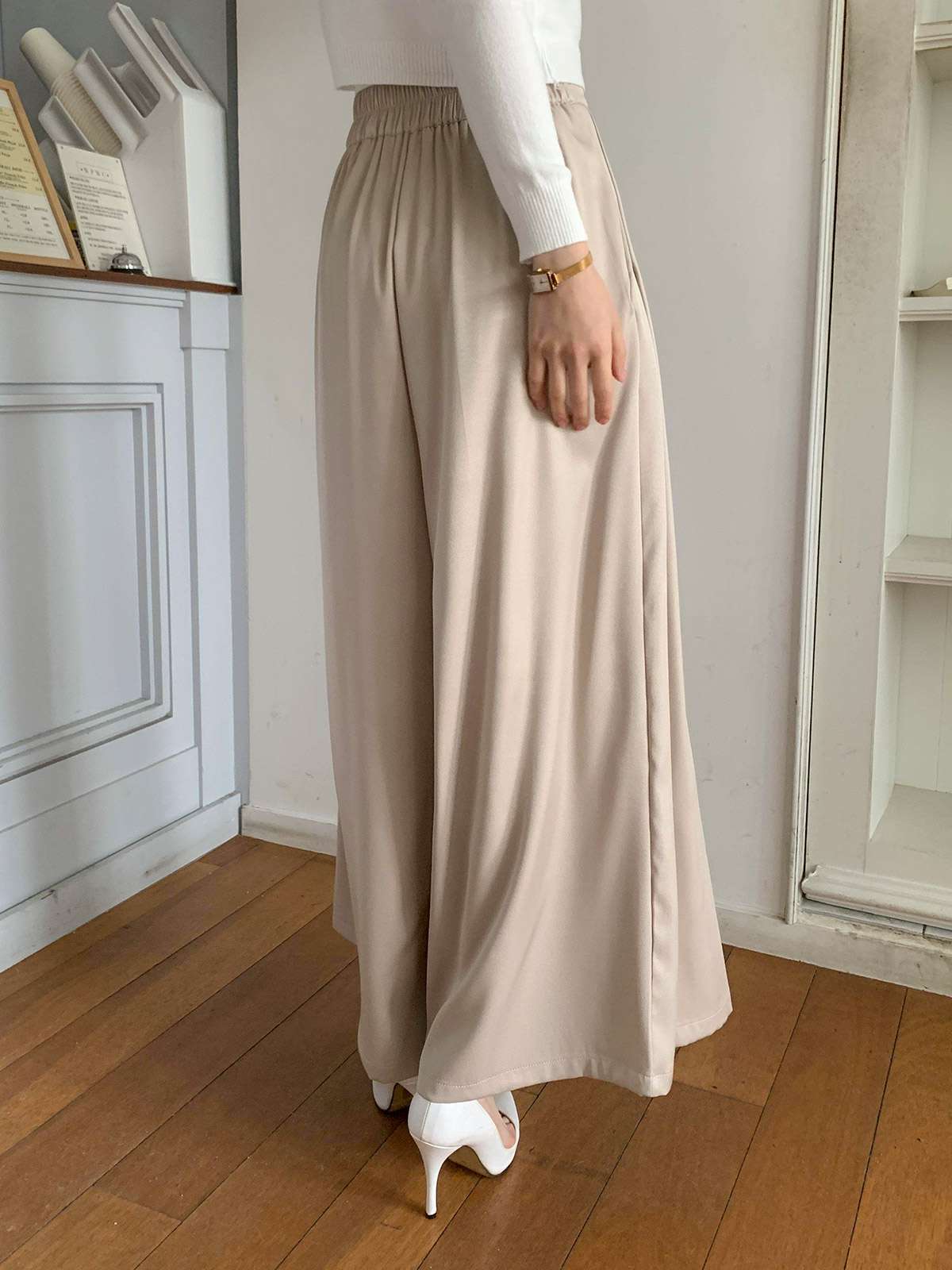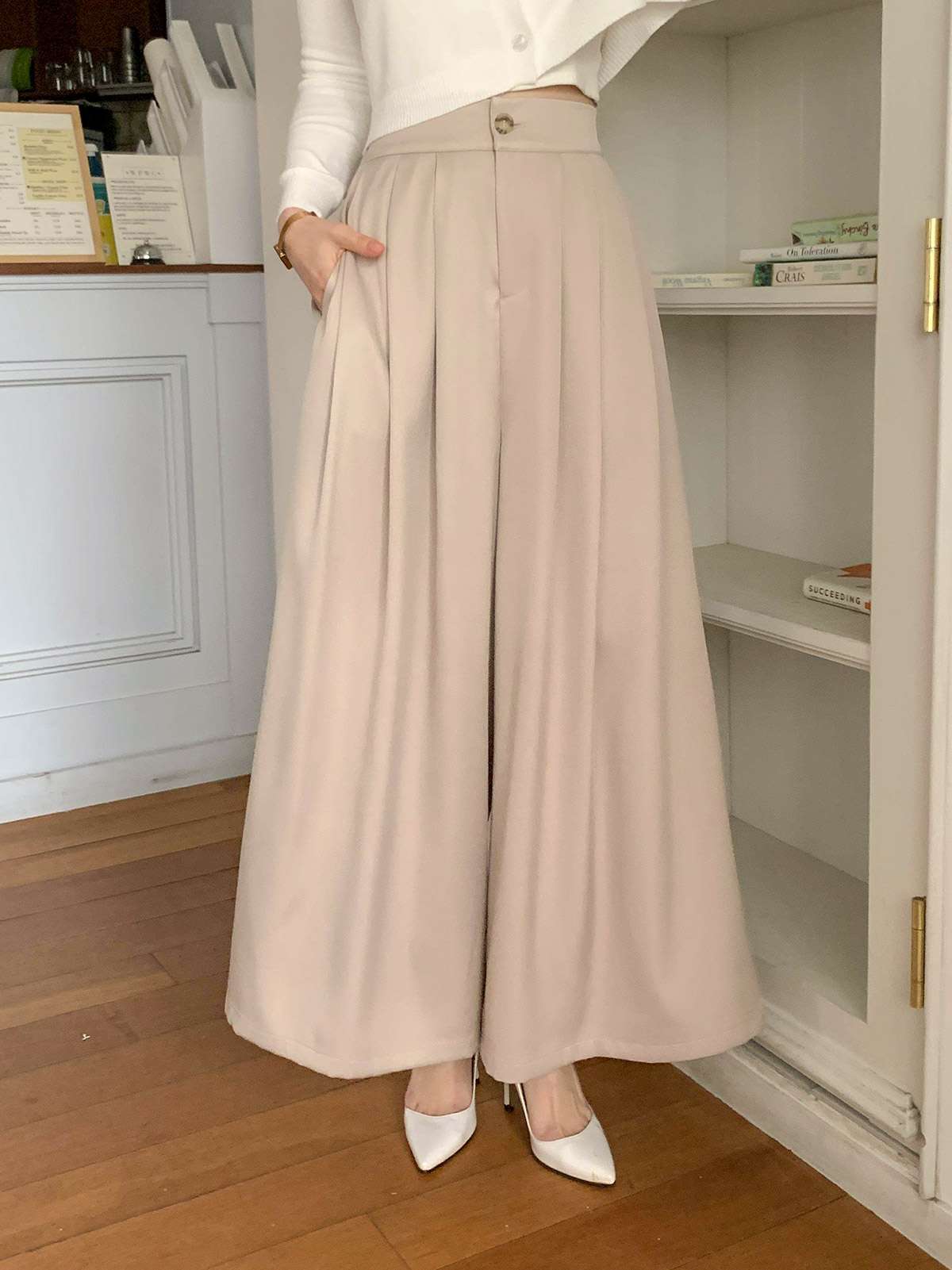오피스룩,하객룩,데일리룩 다 잘어울리는 무드의 핀턱 와이드 핏 슬랙스