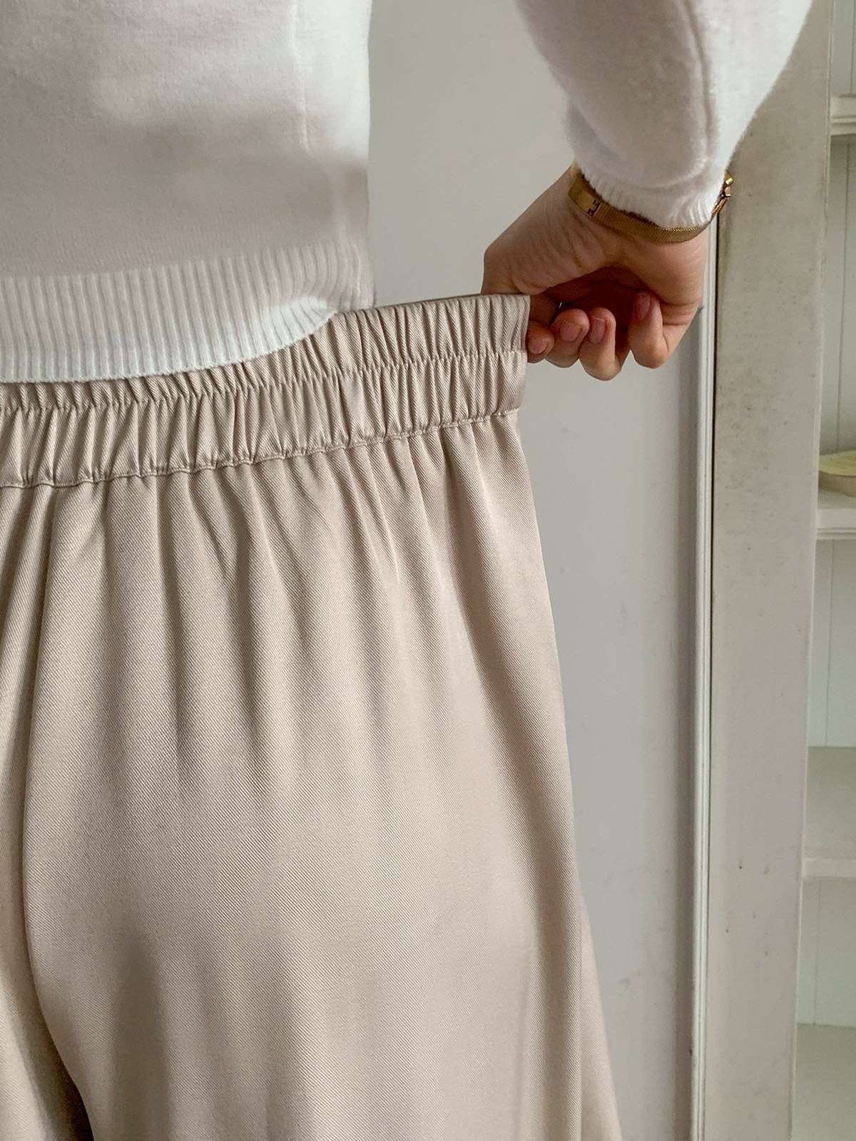 허리 라인의 세련된 투핀턱 디테일이