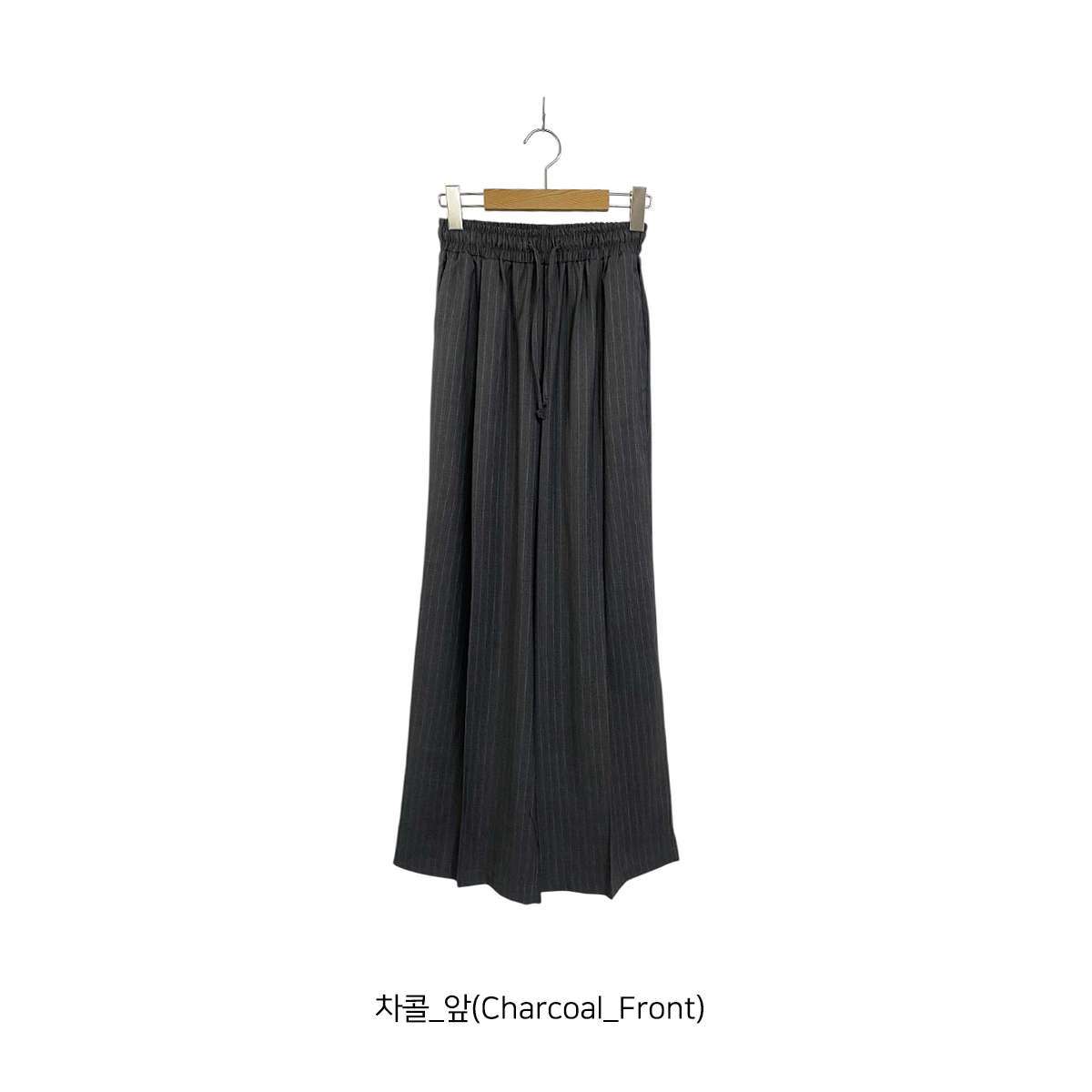 [ PT15740K61-카하으 린넨 핀턱 와이드 스트라이프 밴딩 팬츠 ]