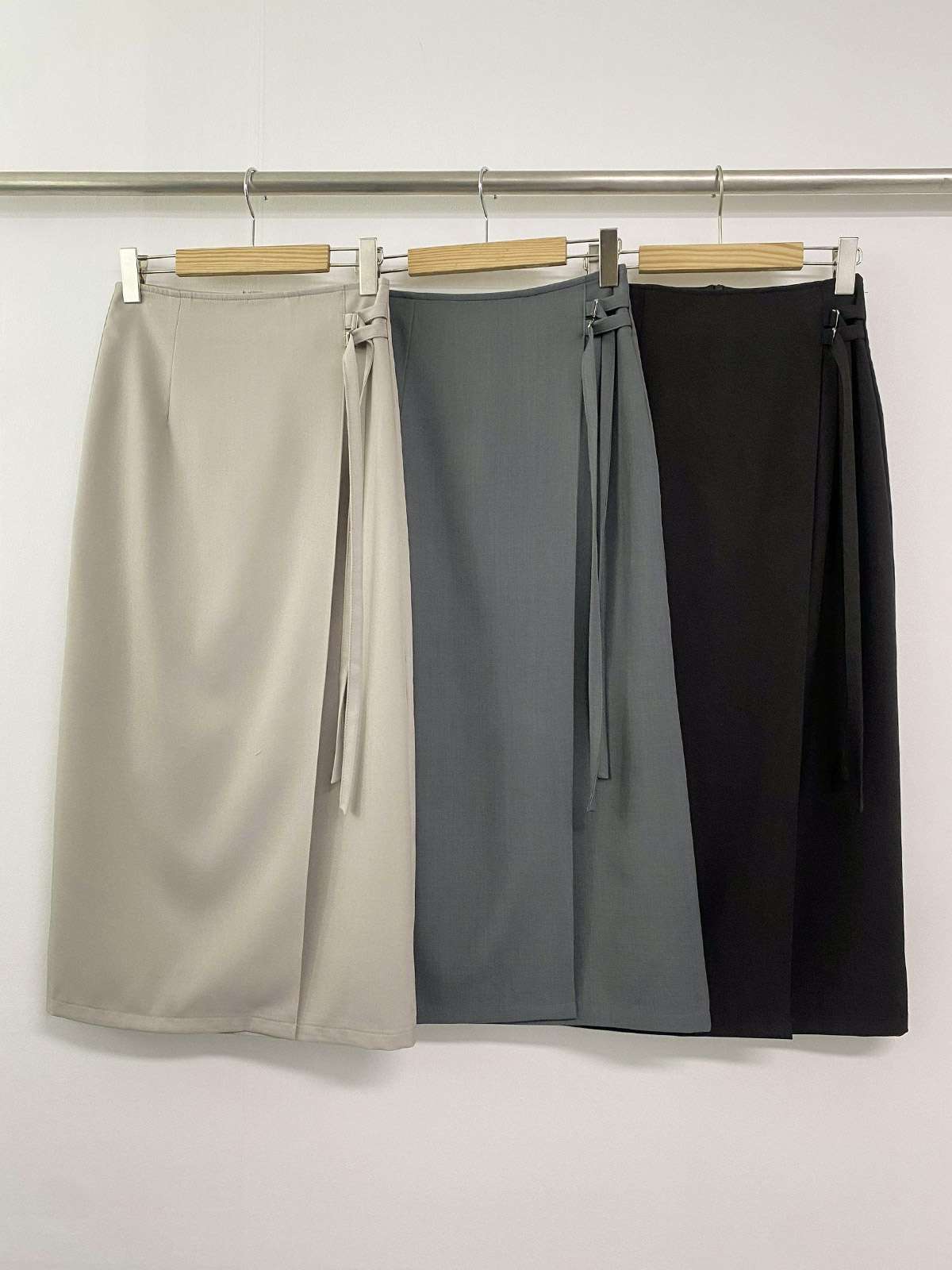 SK7620K61-세리온 이중 버클 랩 H라인 롱 스커트