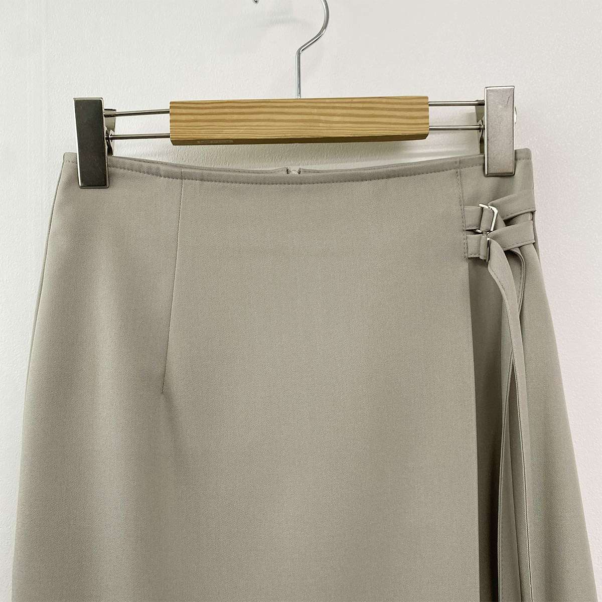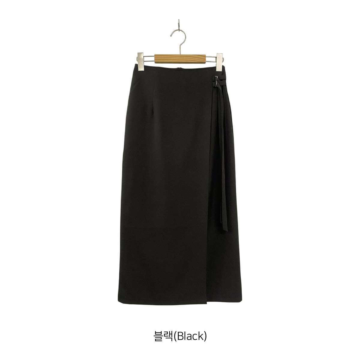 [ SK7620K61-세리온 이중 버클 랩 H라인 롱 스커트 ]