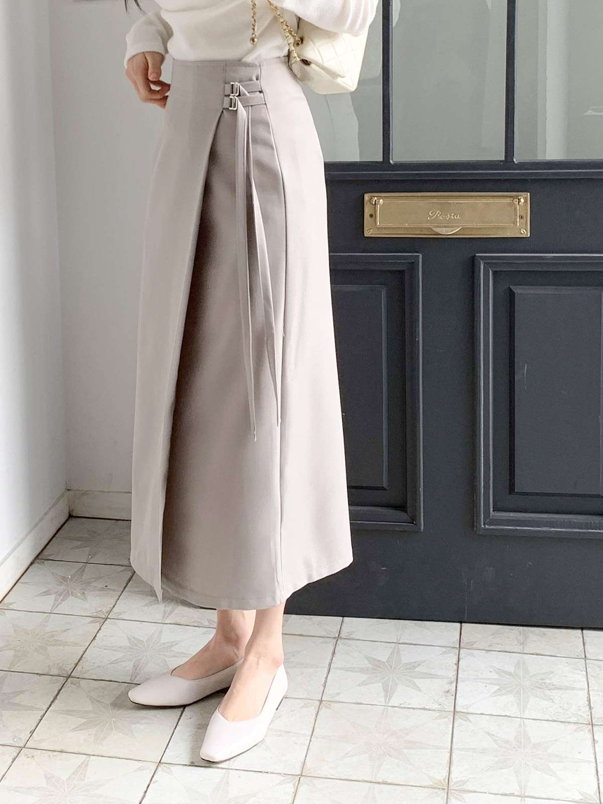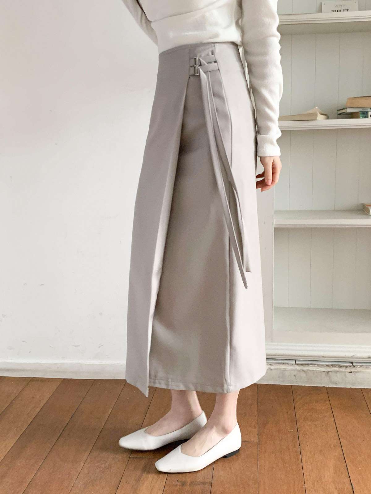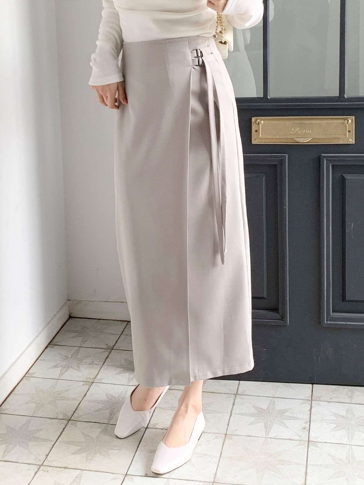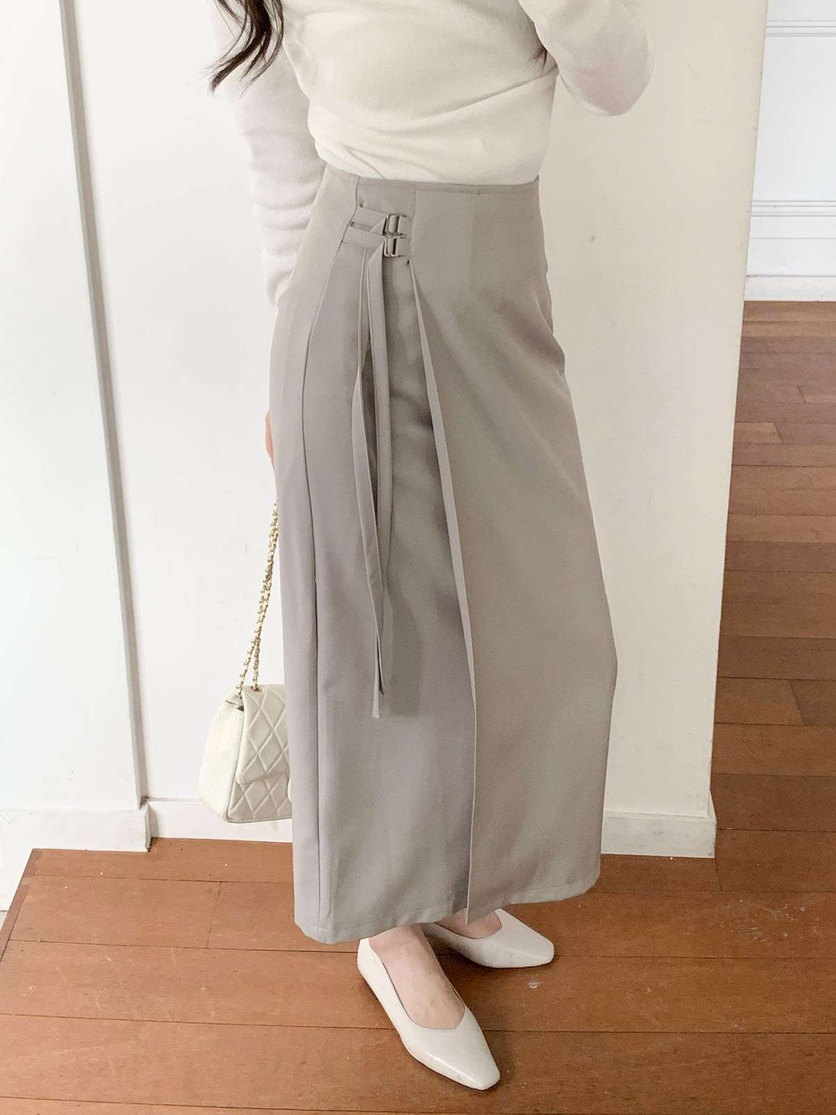 세련된 이중 버클 디테일이 감각적인 디자인의 H라인 롱 스커트