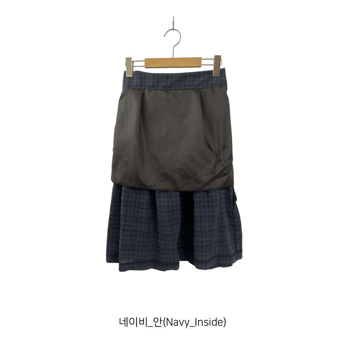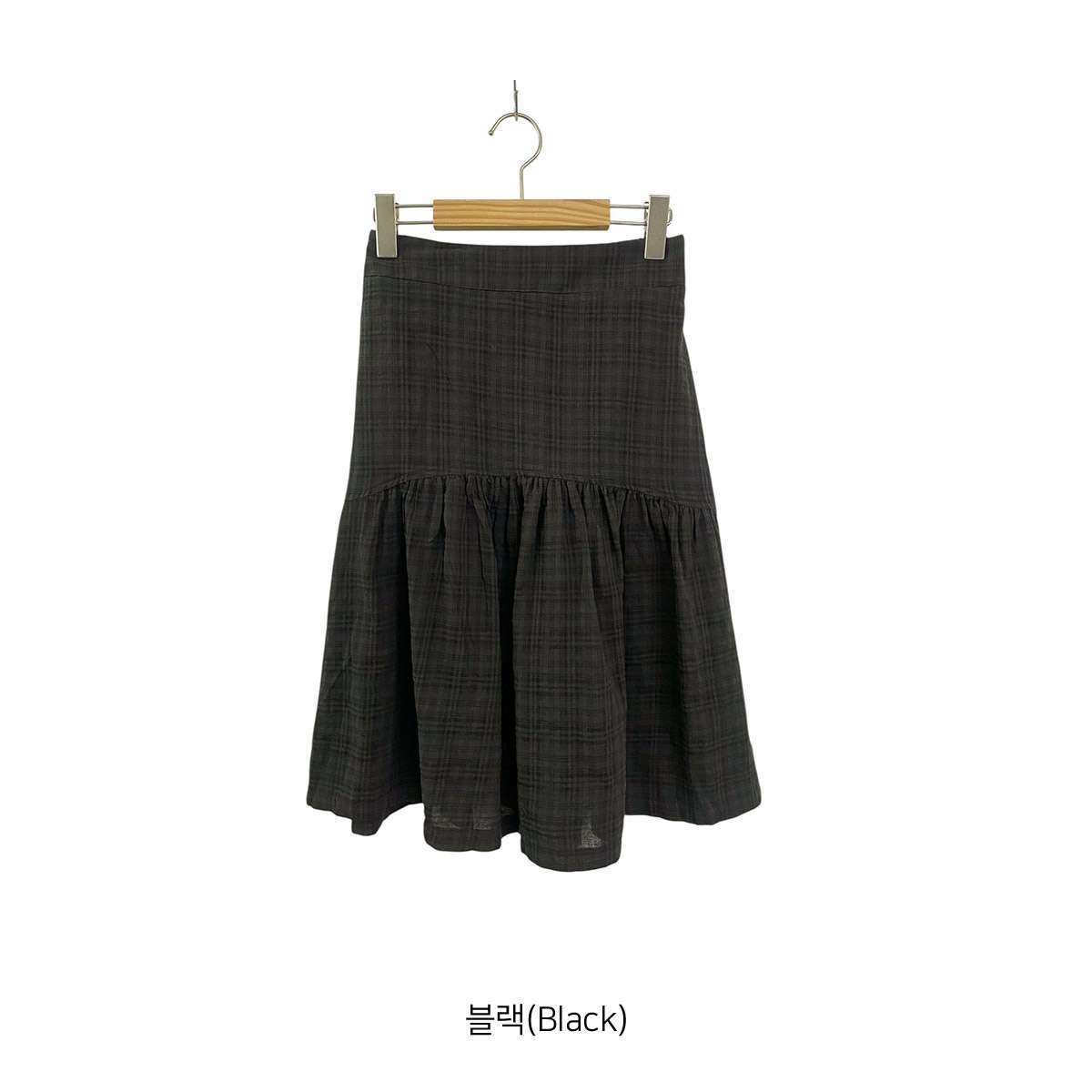 [ SK7622K61-세리논 체크 플레어 뒷밴딩 트임 미디 스커트 ]