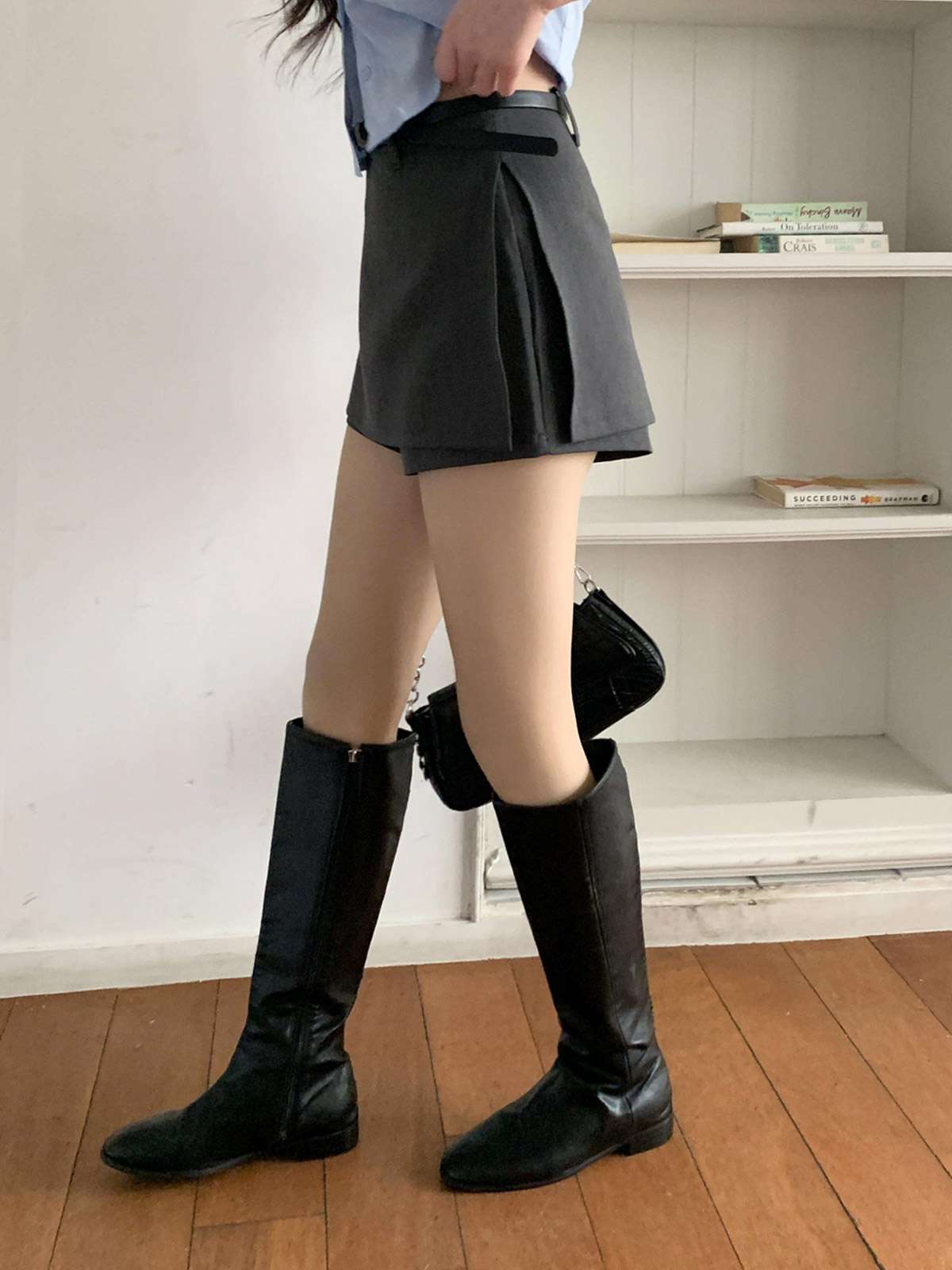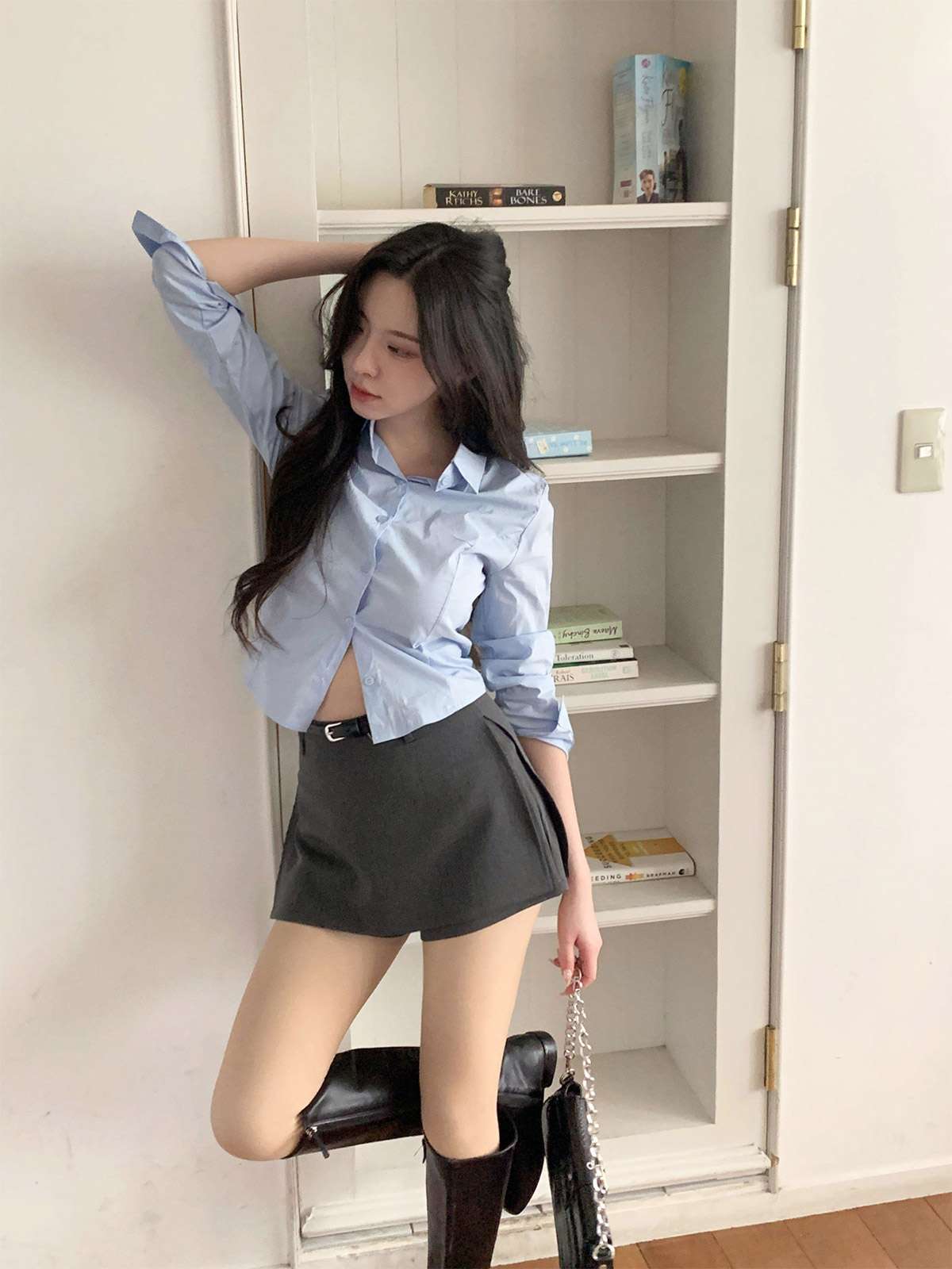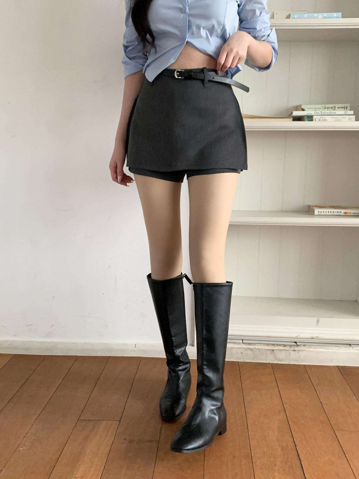다리를 길고 슬림하게 연출해주는 미니 스커트에요!