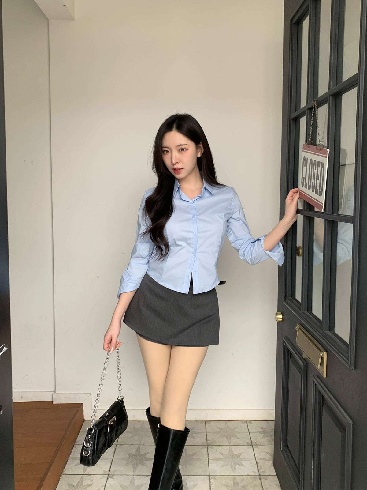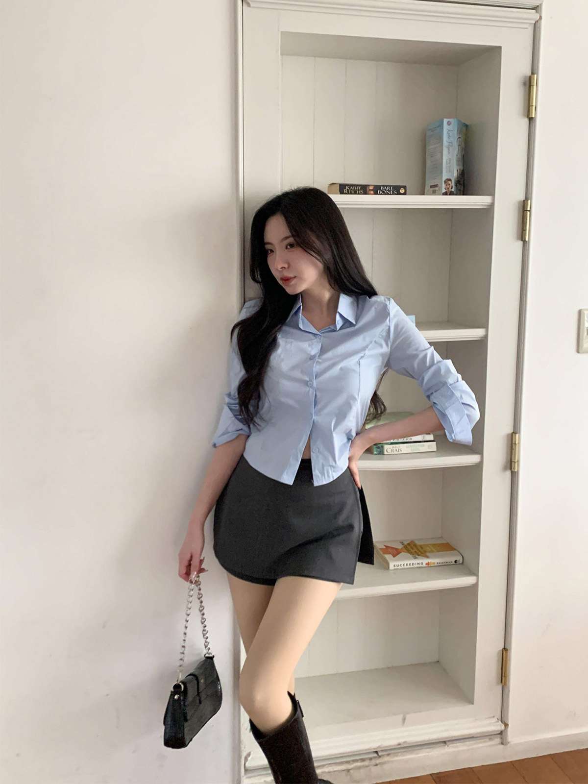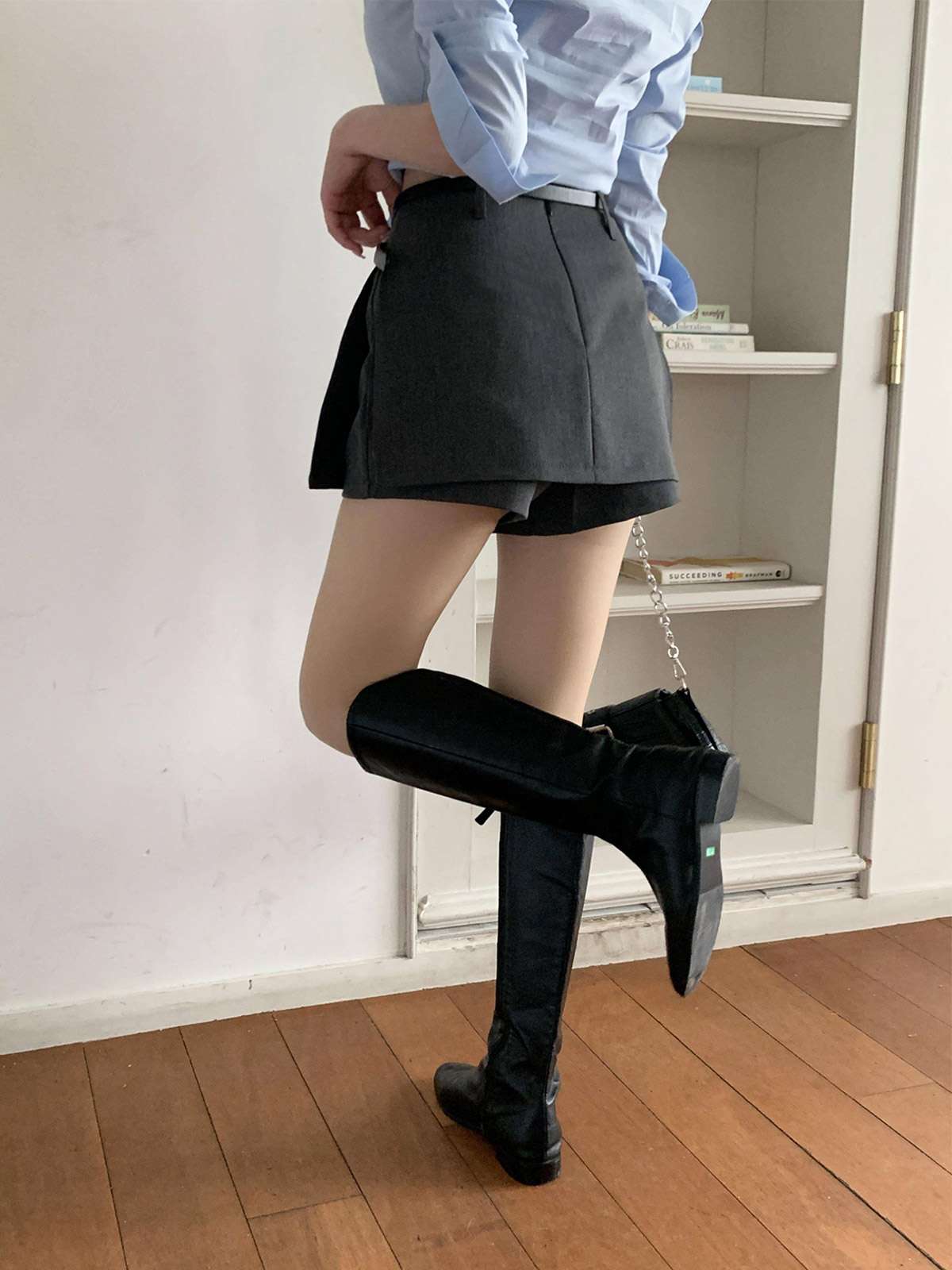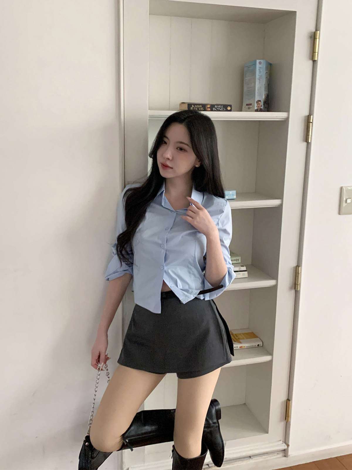 다리를 길고 슬림하게 연출해주는 미니 스커트에요!