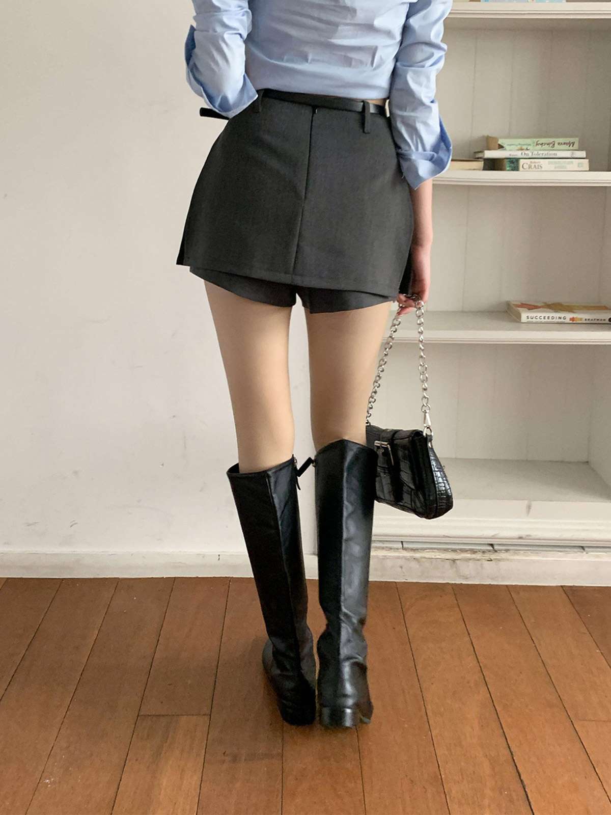 허리 라인의 벨트 고리와 세트 벨트 디테일 덕분에