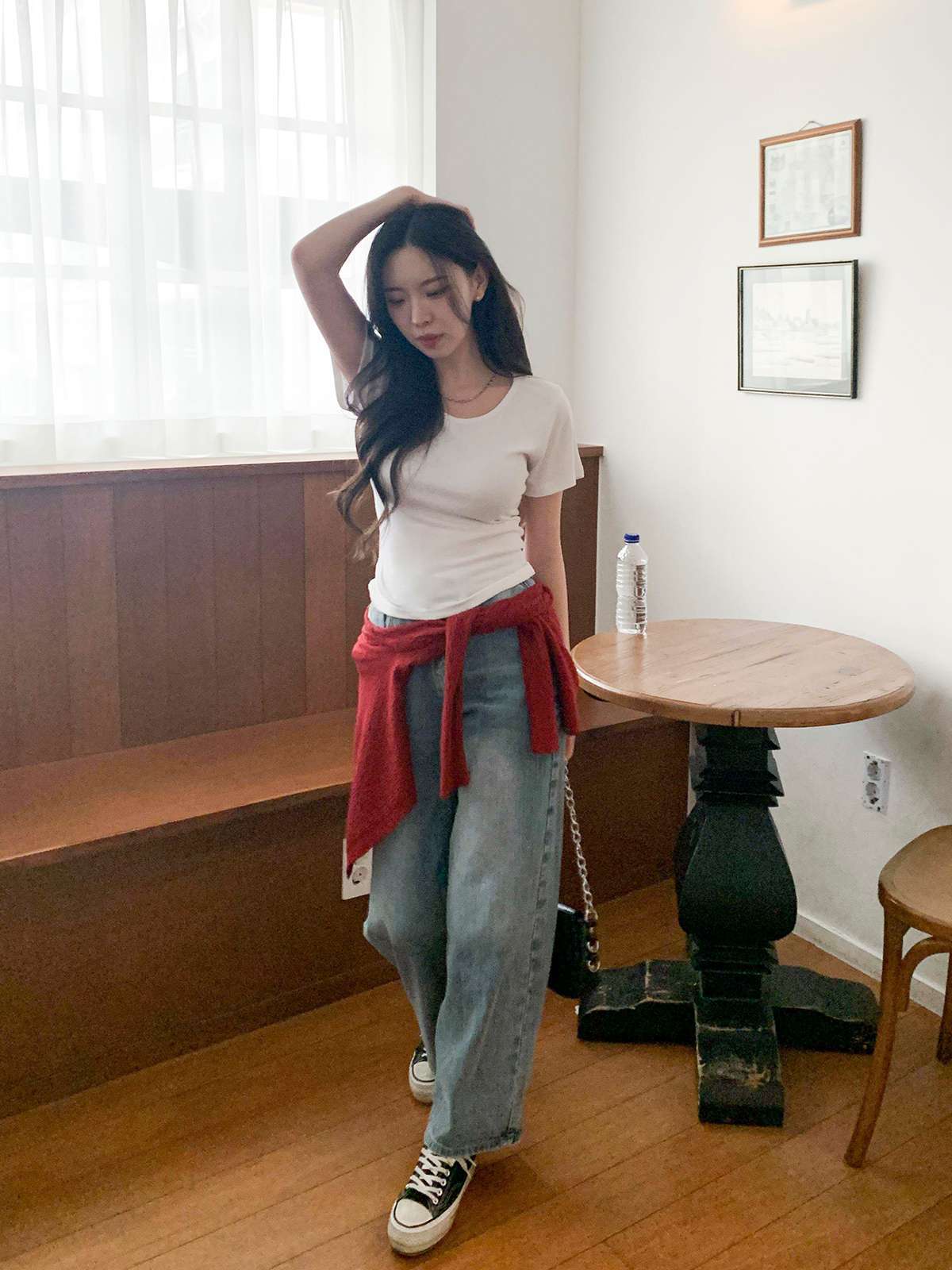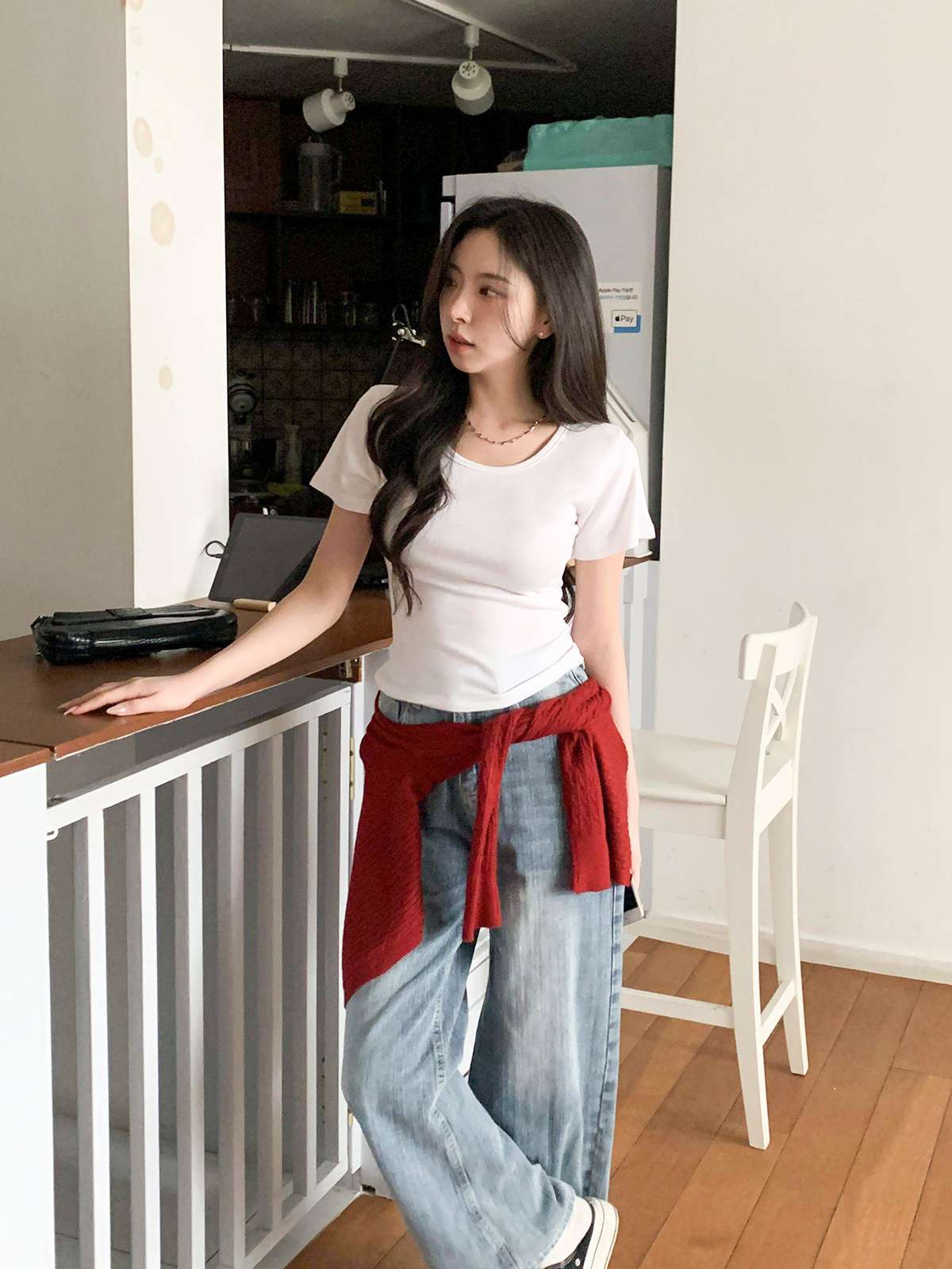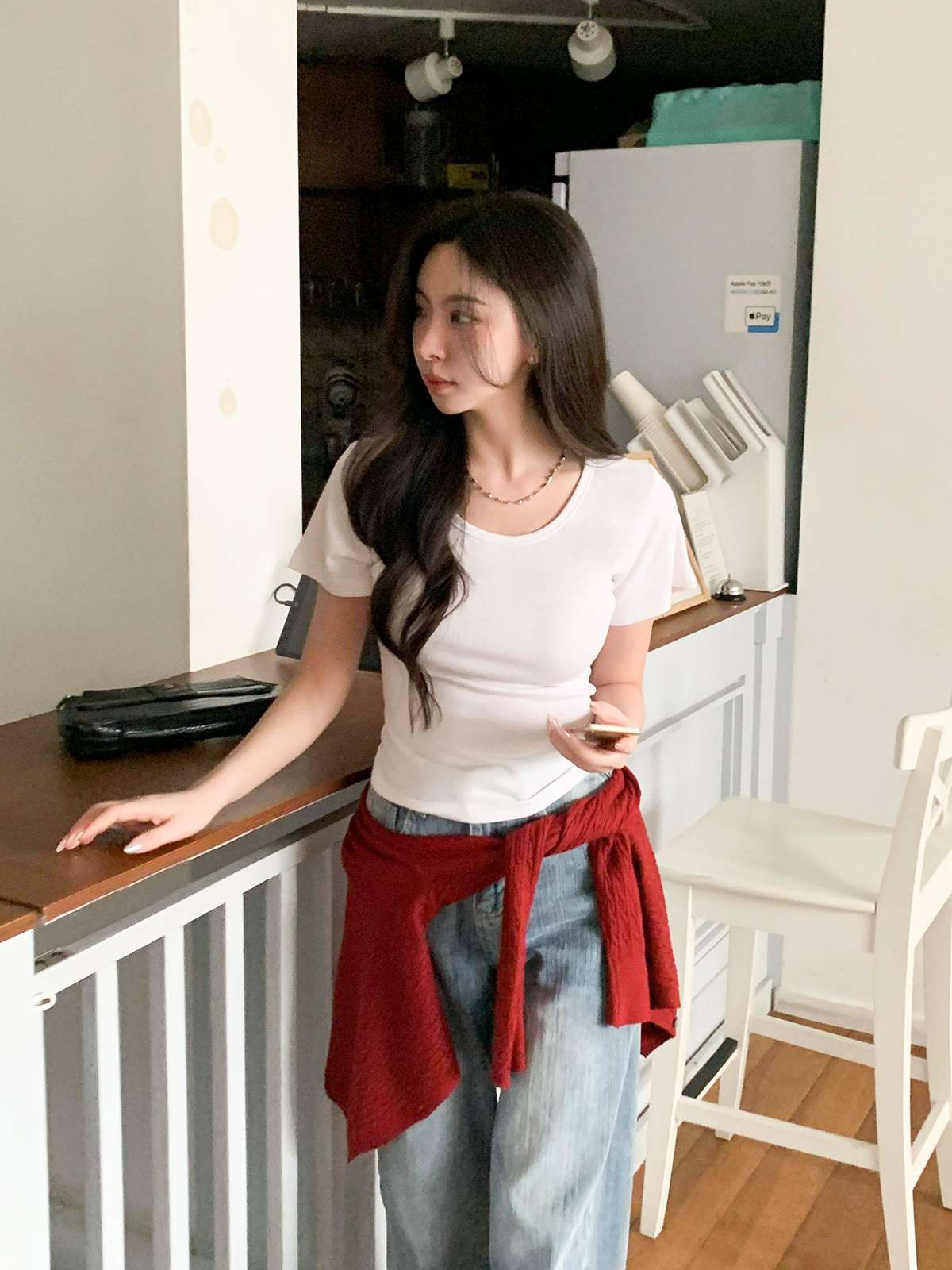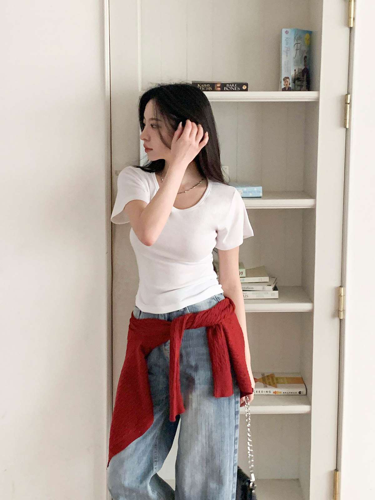 여리여리한 무드의 U넥 반팔 티셔츠