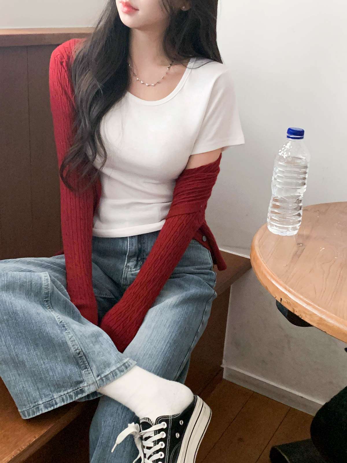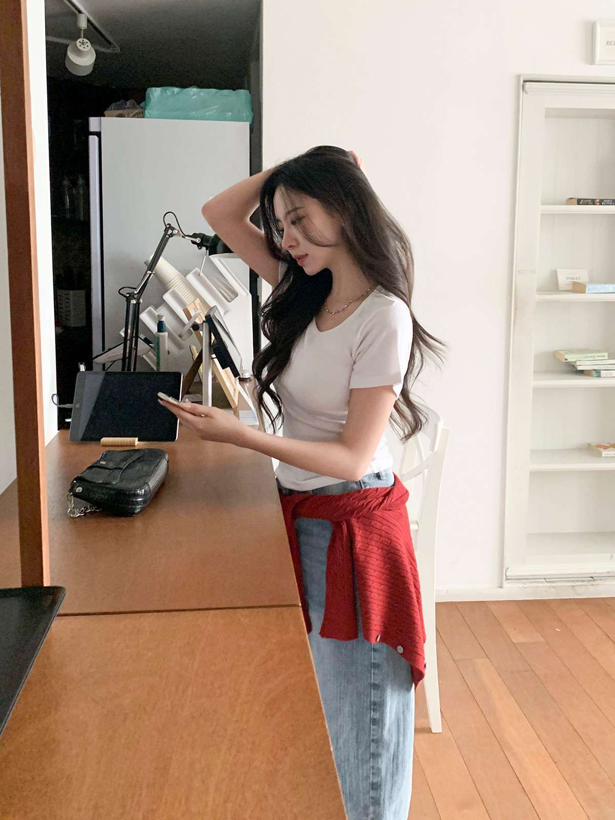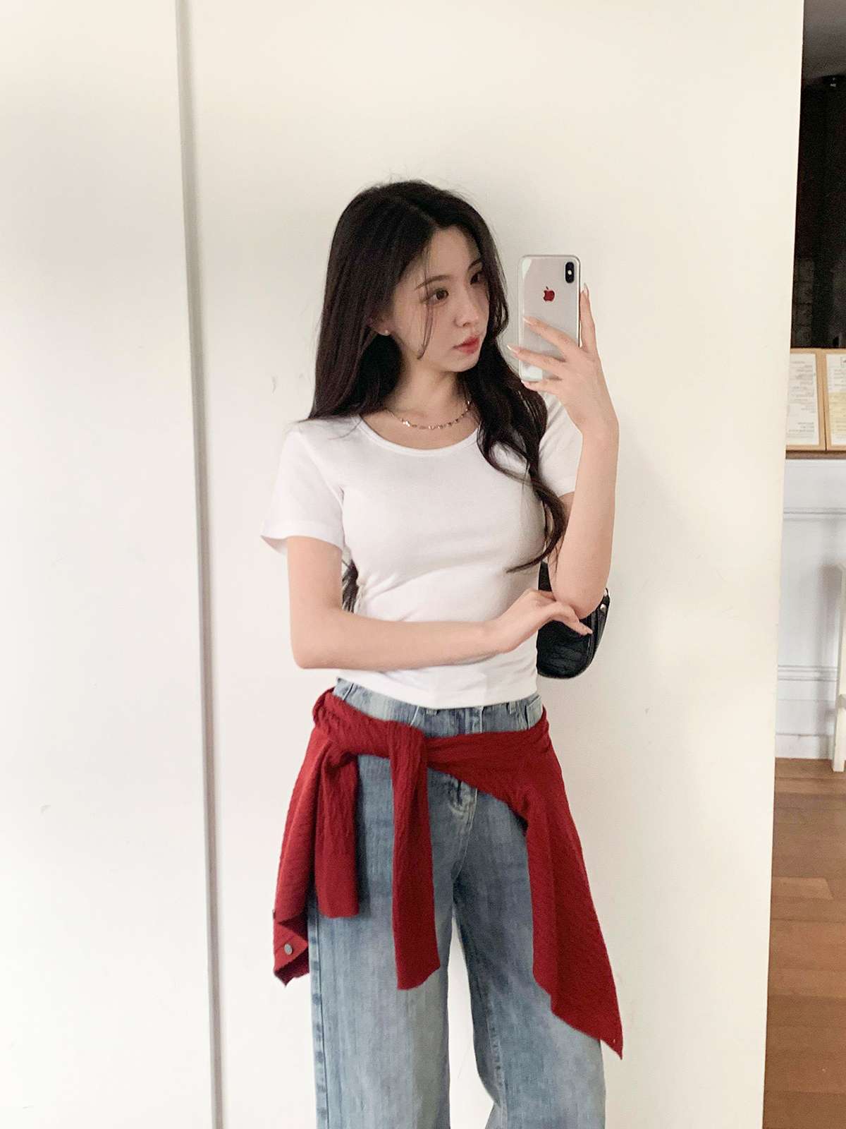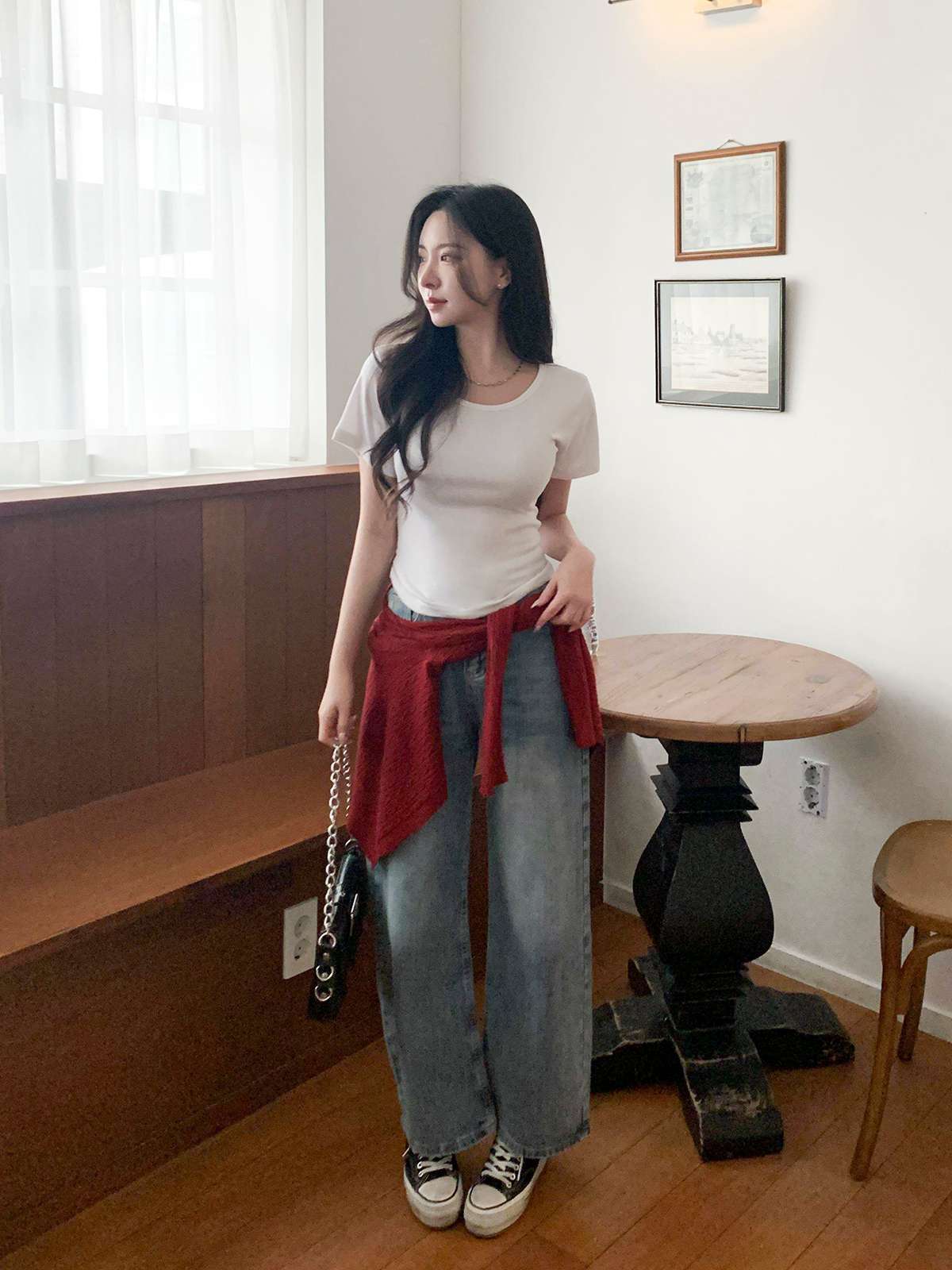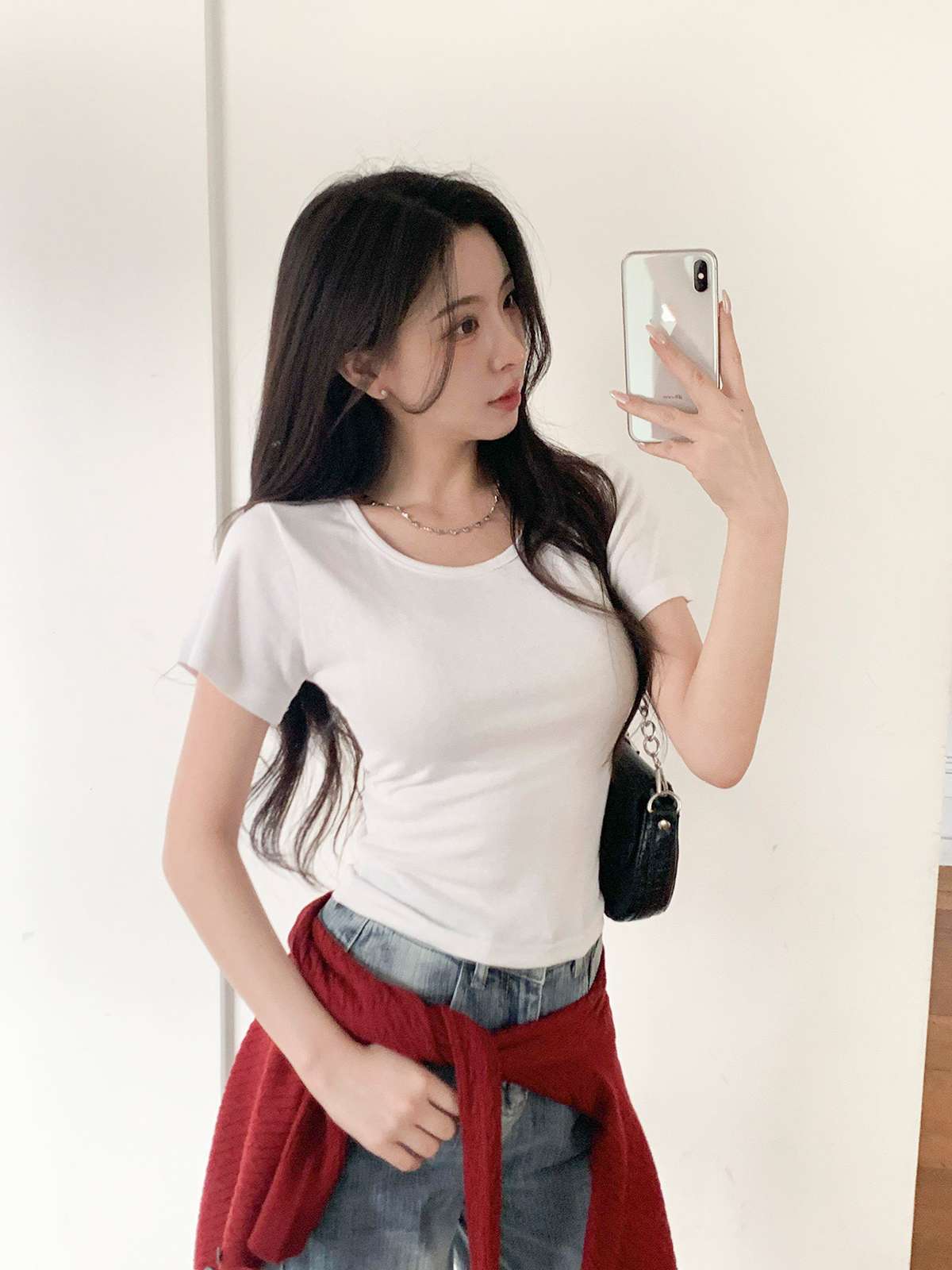 여리여리한 무드의 U넥 반팔 티셔츠